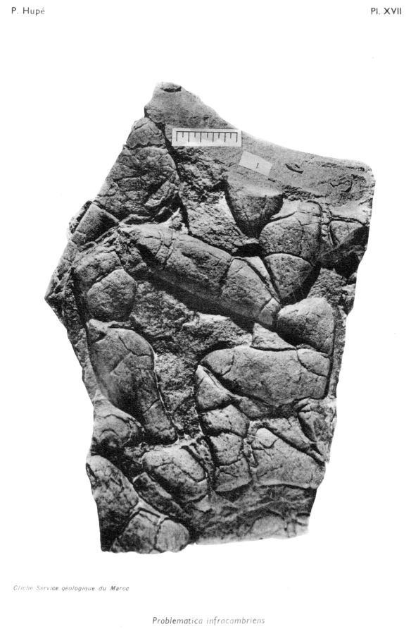 Pour alimenter le débat, voici deux extraits d'un ouvrage de Hupé en 1952 (spécialistes des arthropodes et plus particulièrement des trilobites) qui attribuait initialement ces structures énigmatiques du Précambrien du Maroc à des arthropodes. Après étude et mission sur le terrain, il en a conclu qu'il ne s'agissait que de structures inorganiques.