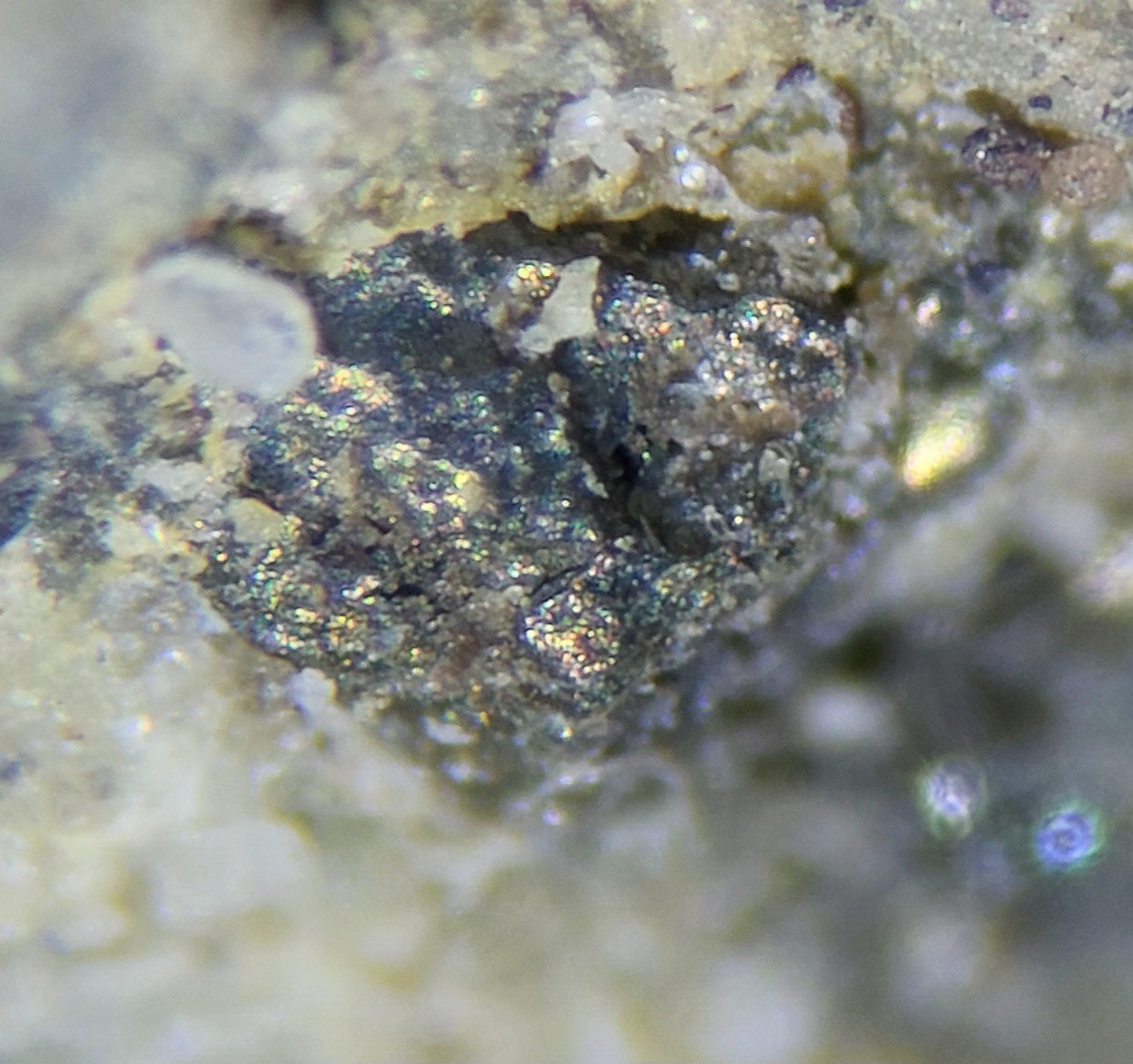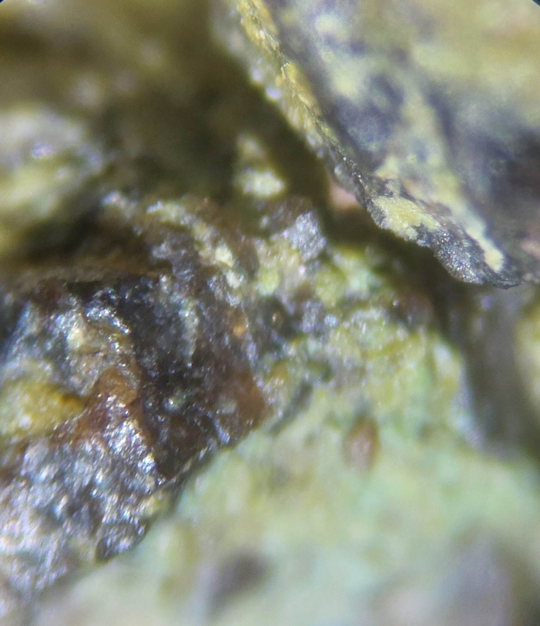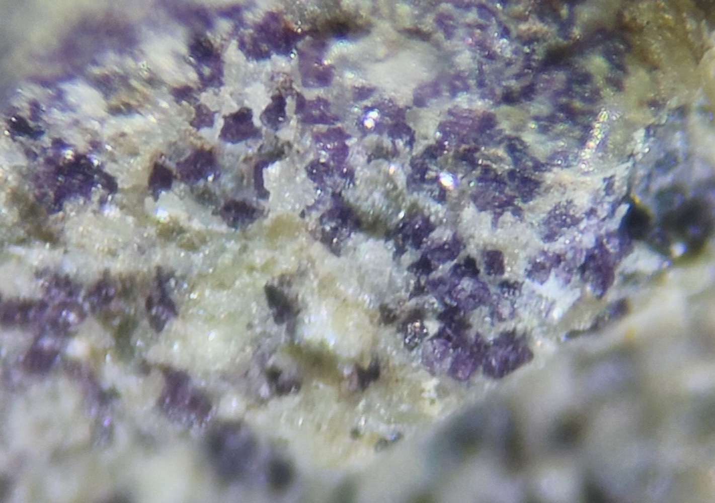 Je l'ai trouvé sur le deblai. Sur cette pieces, il y a beaucoup de choses en plus de la fluo, de la cassiterite et de la chalcopyrite. Il y a aussi un mineral noir très brillant micro pas comme la cassi qui est plutôt cireuse, non déterminer puisque pas cristalisé mais, il y en a sur toutes les pieces que je trouve ces temps ci. Peut-être aussi de l'orthose... photos si jointe:
