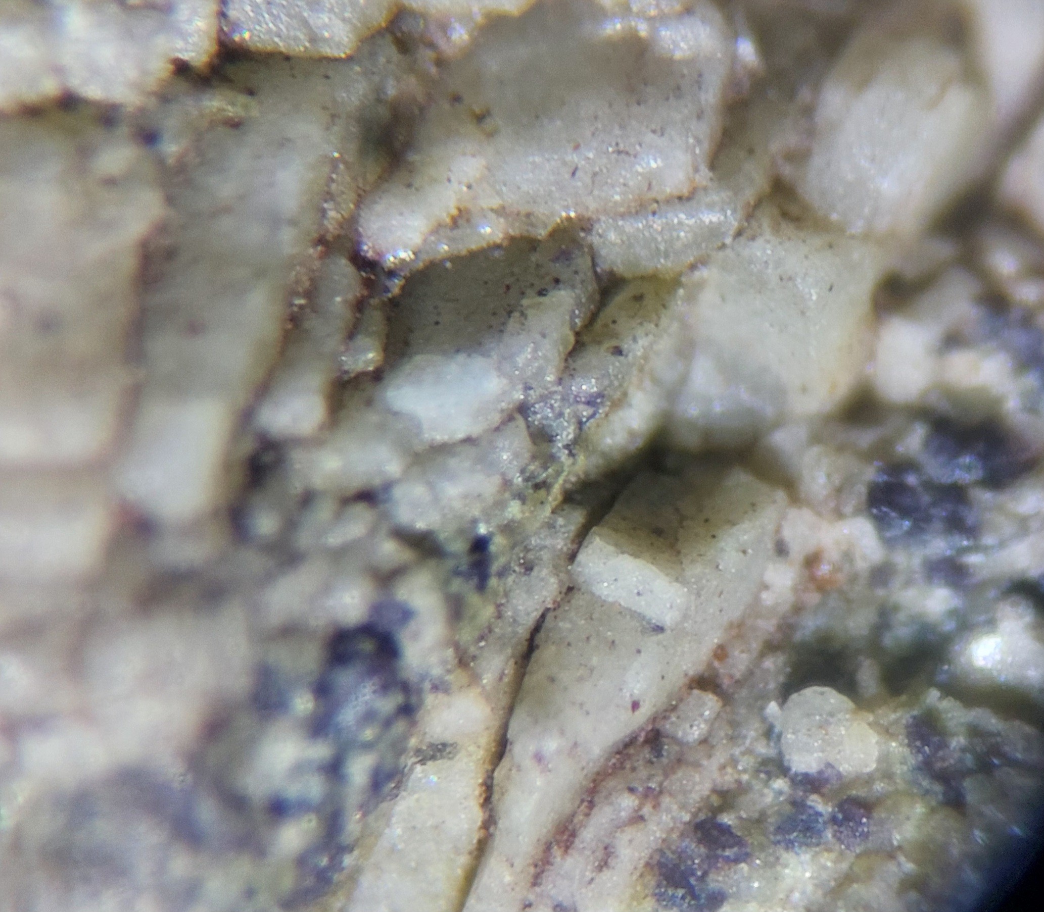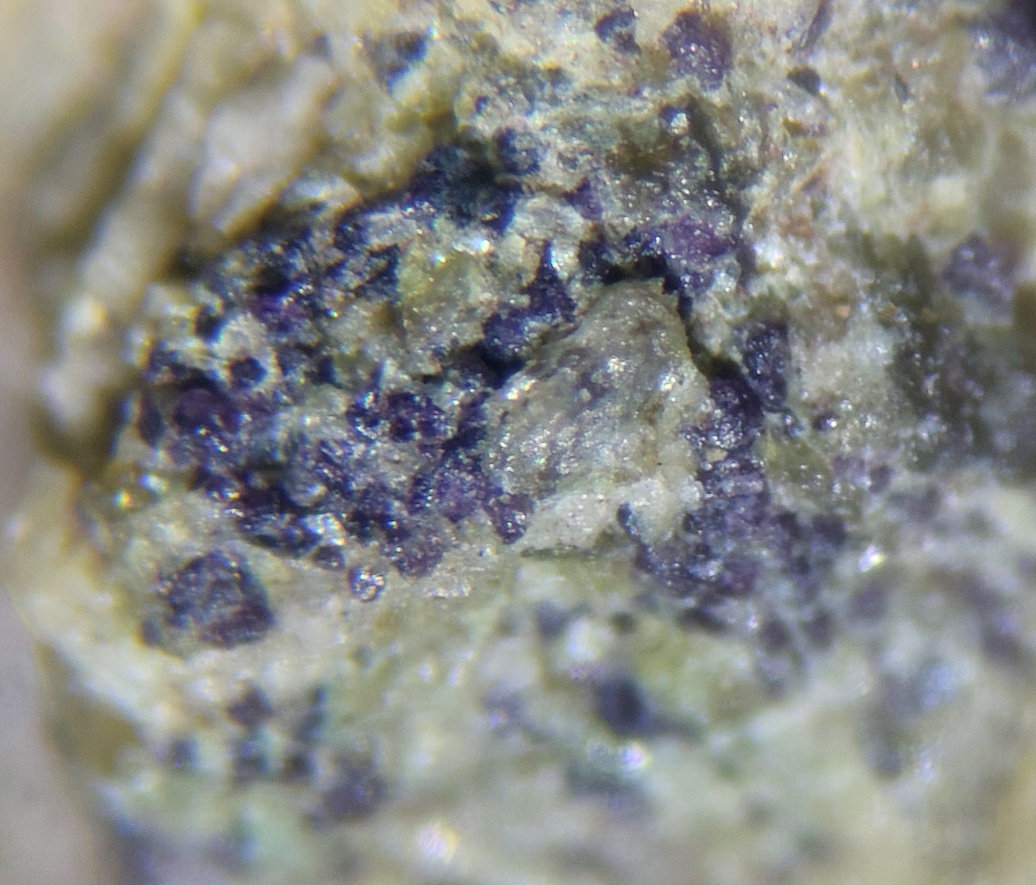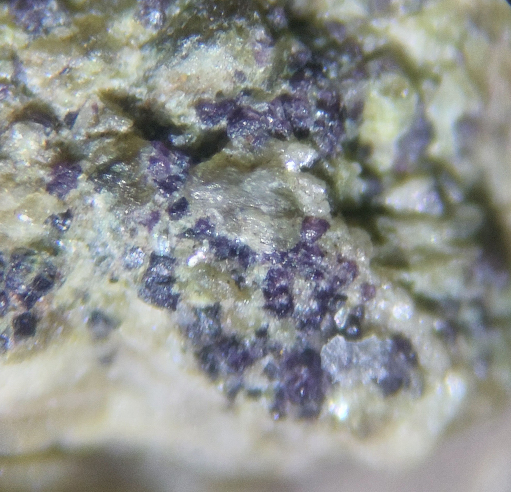 Je l'ai trouvé sur le deblai. Sur cette pieces, il y a beaucoup de choses en plus de la fluo, de la cassiterite et de la chalcopyrite. Il y a aussi un mineral noir très brillant micro pas comme la cassi qui est plutôt cireuse, non déterminer puisque pas cristalisé mais, il y en a sur toutes les pieces que je trouve ces temps ci. Peut-être aussi de l'orthose... photos si jointe: