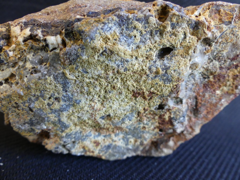 Demain, instruit, je me dirai, tiens un morceau de jenesaispasquoidite avec une couche de mortierite et mortieritebrunite filiformée. J'ajouterai que la partie en bas à droite est probablement une monocouchebrunite peu oxydée qui n'est pas sans me rappeler un caillou trouvé naguère par Mère-grand lors d'une chute vélocipédique dans les orties (où elle fut poussée très certainement)...