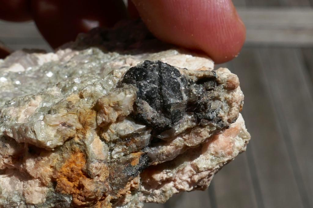 Si c'est bien celle à laquelle je pense, une superbe scorodite bleue plurimillimètrique (perdue en la laissant pour analyse de confirmation) et une cassitérite et stannière impossible à retrouver depuis pourtant elle est de bonne taille.