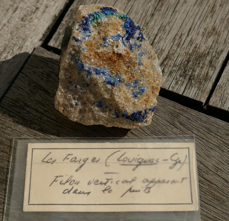 Il y a peu de mines de cuivre qui ont été exploitées en Limousin. Voici quelques échantillons de Louignac en Corrèze. Ancienne collection Recoing du BRGM qui a reétudié la question dans les années 60 et 70.