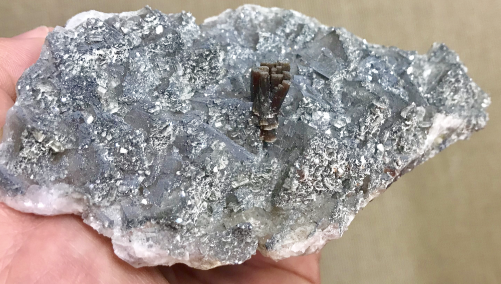 Cristaux de galène tronqués {6cm}, mine de la Besse, Corrèze.