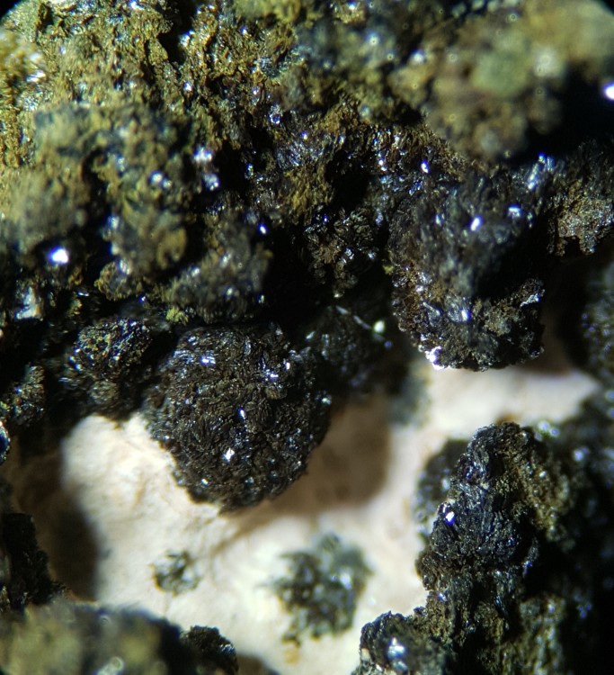 Voila le résultat après observation à la binoculaire:  il me semble qu'il s'agit de la serie Rockbridgéite-frondélite, dèja connue à la Vilatte-haute, à moins que ce ne soit la "Vraie" Dufrénite, comme ce qui avait été signalé?