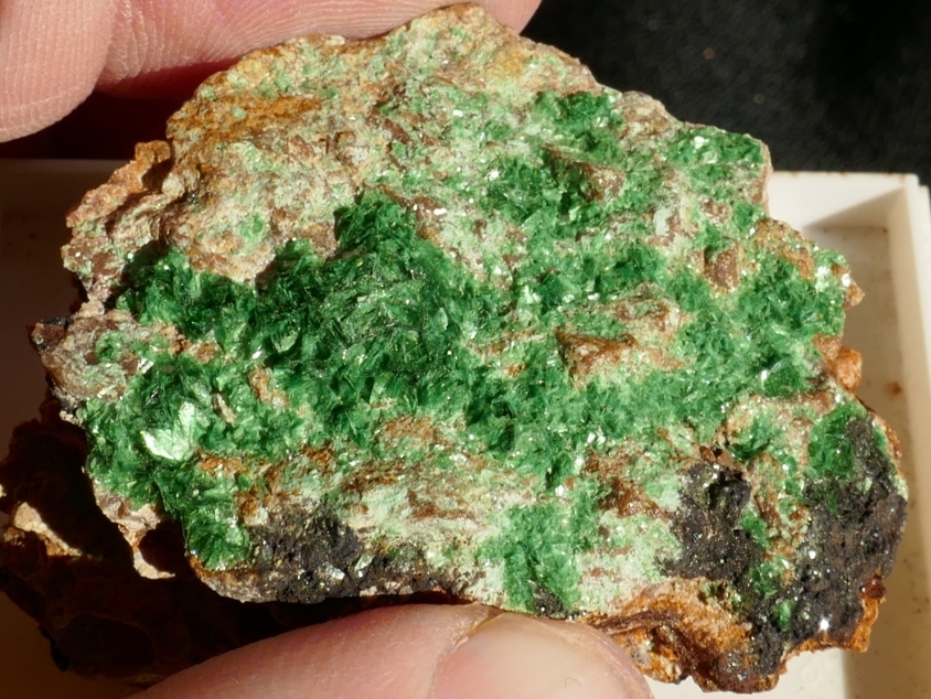 pour continuer voilà des grenats "noirs" en fait imprégnés d'oxyde de manganèse. ça leur donne une apparence originale et il ne me semble pas en avoir vu ailleurs dans ce secteur.