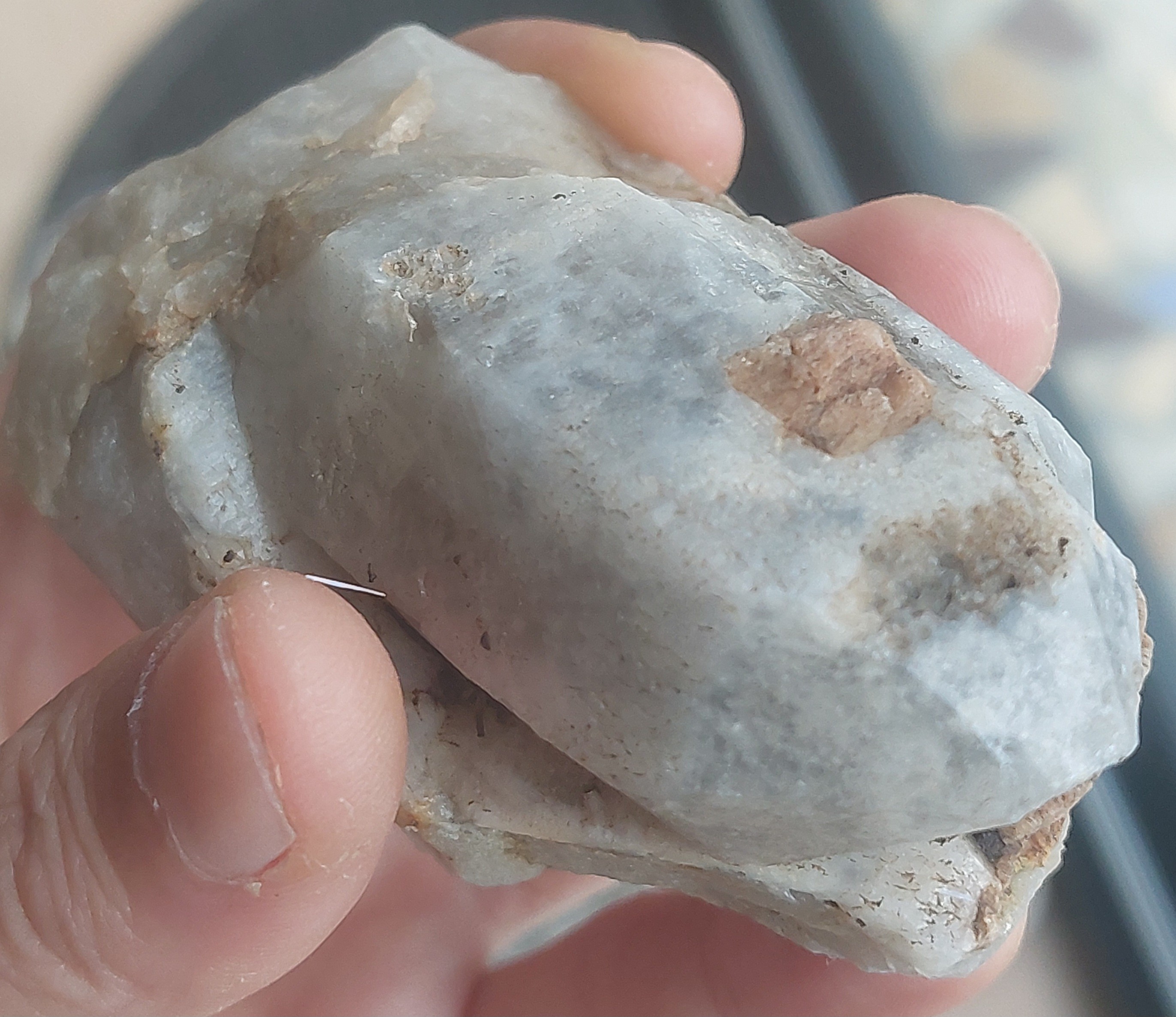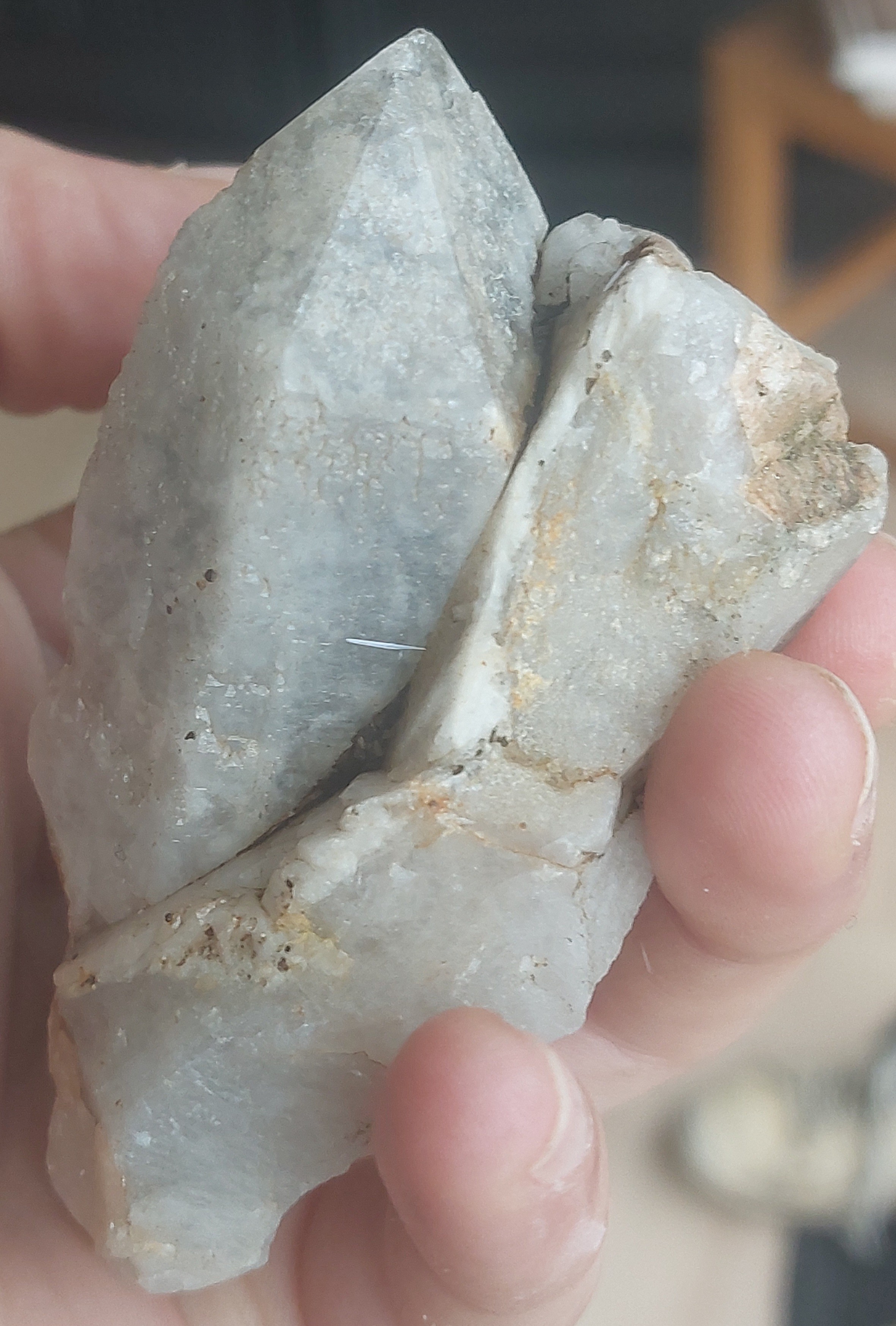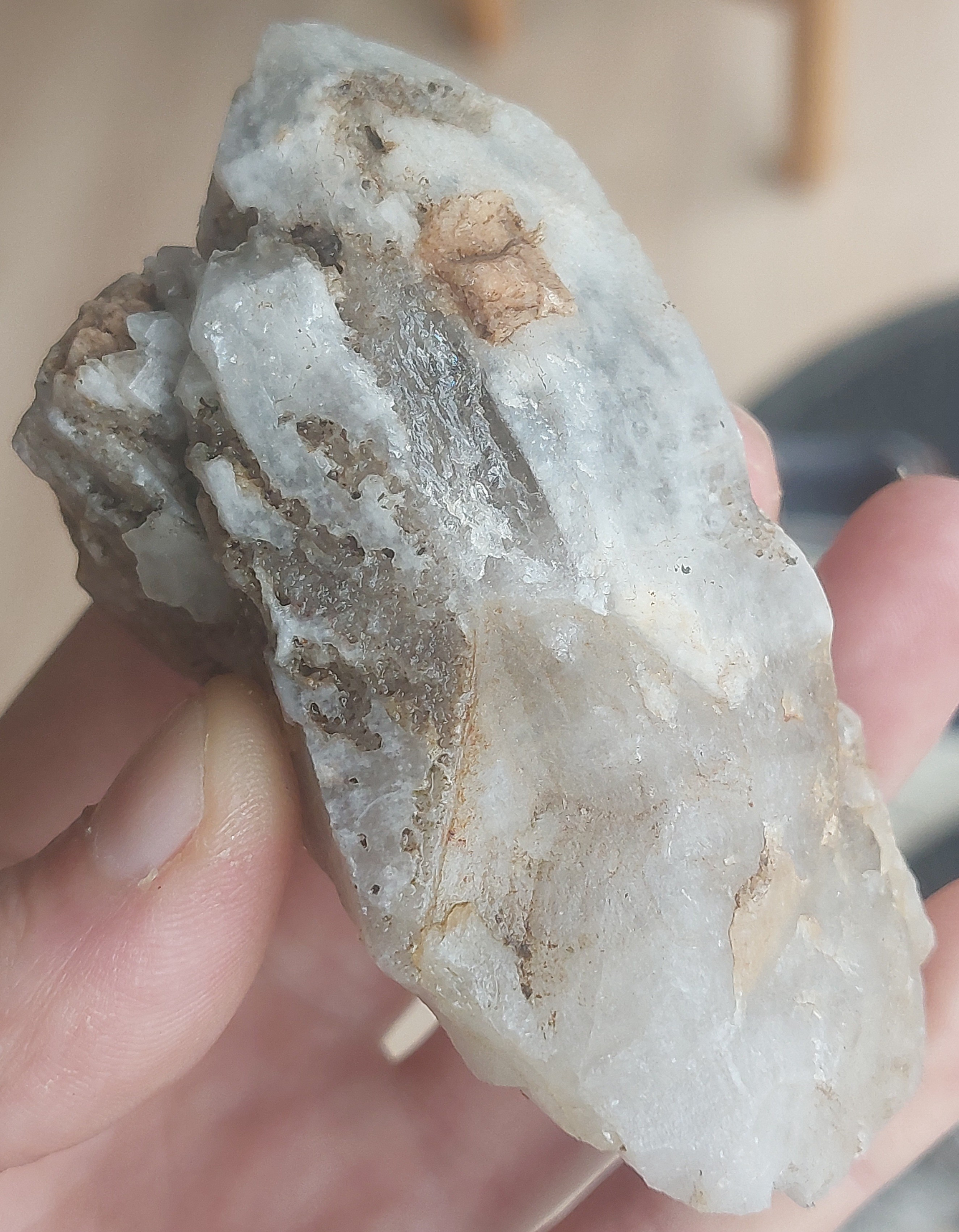 Il y a une orthose fiché dedans, et une autre dans la gangue.