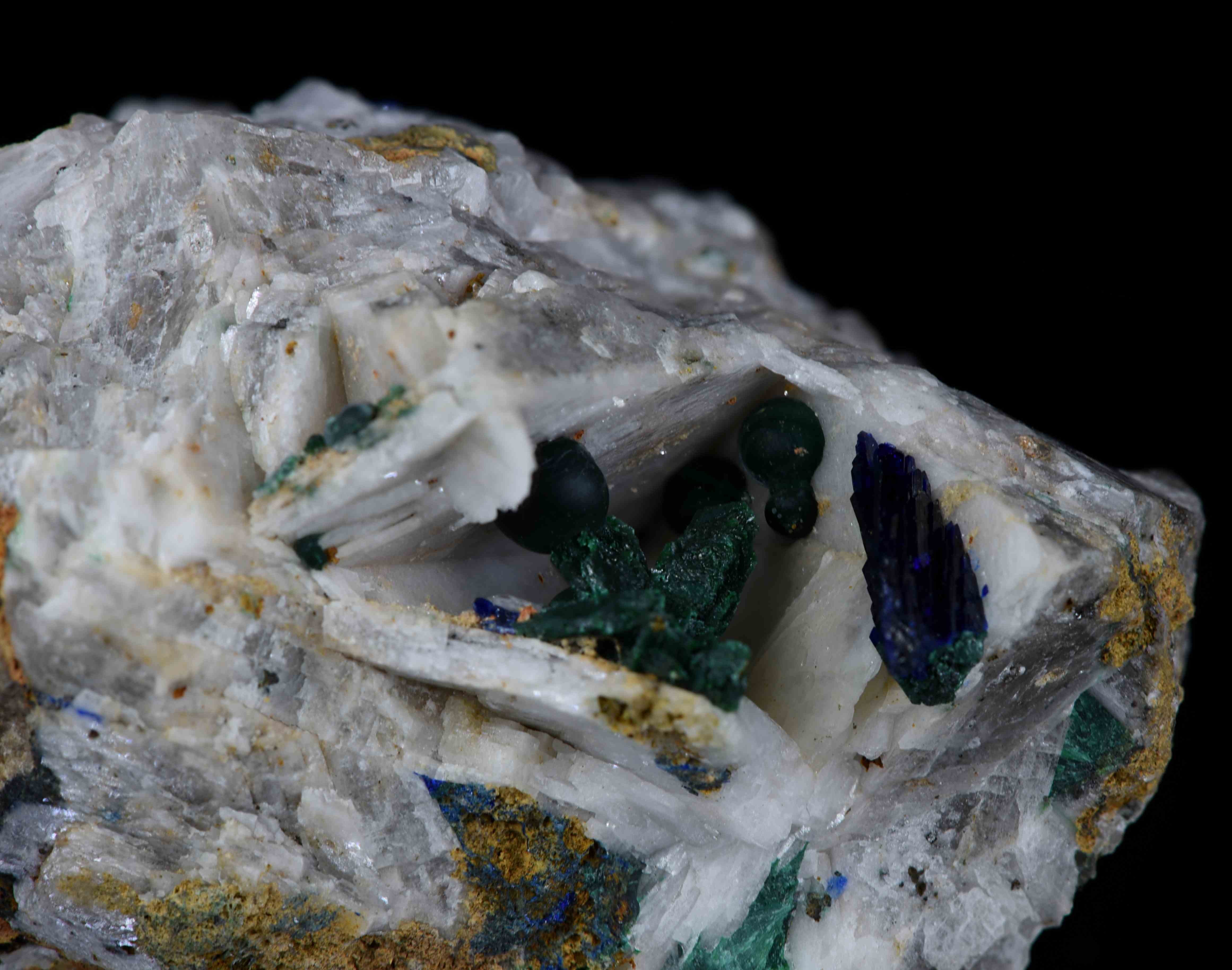 J'y ai donc trouvé des Azurite en micro fort sympa et un mineral jaune en encroutements dans la Baryte ou en "peinture", saurais tu me dire de quoi il s'agit ?