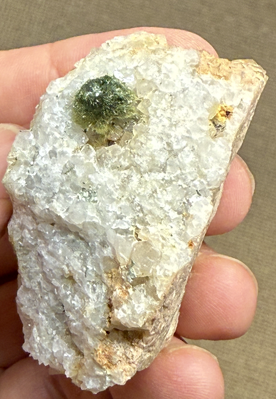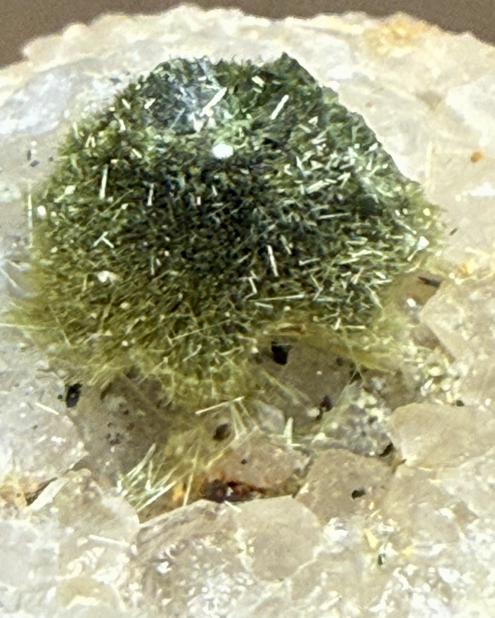 Olivénite, oursin dans le quartz carié. [60mm]