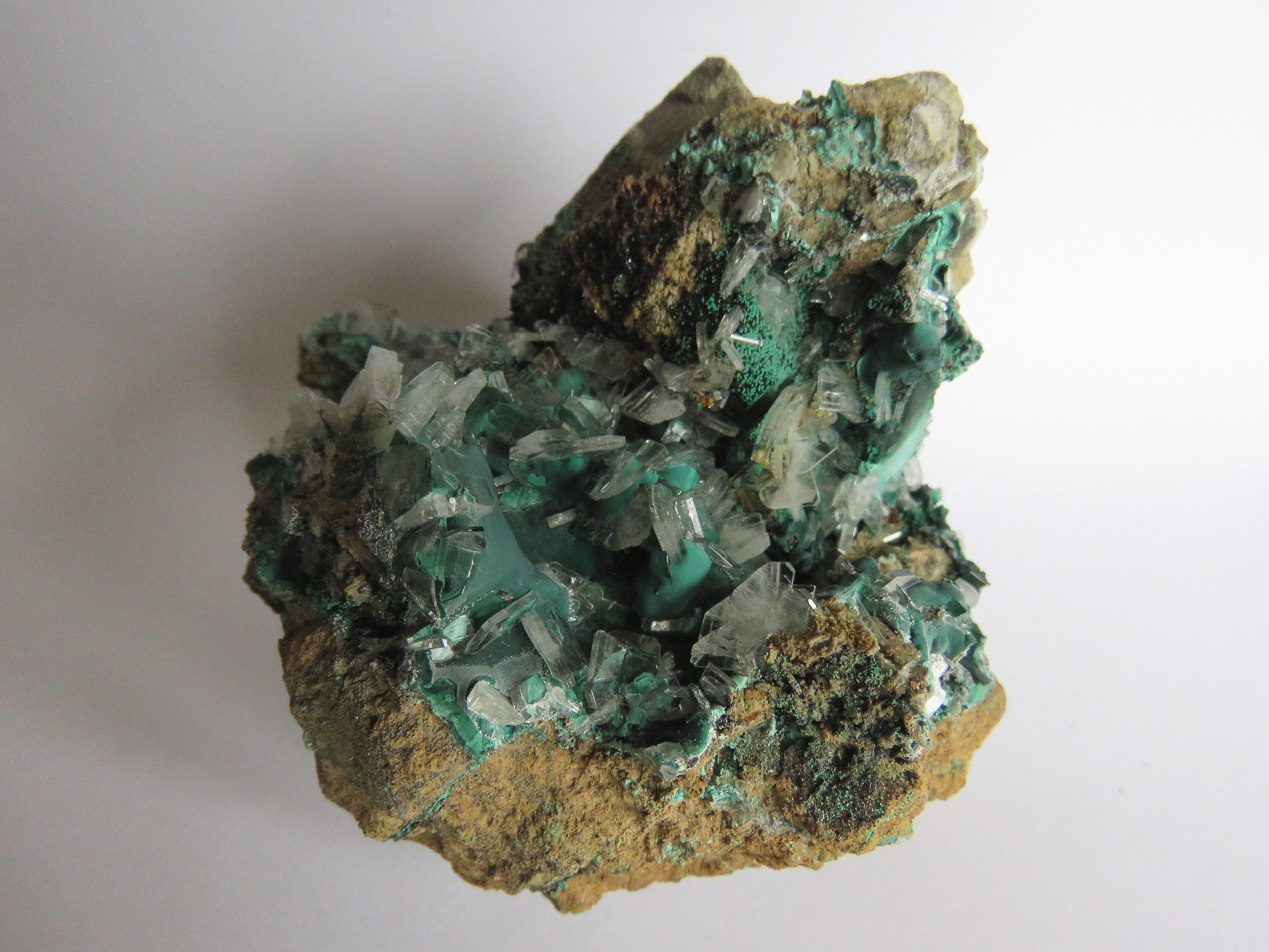 -Malachite en plaquage d'une géode de chrysocolle: les cristaux gemmes, tabulaires, construisent des structures en noeuds papillons, faisceaux ou champignons... La couleur verte est très profonde, saturée, et la brillance extrême. Un vrai défi pour la photo ! 14 X 7 cm environ, LubumbashiIMG_3124.thumb.JPG.2b041d22f40b3453d6466923f5f4b019.JPGIMG_3134.thumb.JPG.30f8f14f1cfab706de97464c42d3a161.JPG