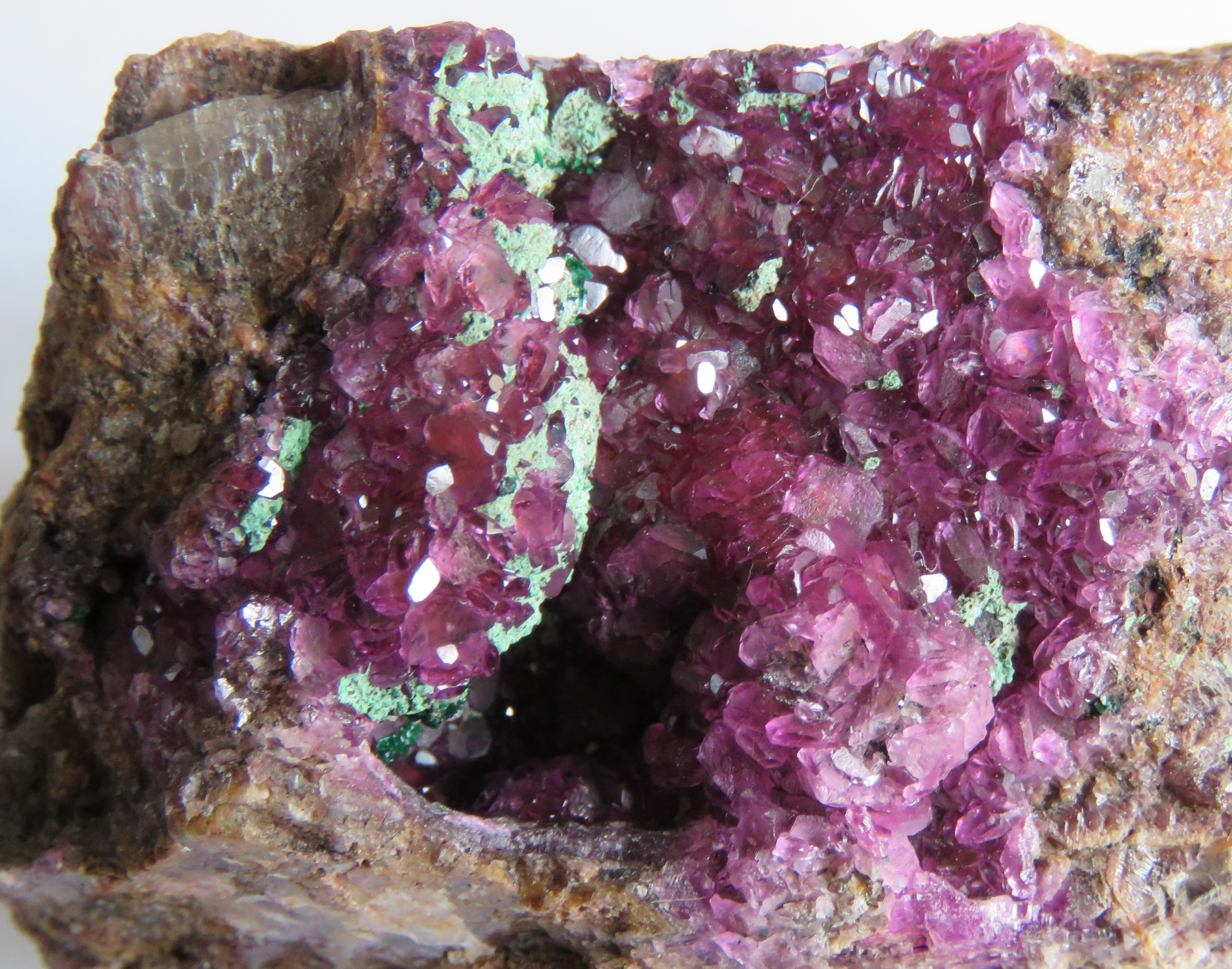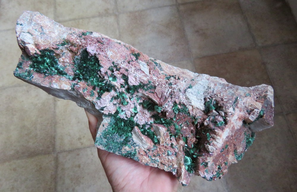 Pour continuer avec d'autres minéraux contenant du cobalt, voici une très grande pièce de dolomie (plus de 30 X 10 cm) dont les fissures ont été minéralisées en cobaltocalcite en petits scalénoèdres roses, sur lesquels se sont déposées des touffes de malachite d'un beau vert vif et brillant. Sakania, Katanga. IMG_3099.thumb.JPG.b90065aba068ec109aa52f4b7c6ef6e6.JPGIMG_3105.thumb.JPG.3471d3c4781fcd88fd0a47e3d6b84cba.JPG