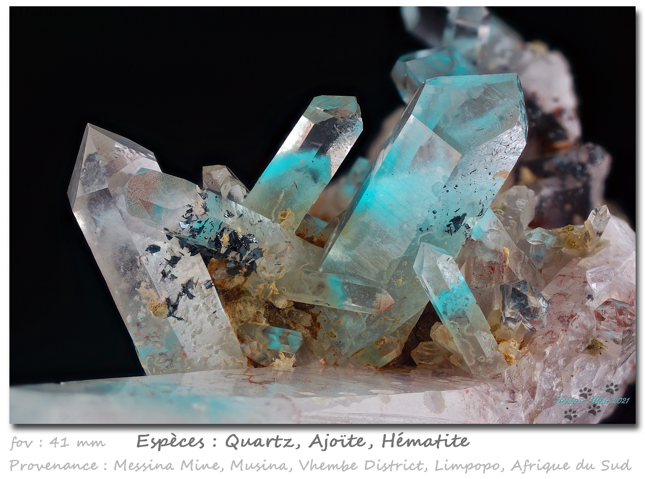 Notez la deuxième génération de micros quartz sur les gros cristaux, et qui leur est perpendiculaire. Typique du site.