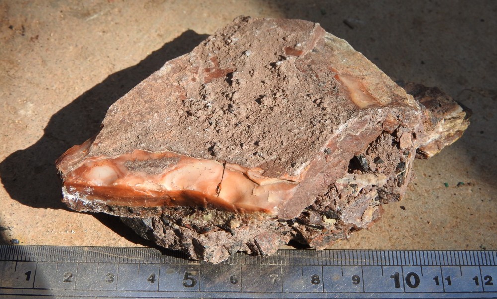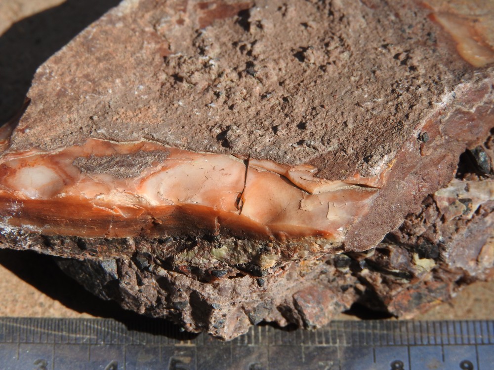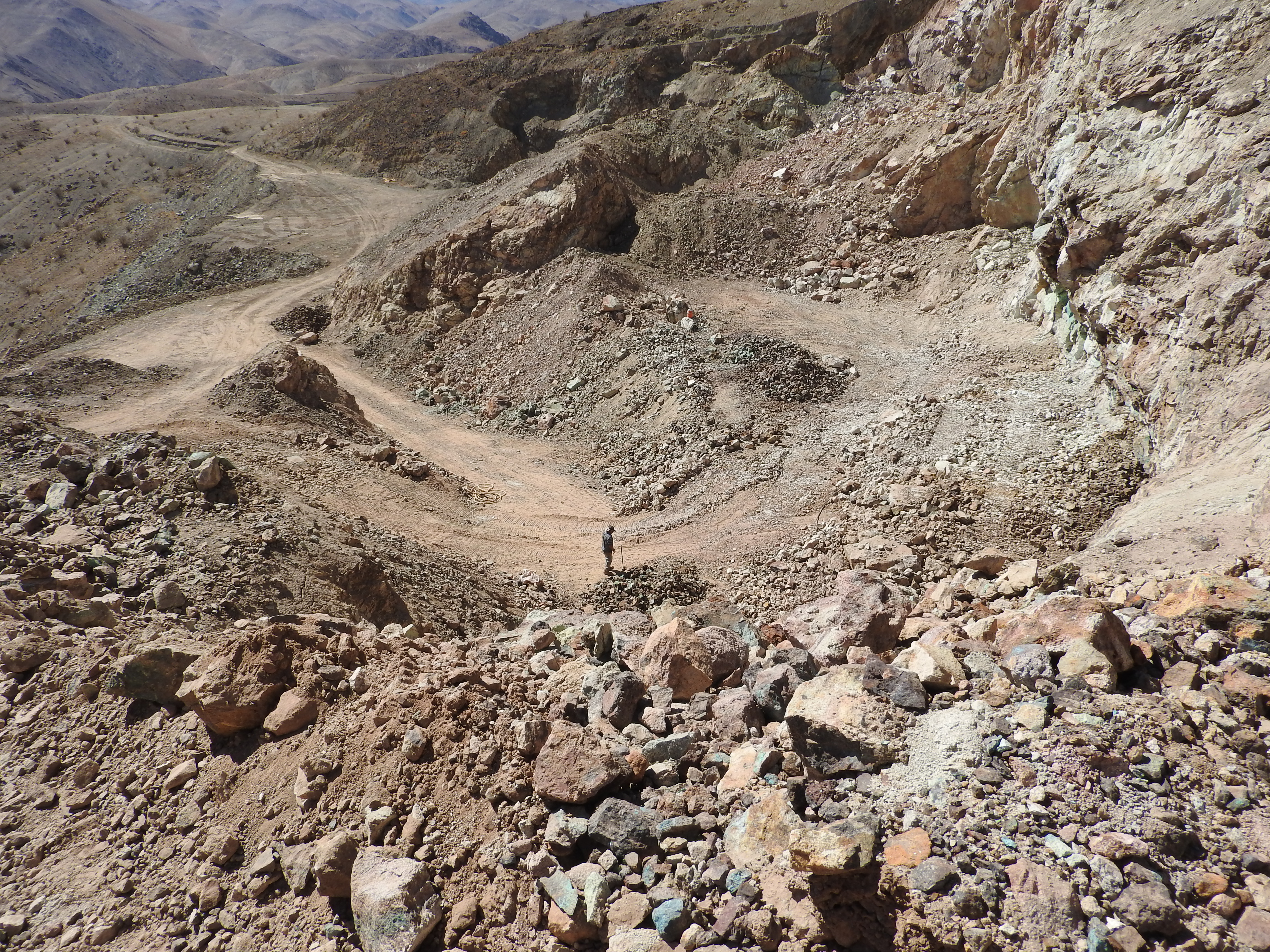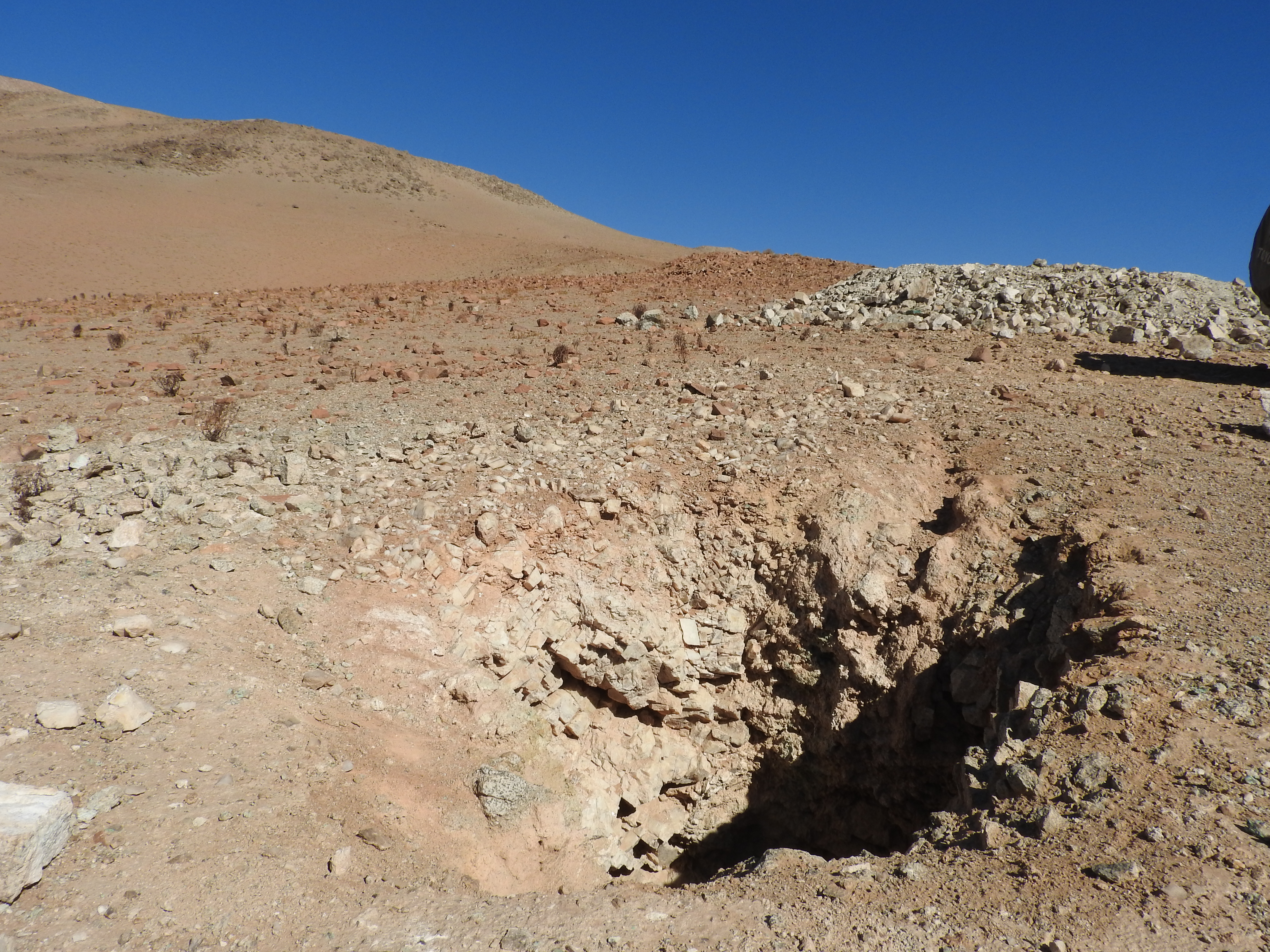 sondagede cuivre, petit remblai, veine de calcite,