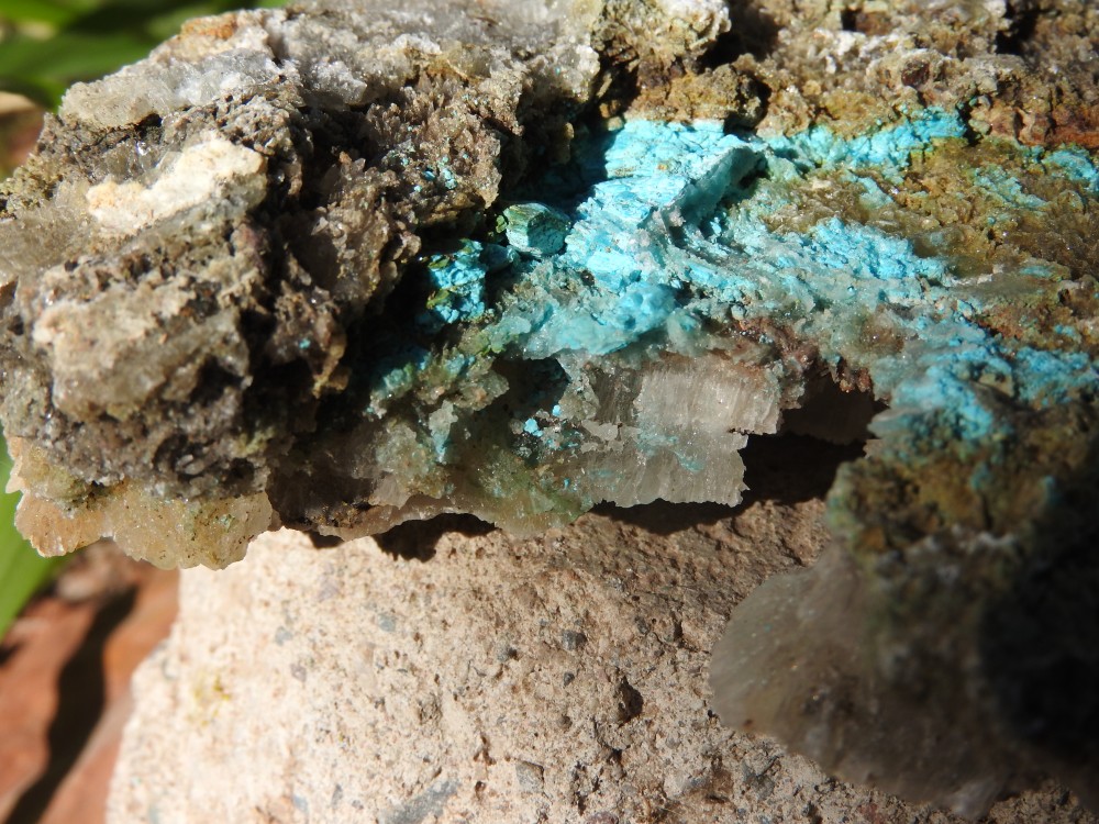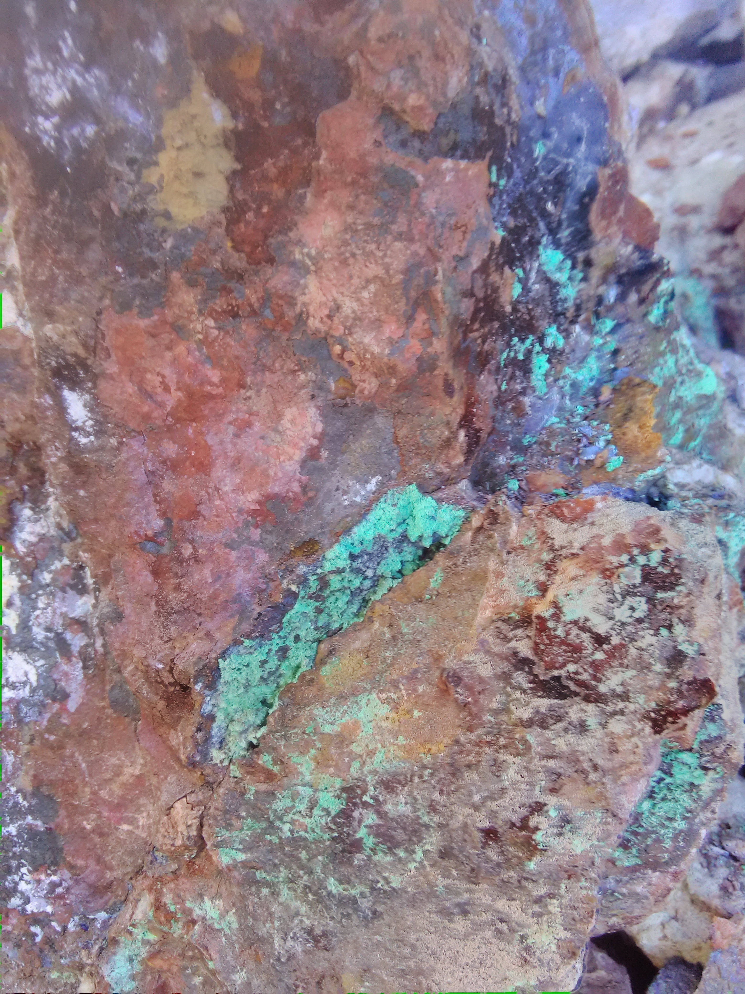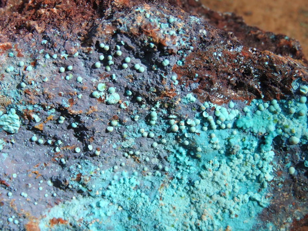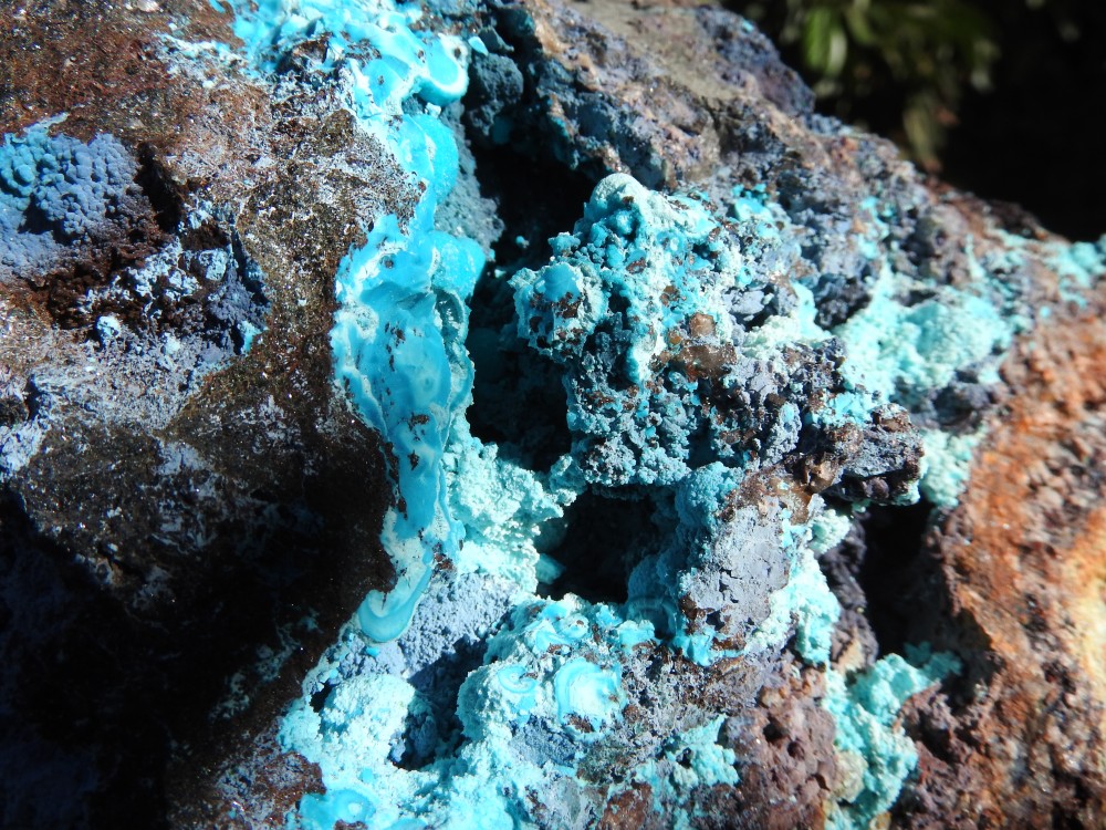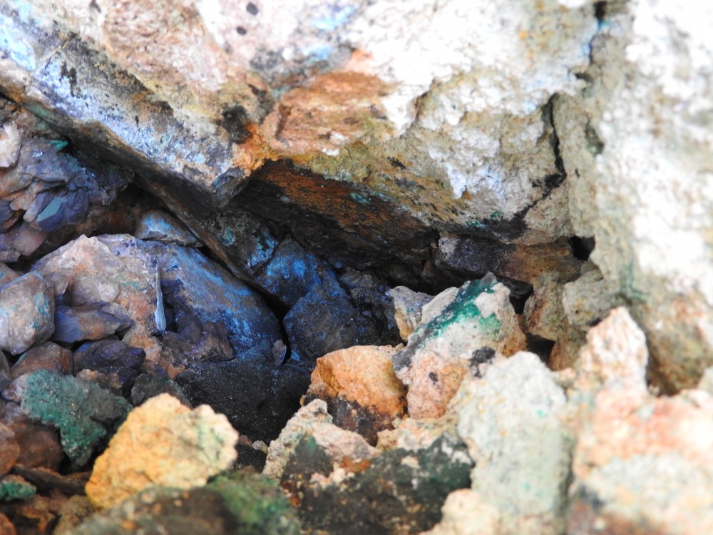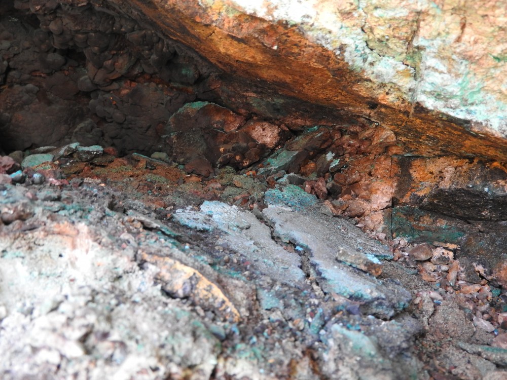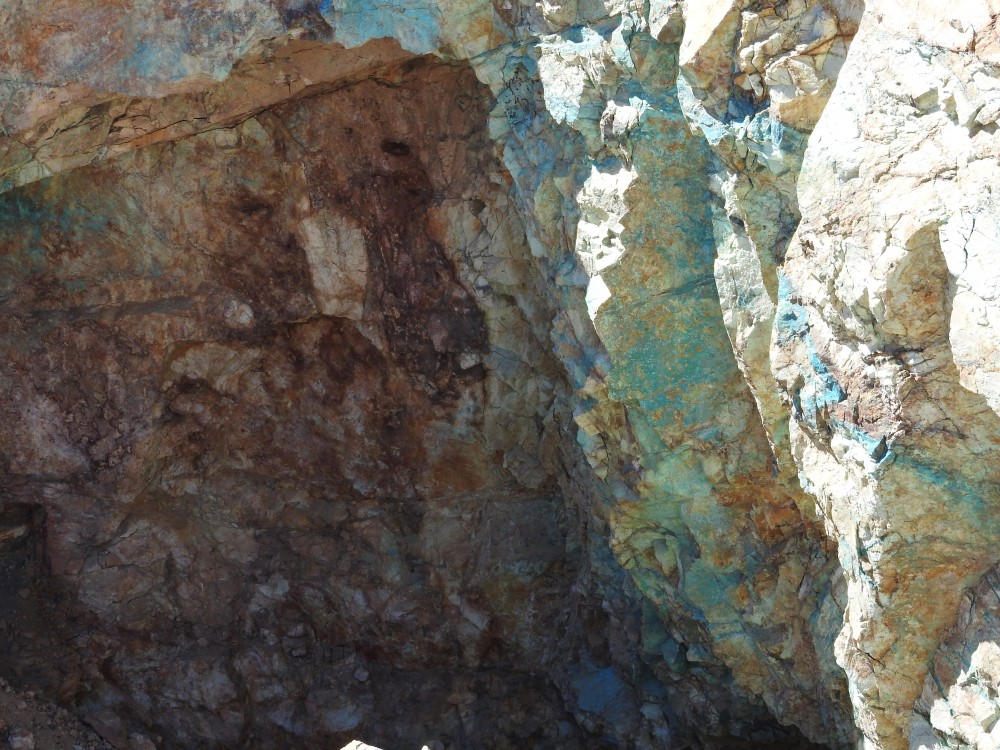 plus on se rapproche de la veine de cuivre plus des teintes bleutées apparaissent,