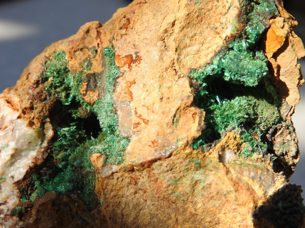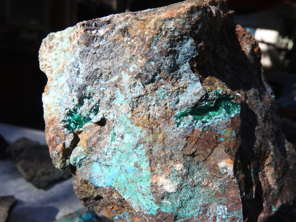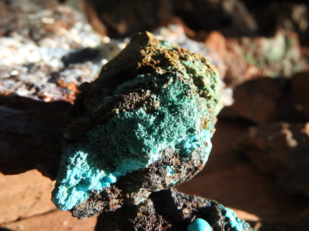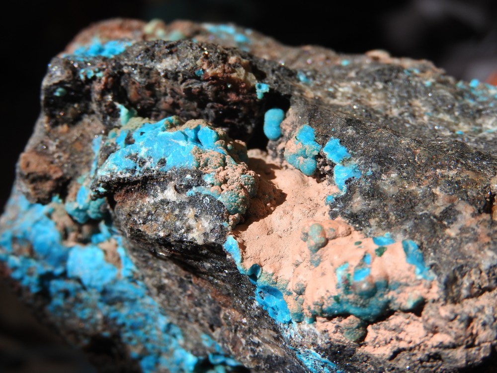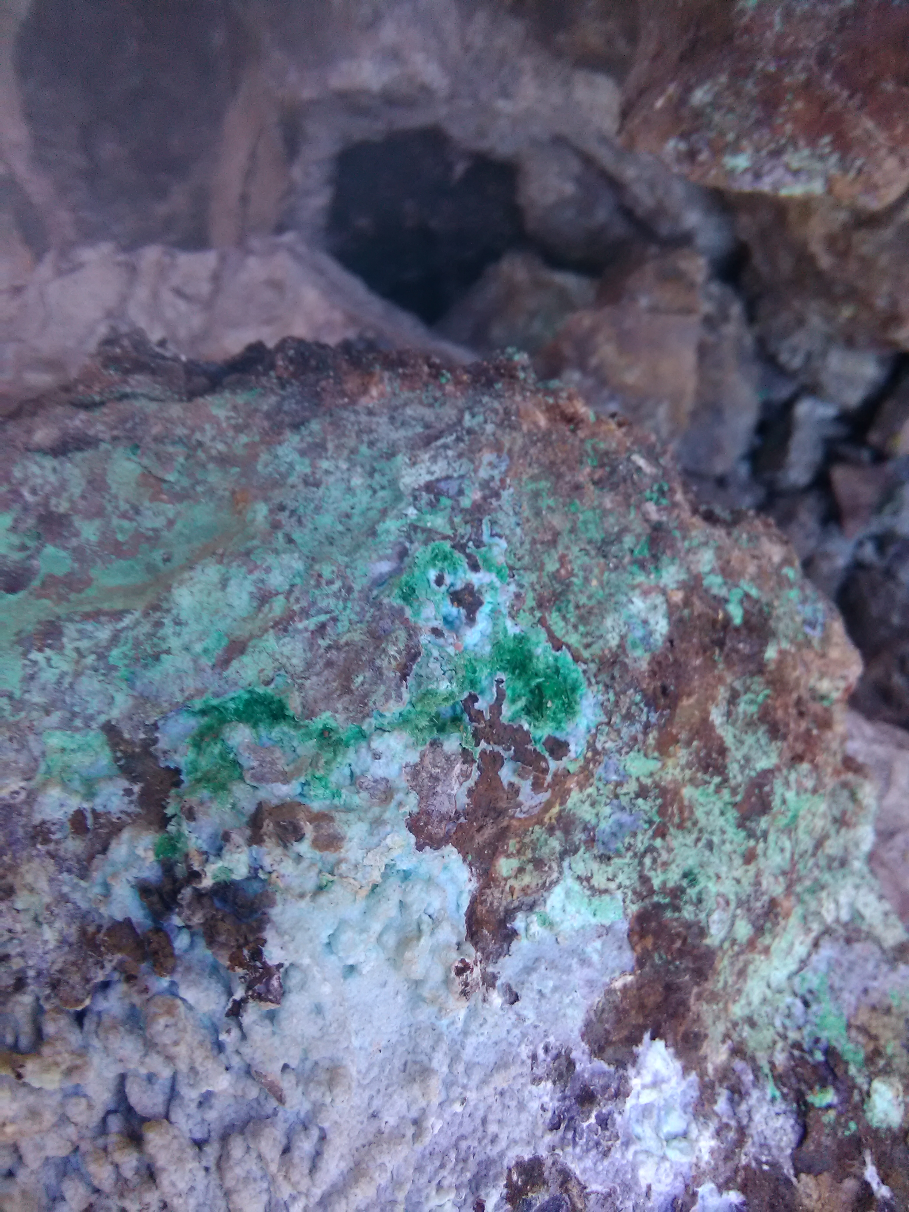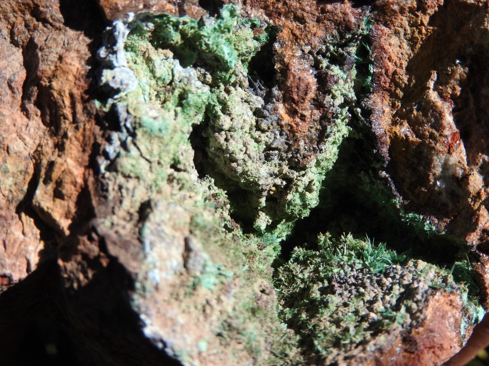 plus on se rapproche de la veine de cuivre plus des teintes bleutées apparaissent,