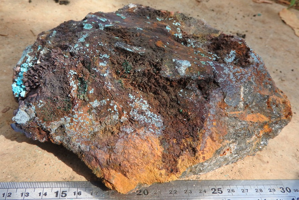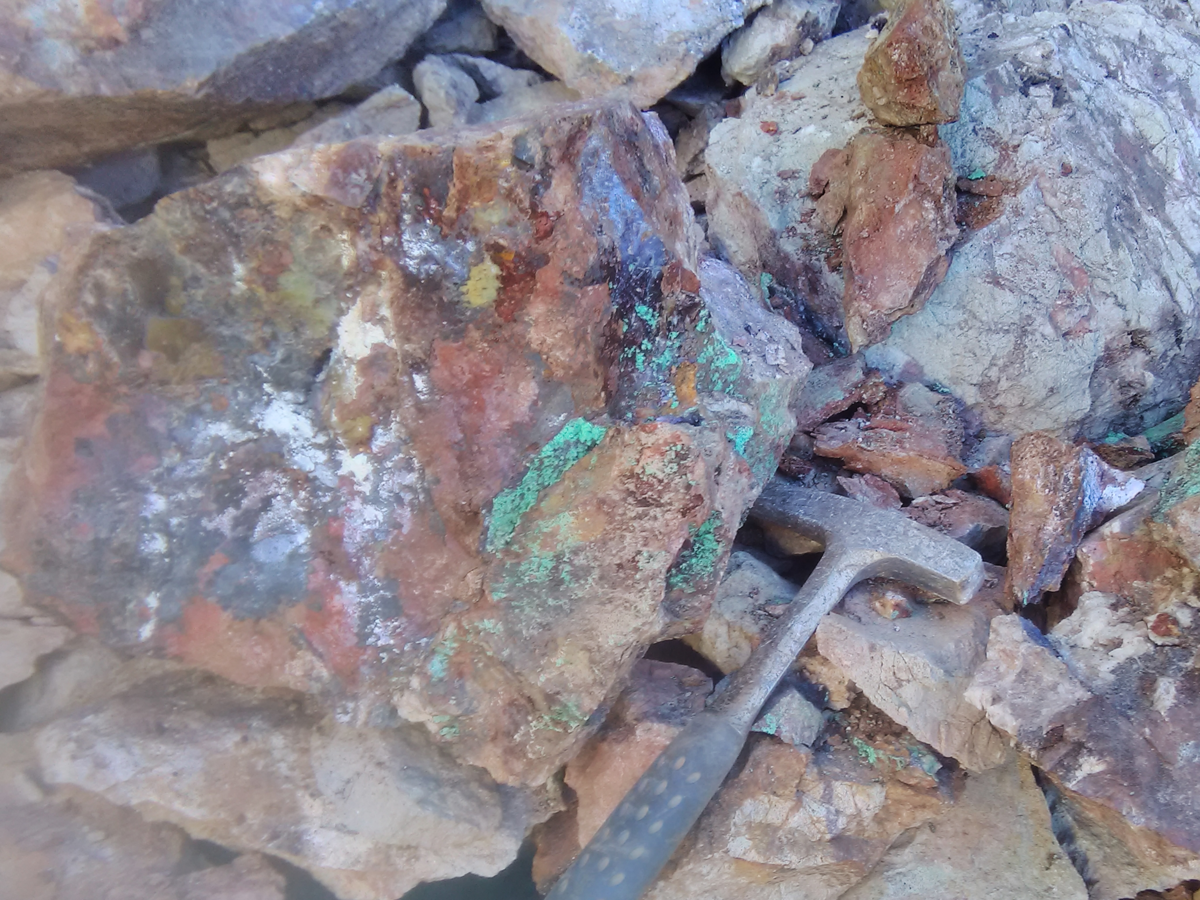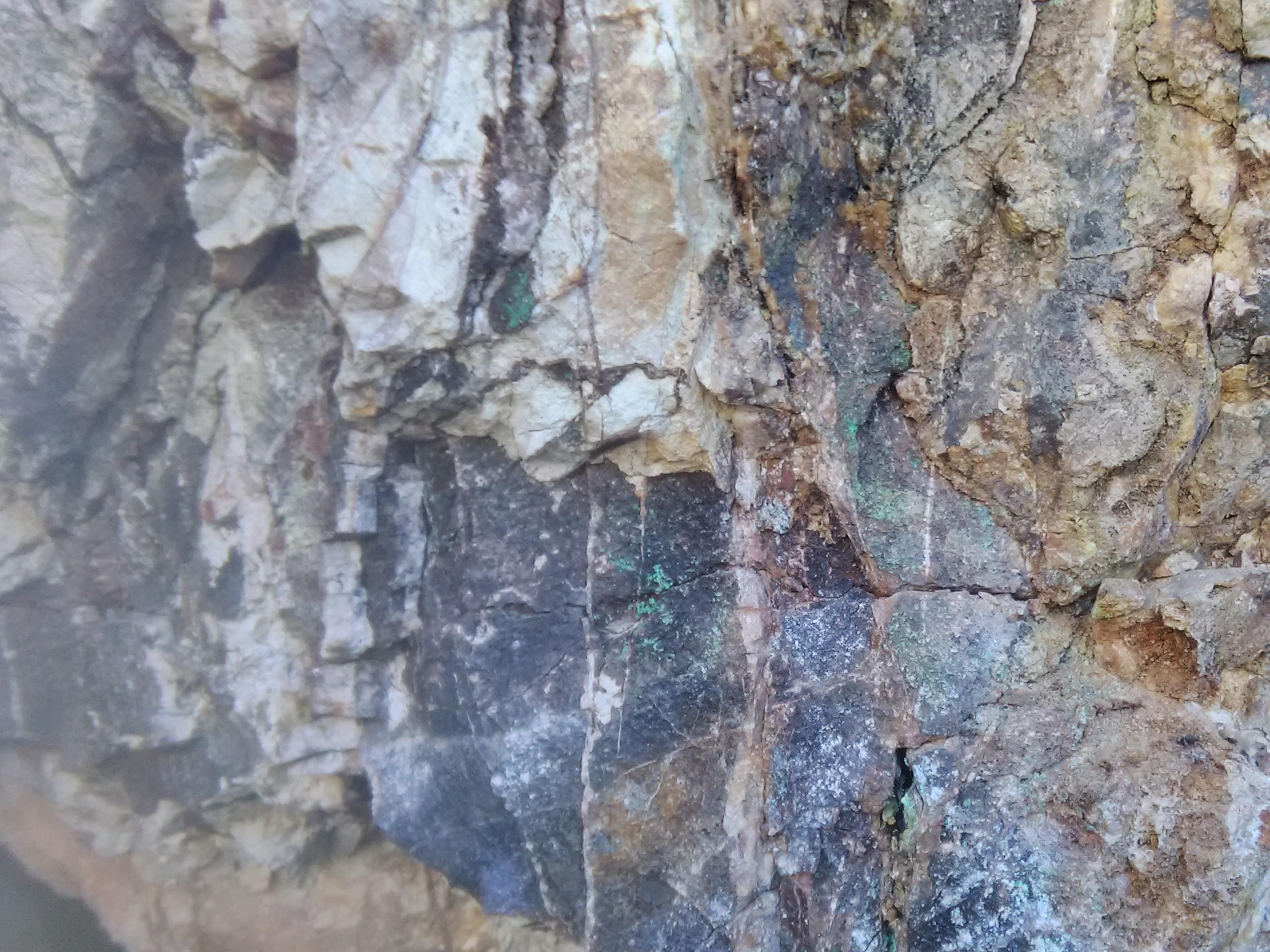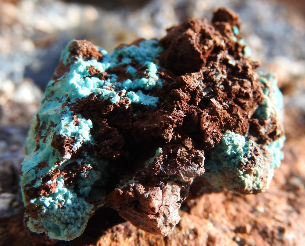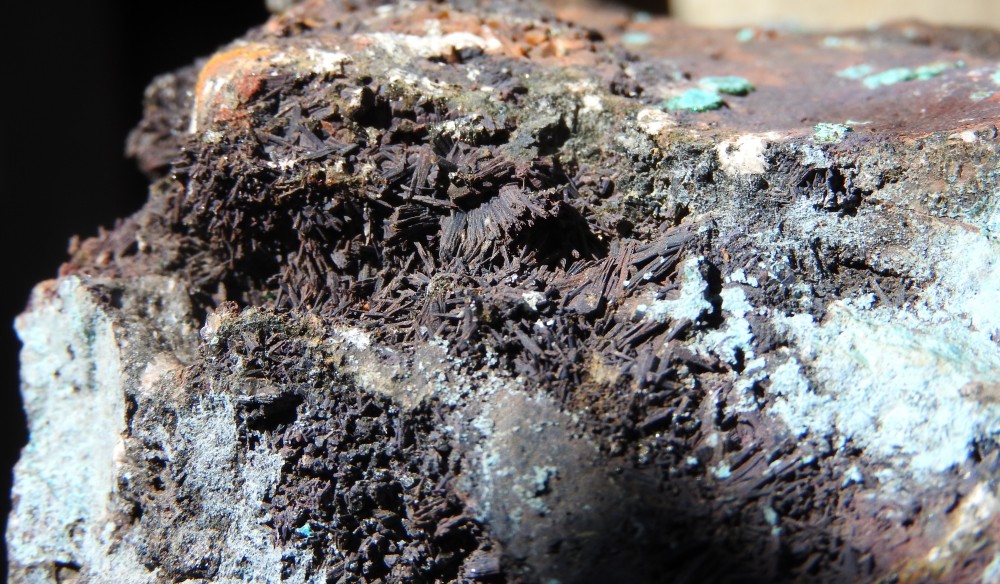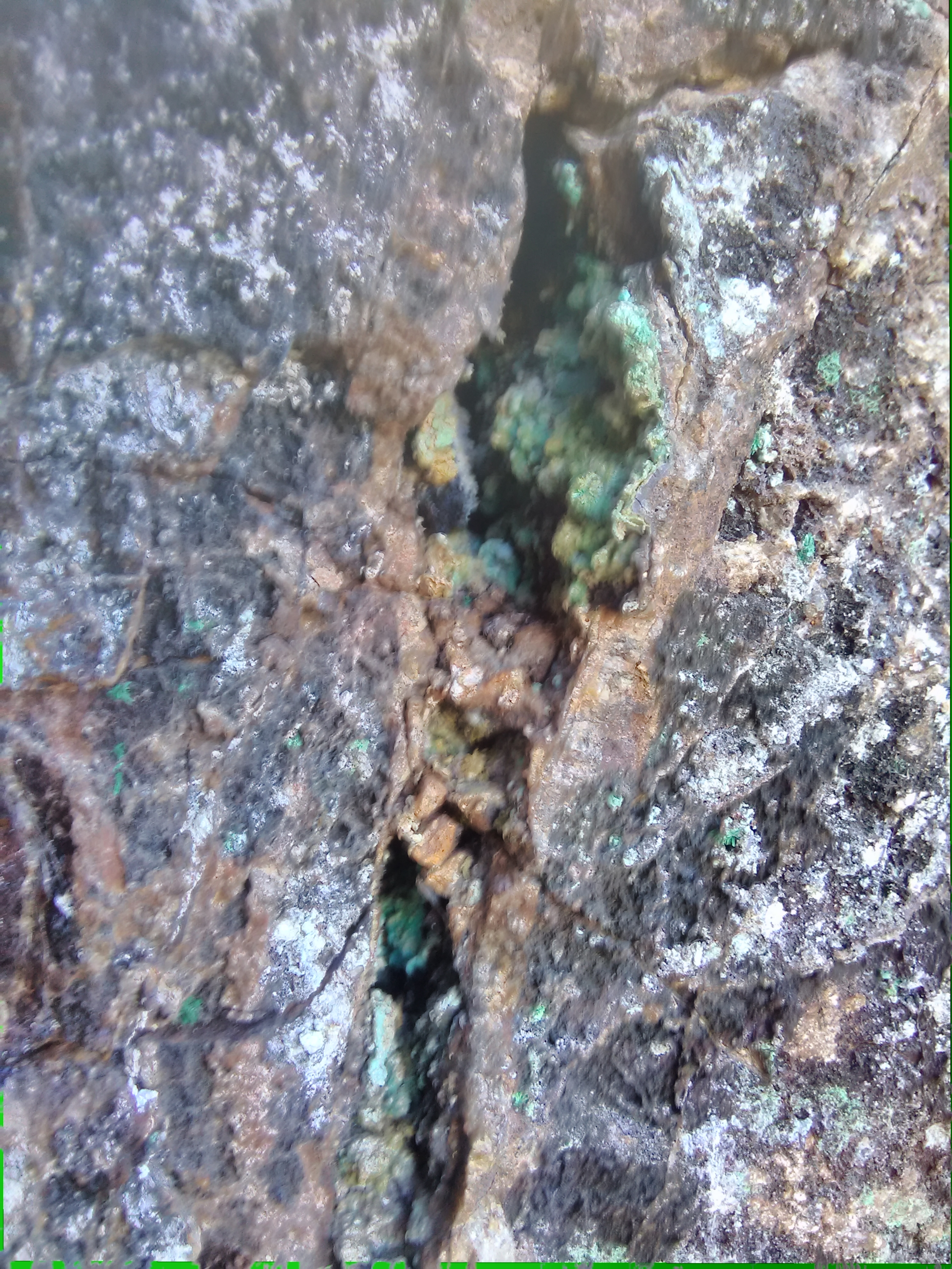 plus on se rapproche de la veine de cuivre plus des teintes bleutées apparaissent,