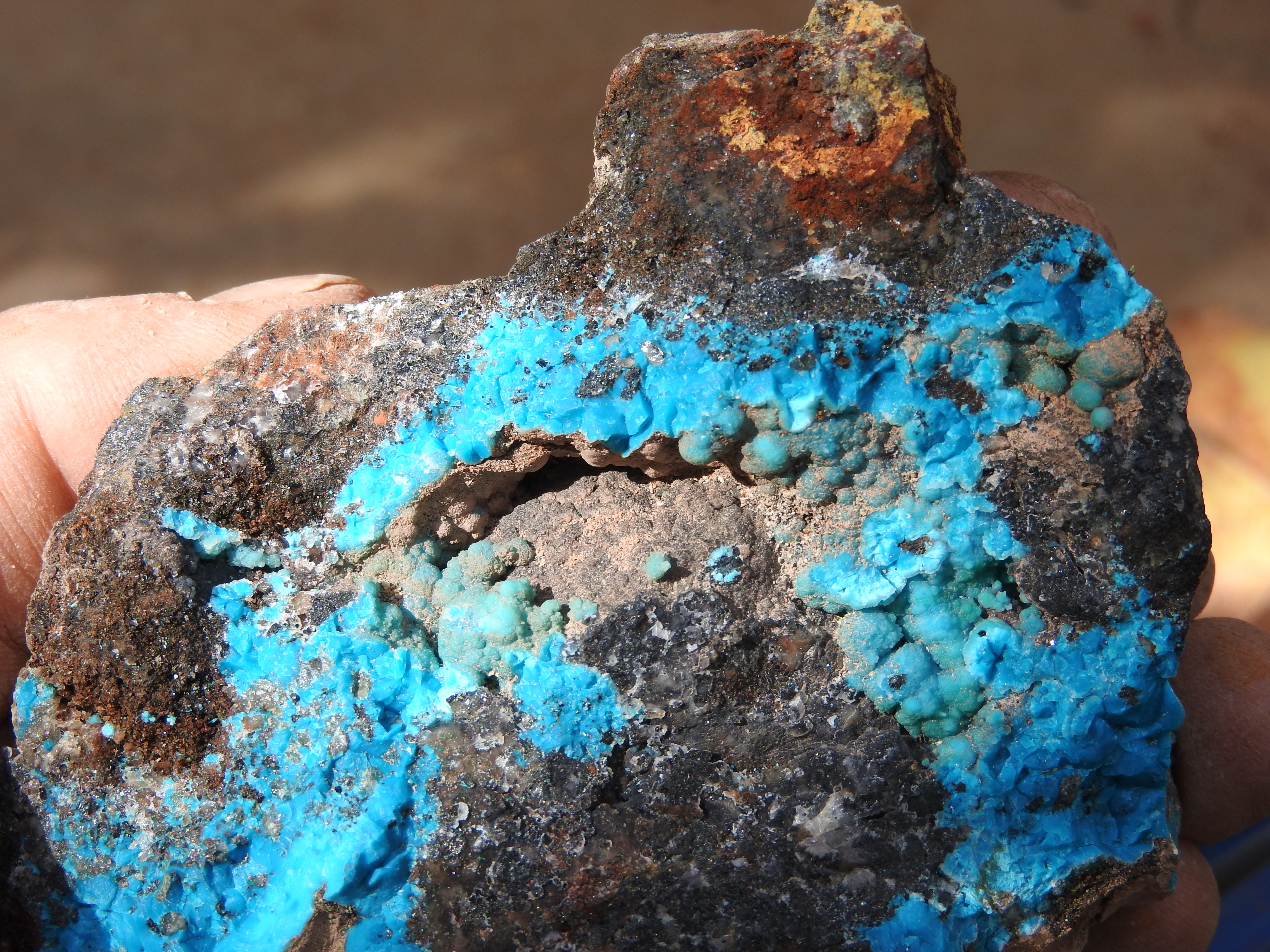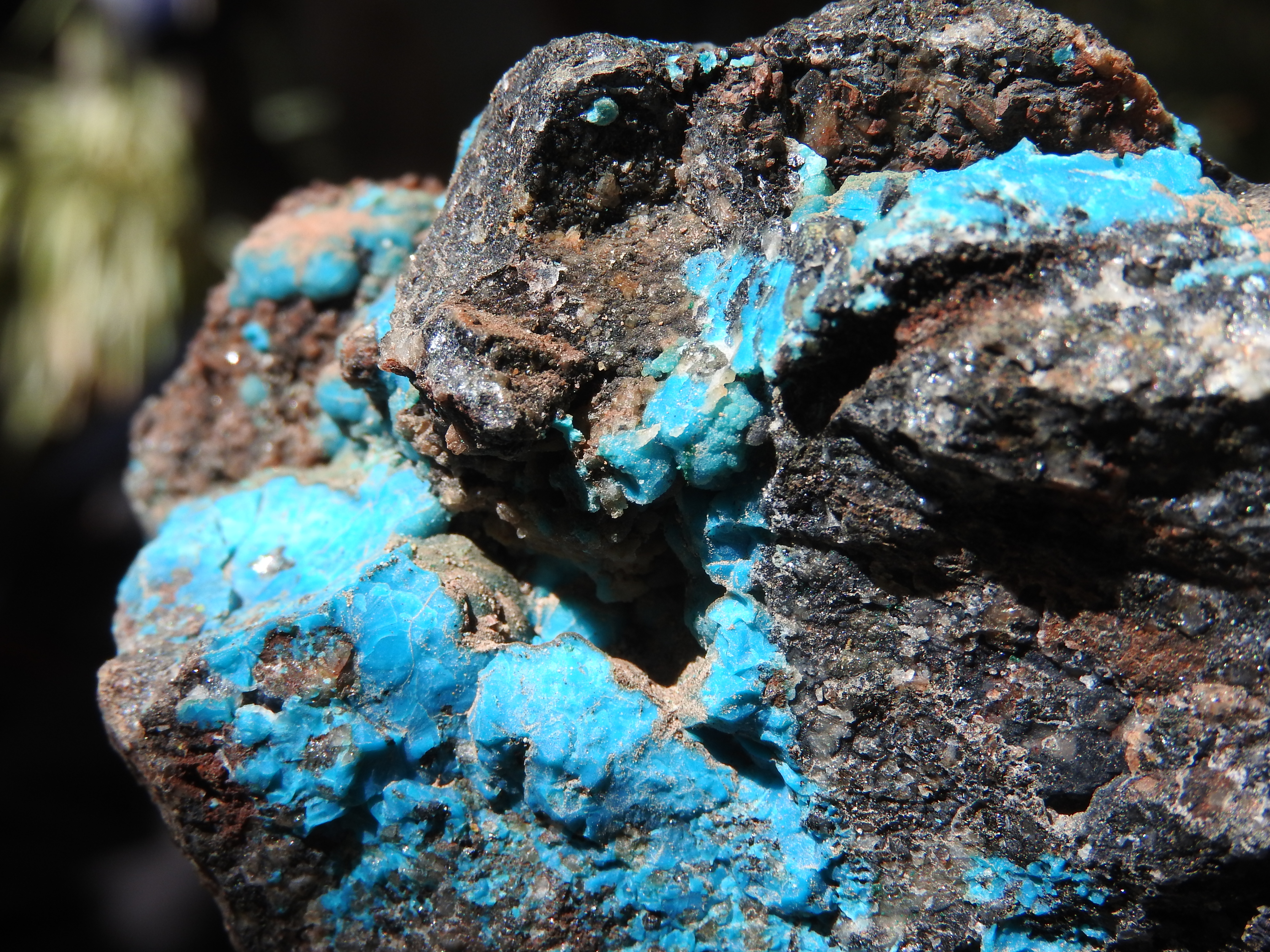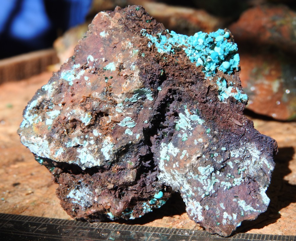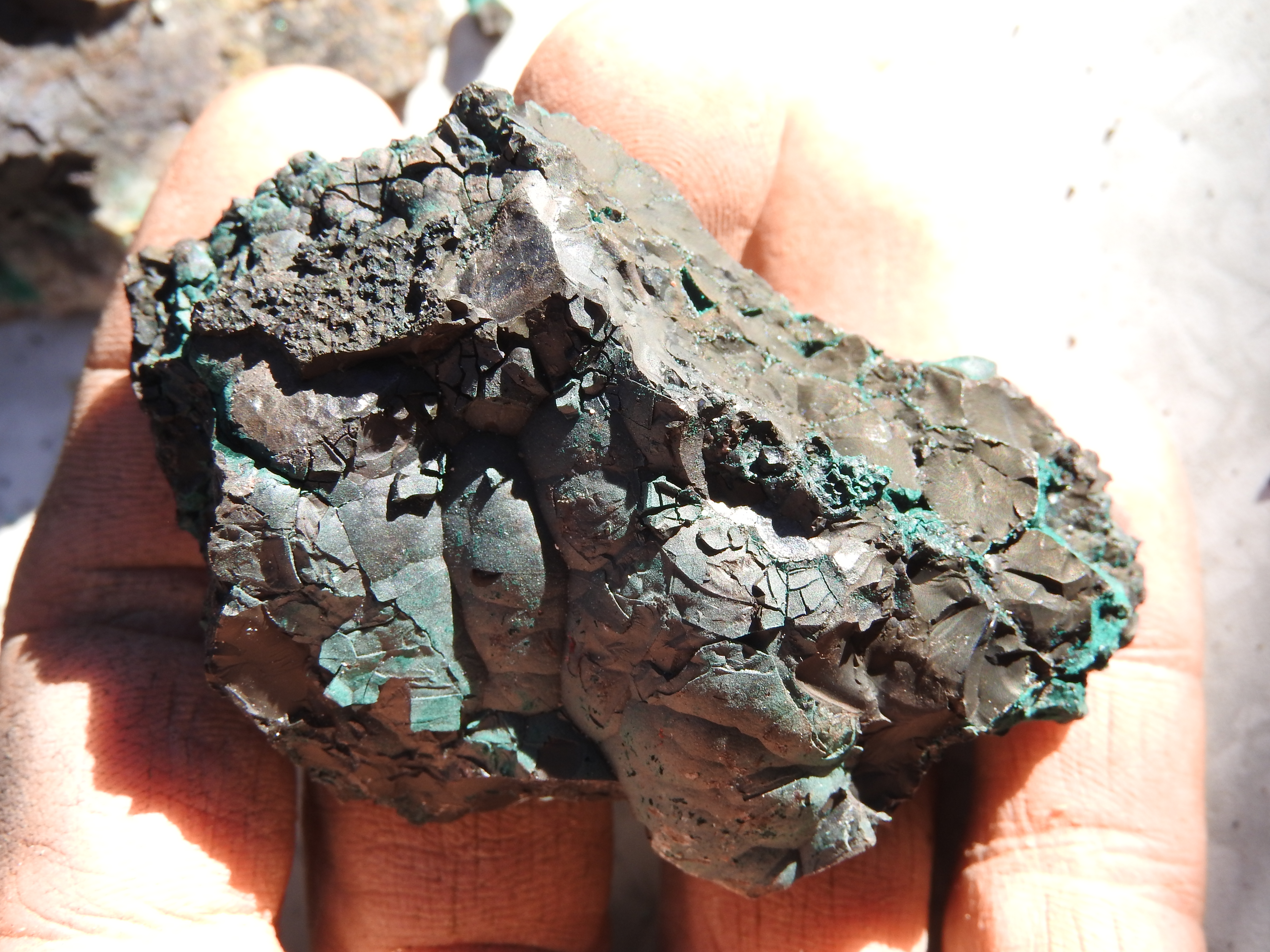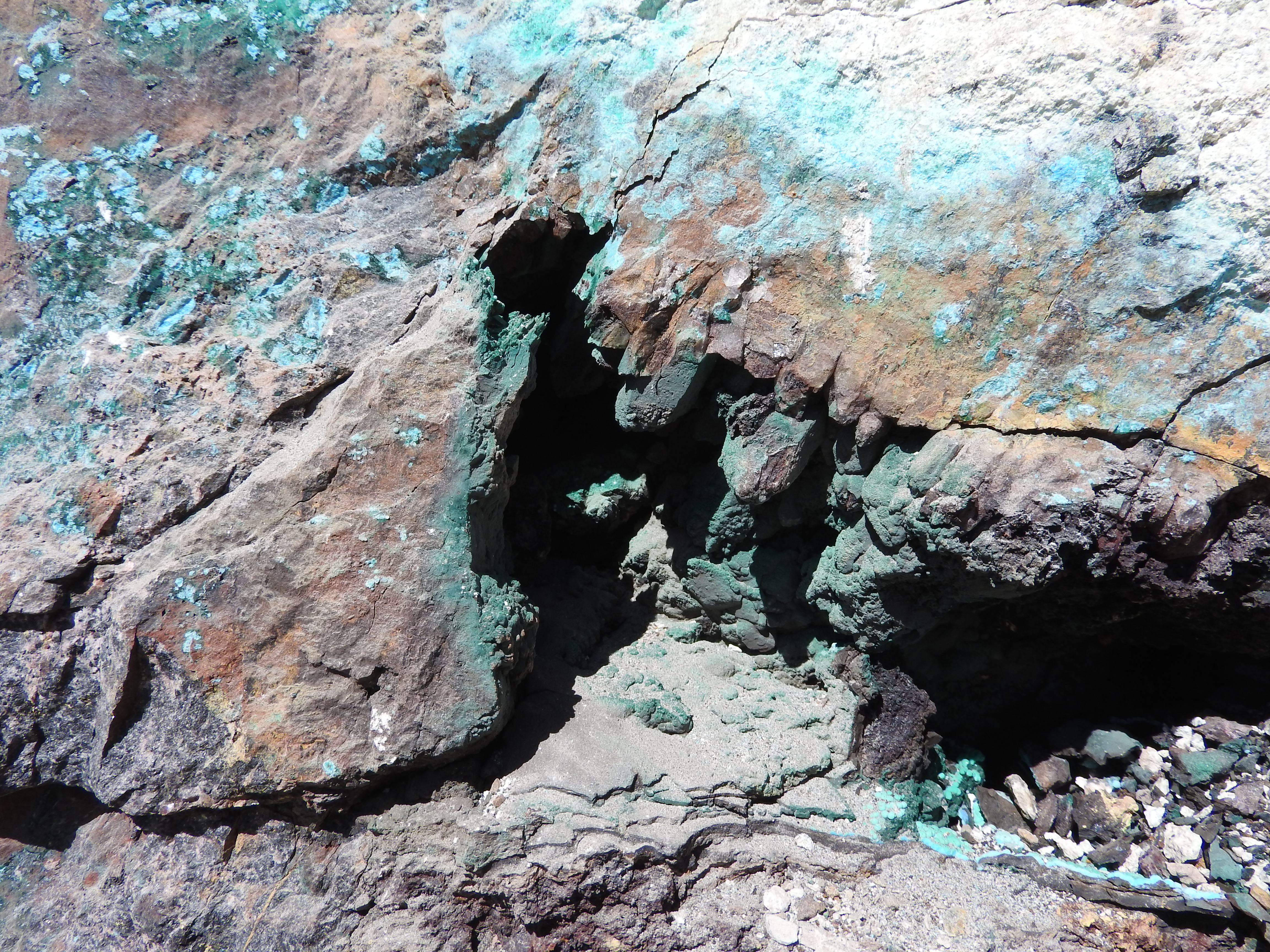 plus on se rapproche de la veine de cuivre plus des teintes bleutées apparaissent,
