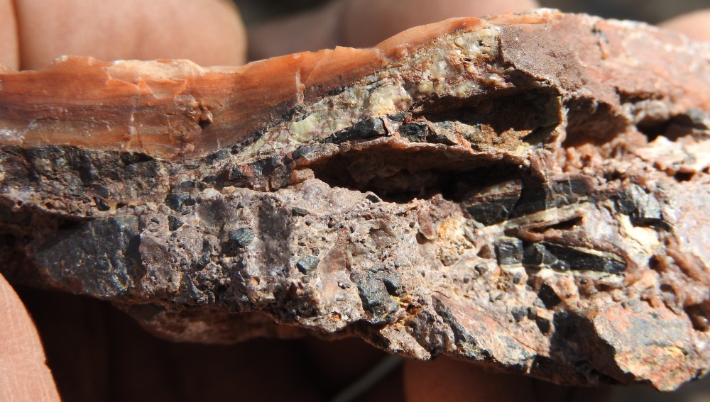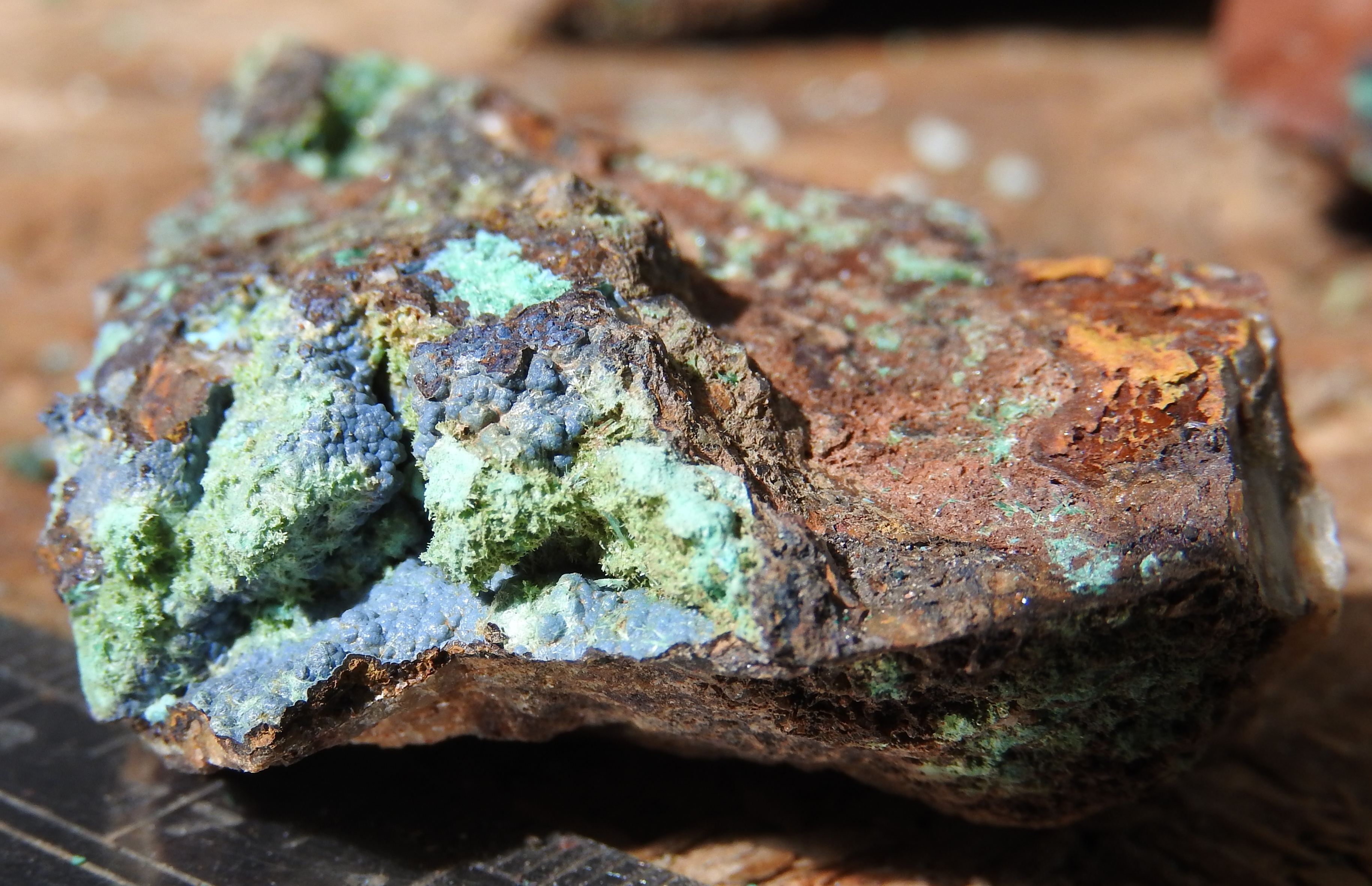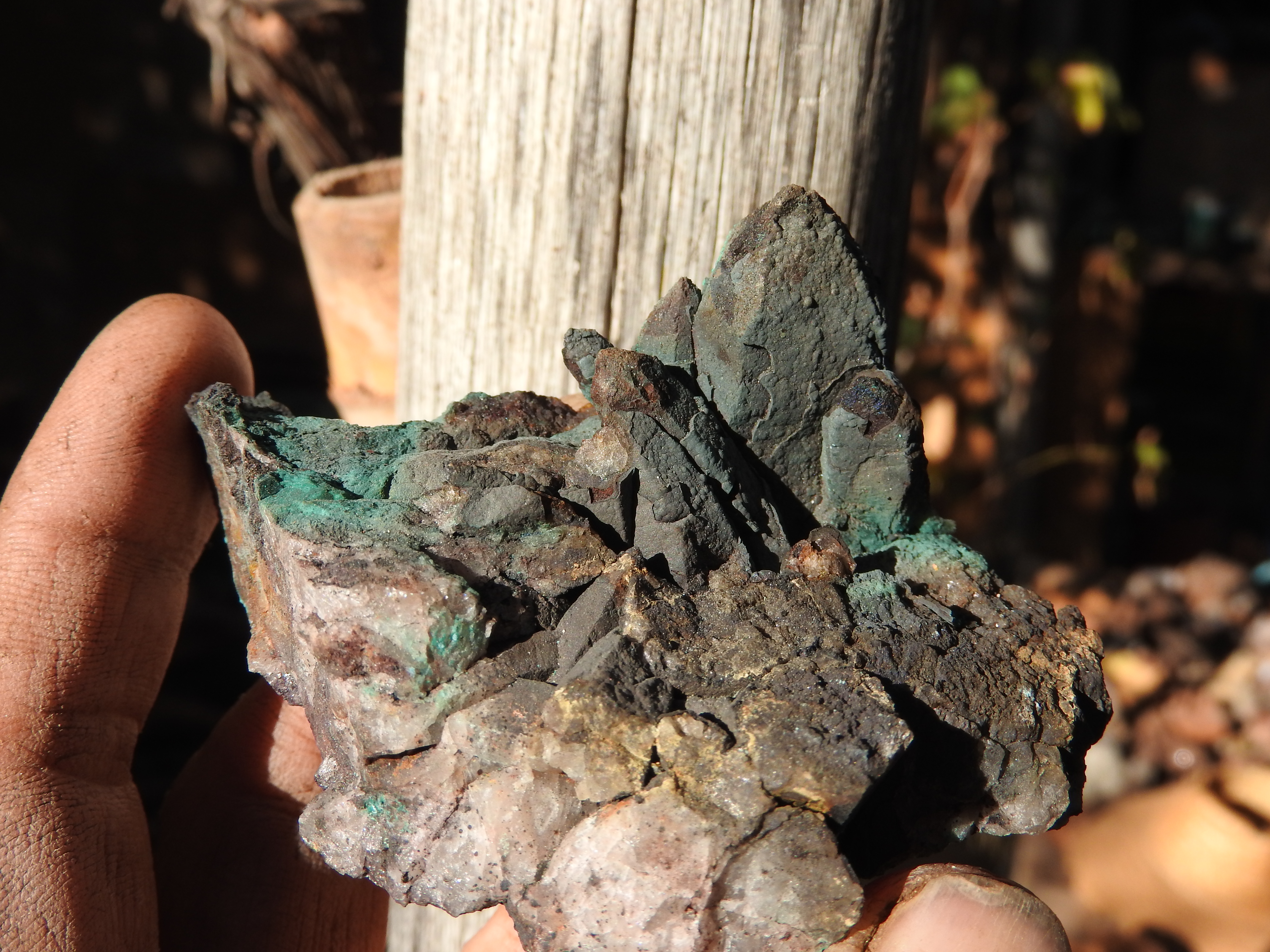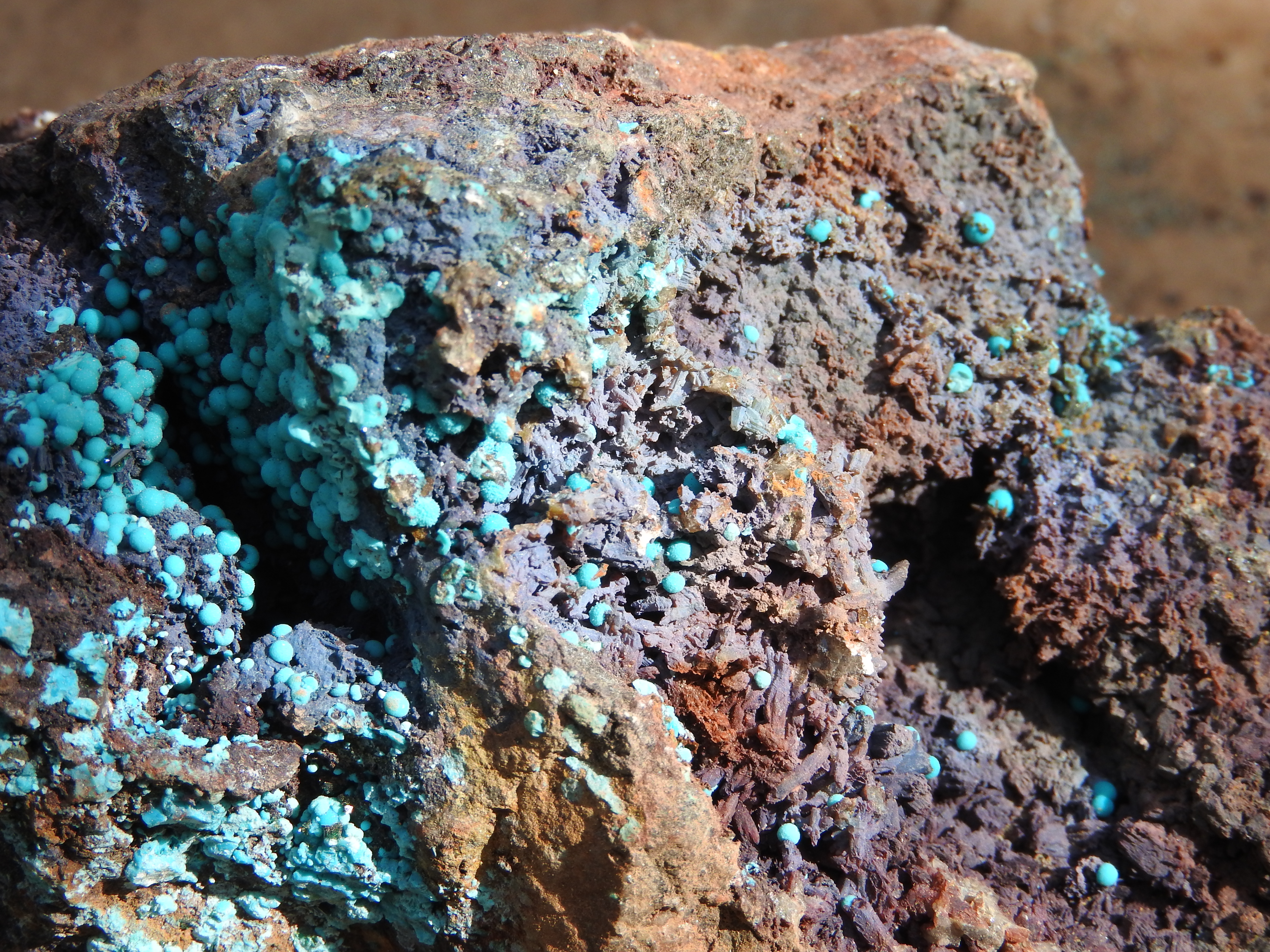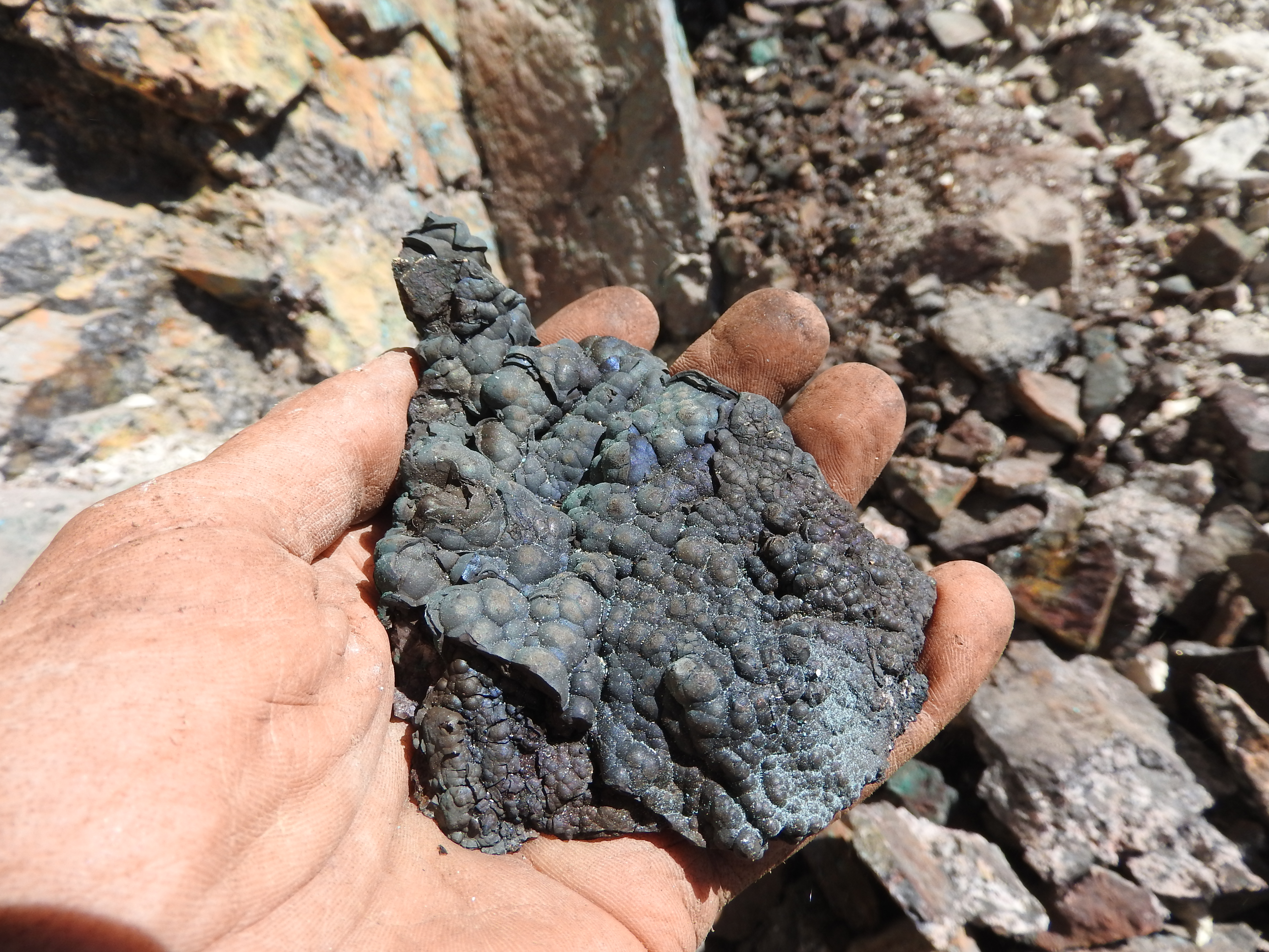 plus on se rapproche de la veine de cuivre plus des teintes bleutées apparaissent,