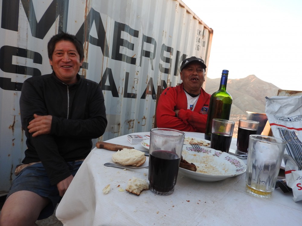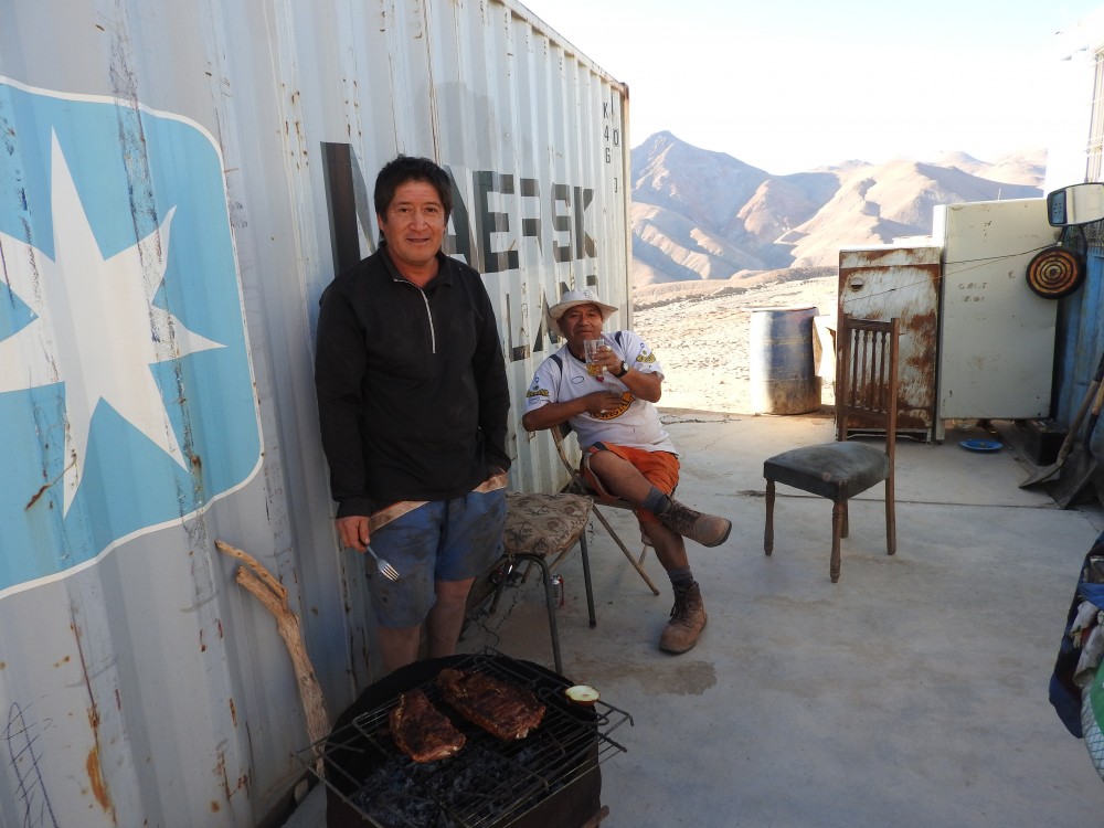 en compagnie de Juan, conducteur d'engins, perforateur, maniement explosifs et barbecue, et Oscar, son bras droit,