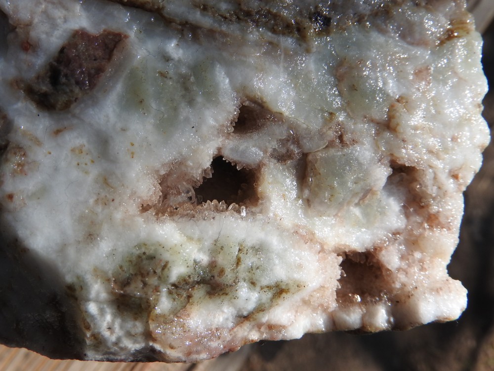on peut voir sur l'agrandissement suivant qu'il semble y avoir deux sortes de cristaux: des quartz en haut, et des ...en bas :P