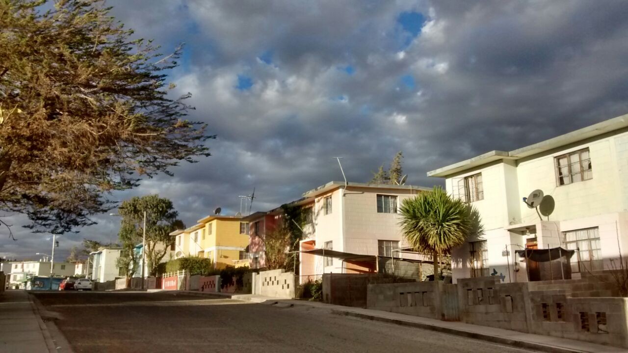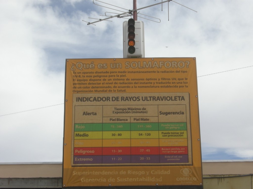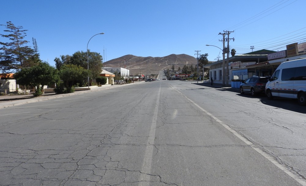 Ce n'est pas une ville à proprement dire, mais plutôt un campement minier (il y a quelques années en arrière , il fallait monter patte blanche à un contrôle de police situé quelques kms avant , et annoncer sa viste) construit "à l'americaine ",  à 2400 m d'altitude , en 1959,  15 000 habitants à son apogée  , + ou - 9000 actuellement. Les rues sont des avenus à 4 voies, à l'américaine,  derriere la voiture en marche , la direction de Codelco, à coté le supermaché, c'est le centre ville.