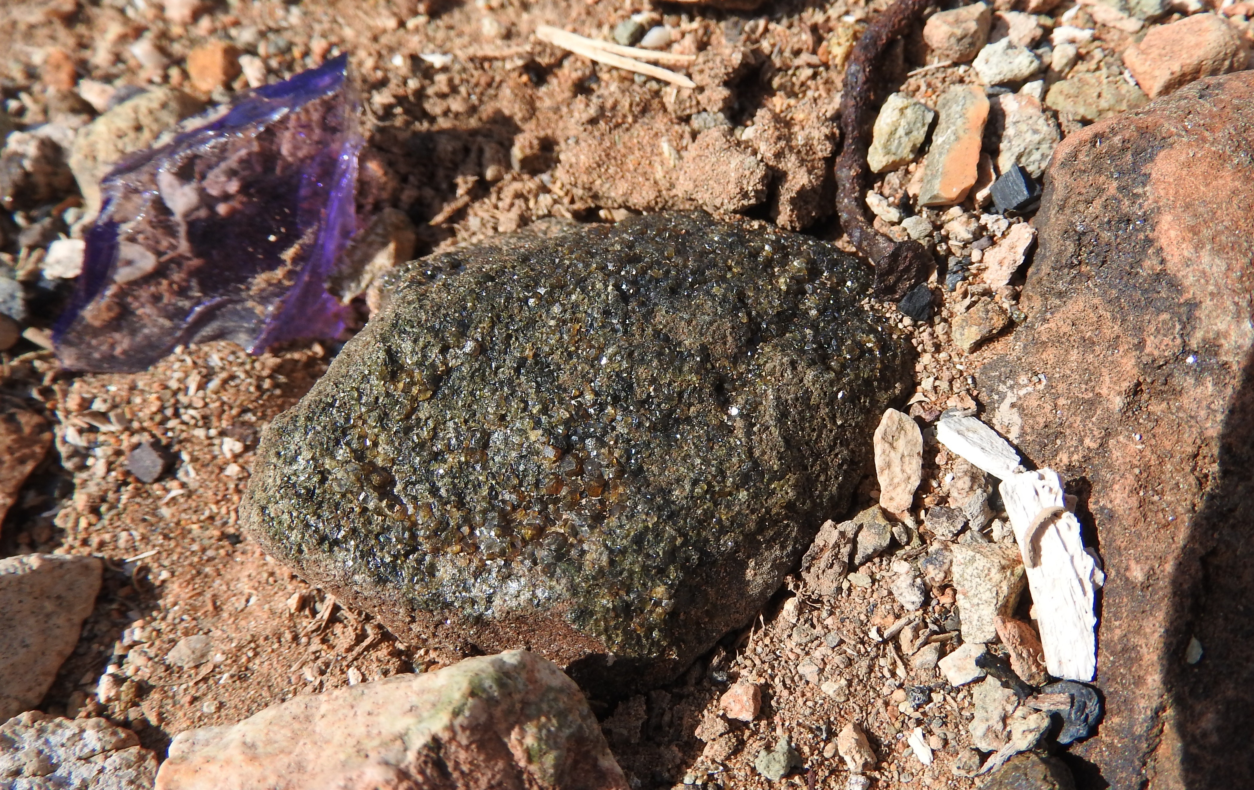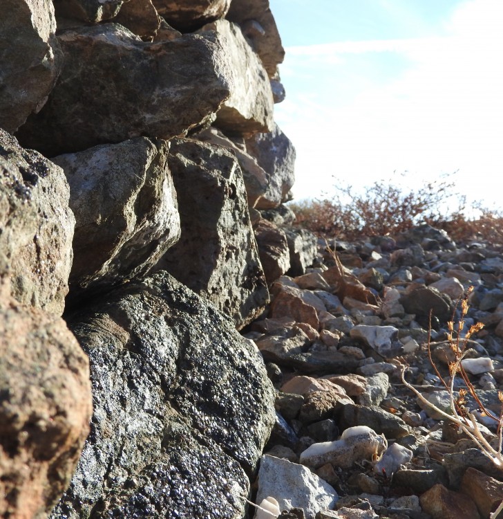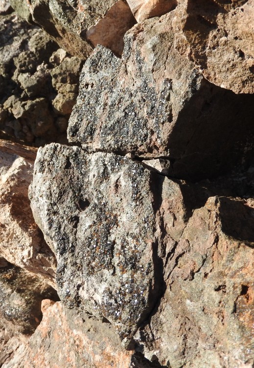 Et puis perdue au milieu de nulle part,  une ruine construite à même un autre affleurement, à l'aide de blocs ....pleins de grenats, :surpris::tease: