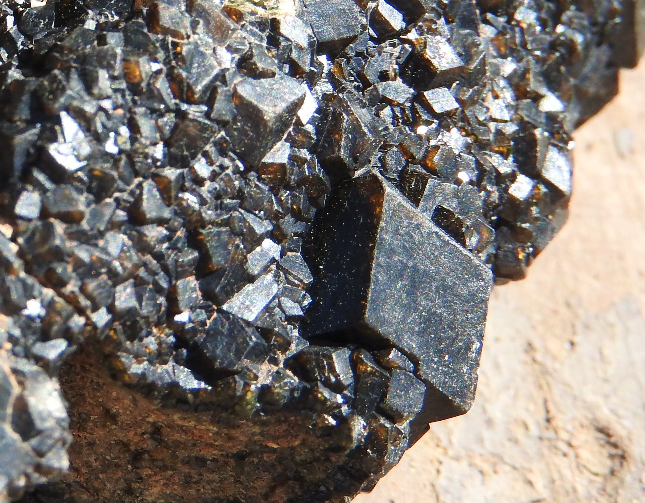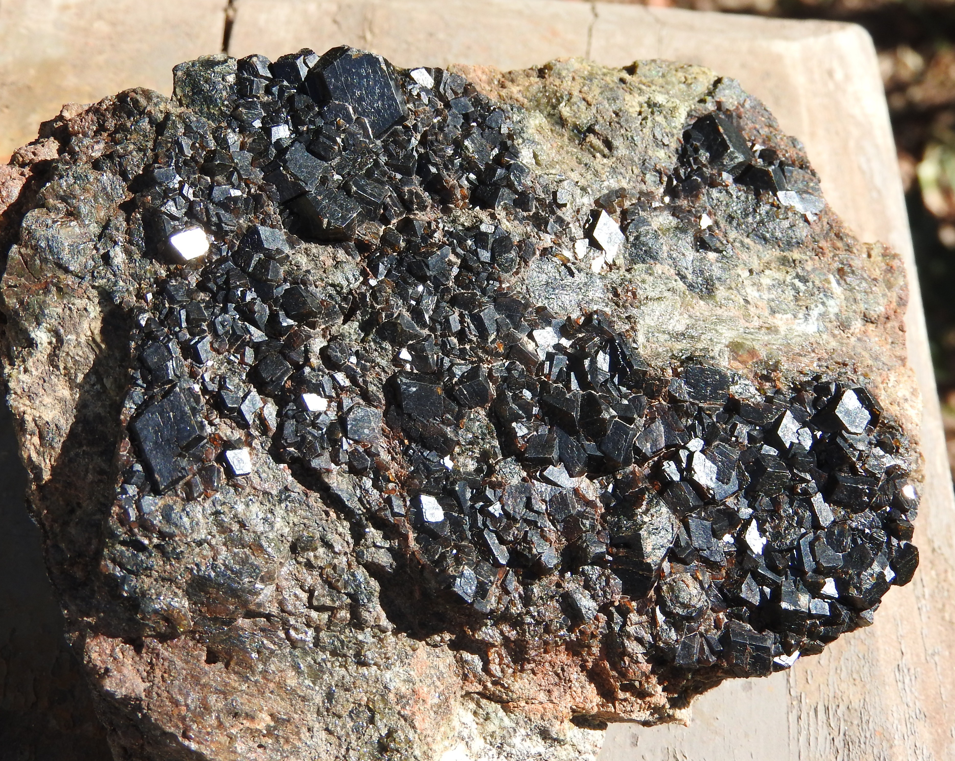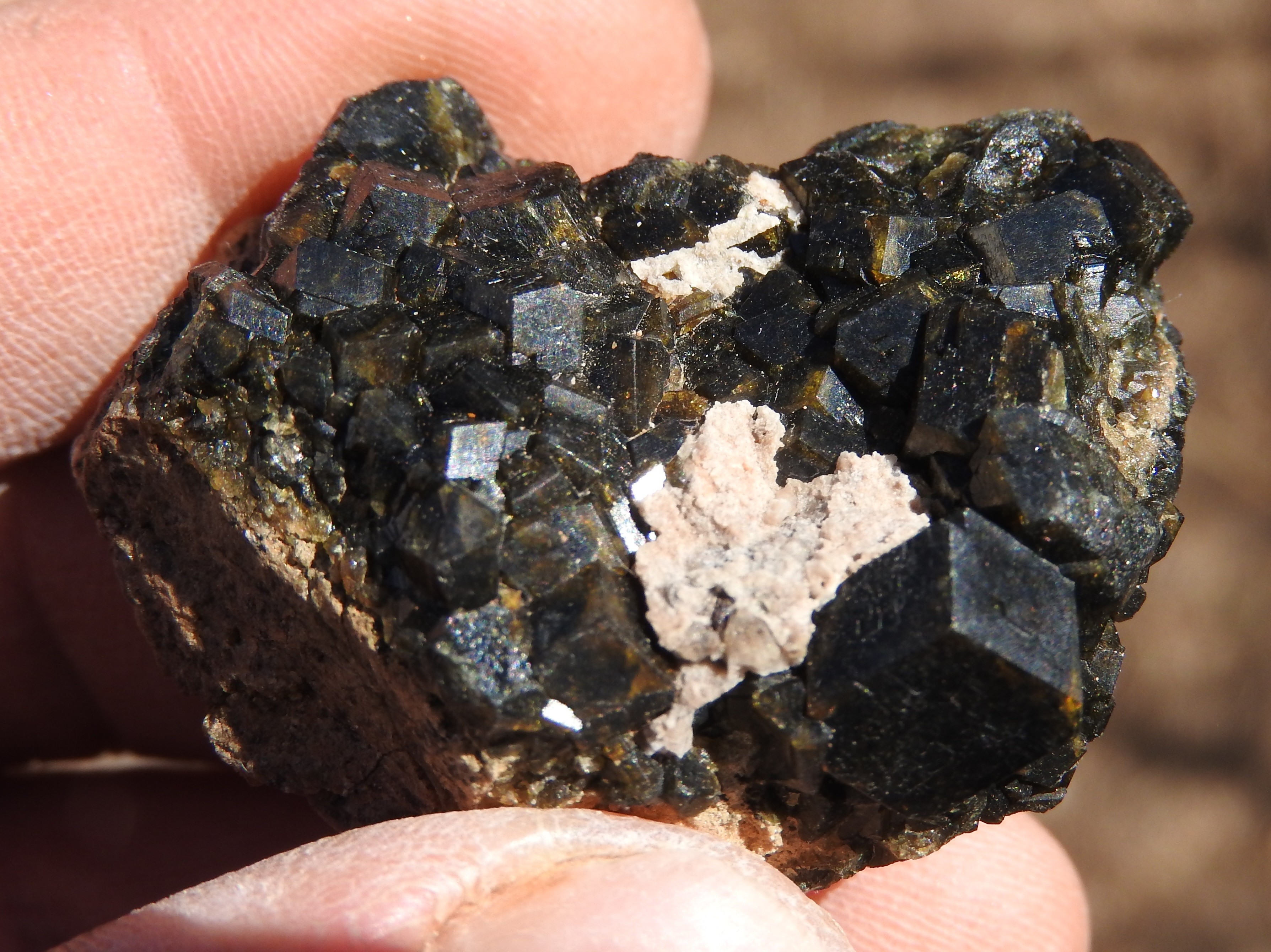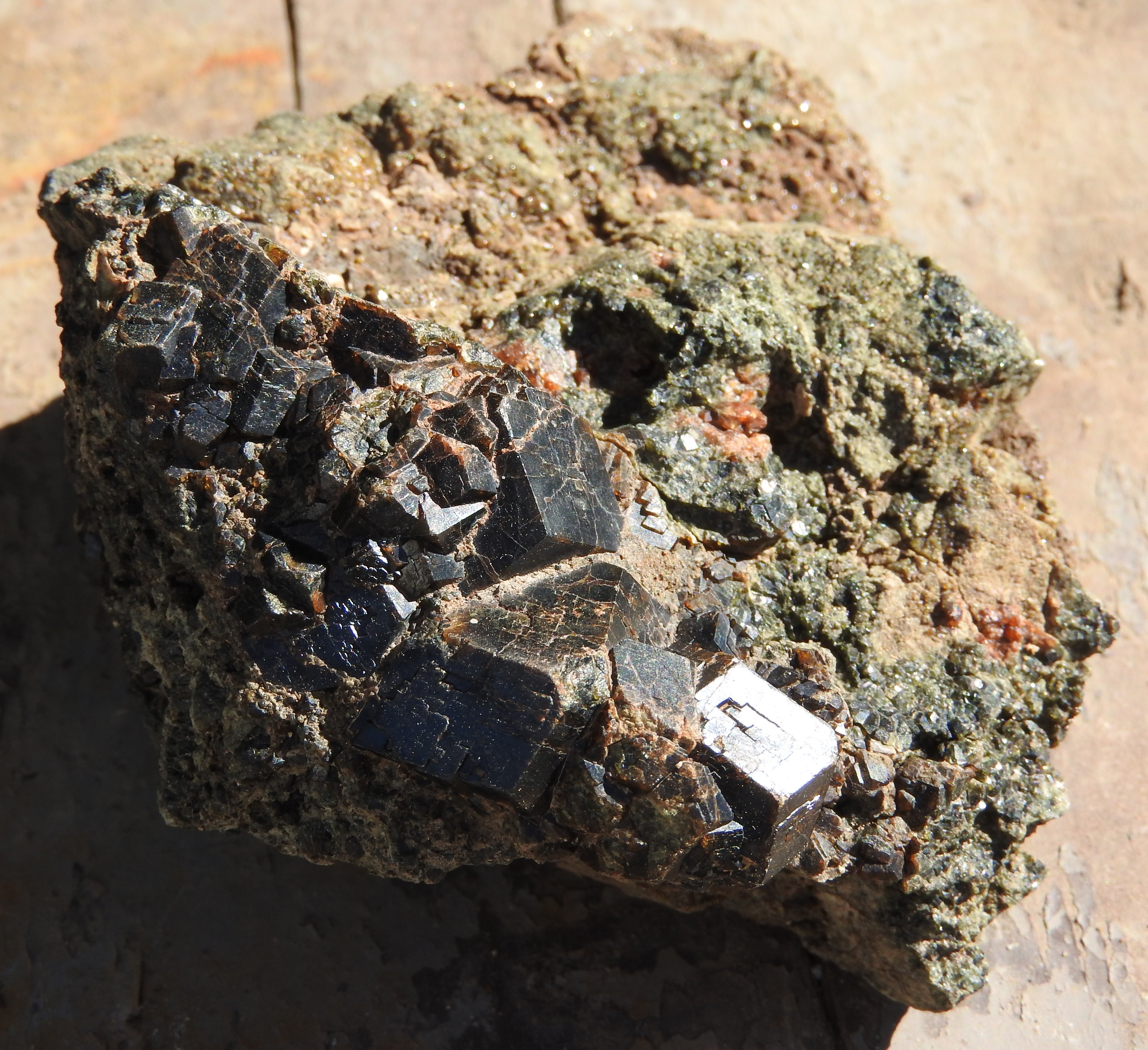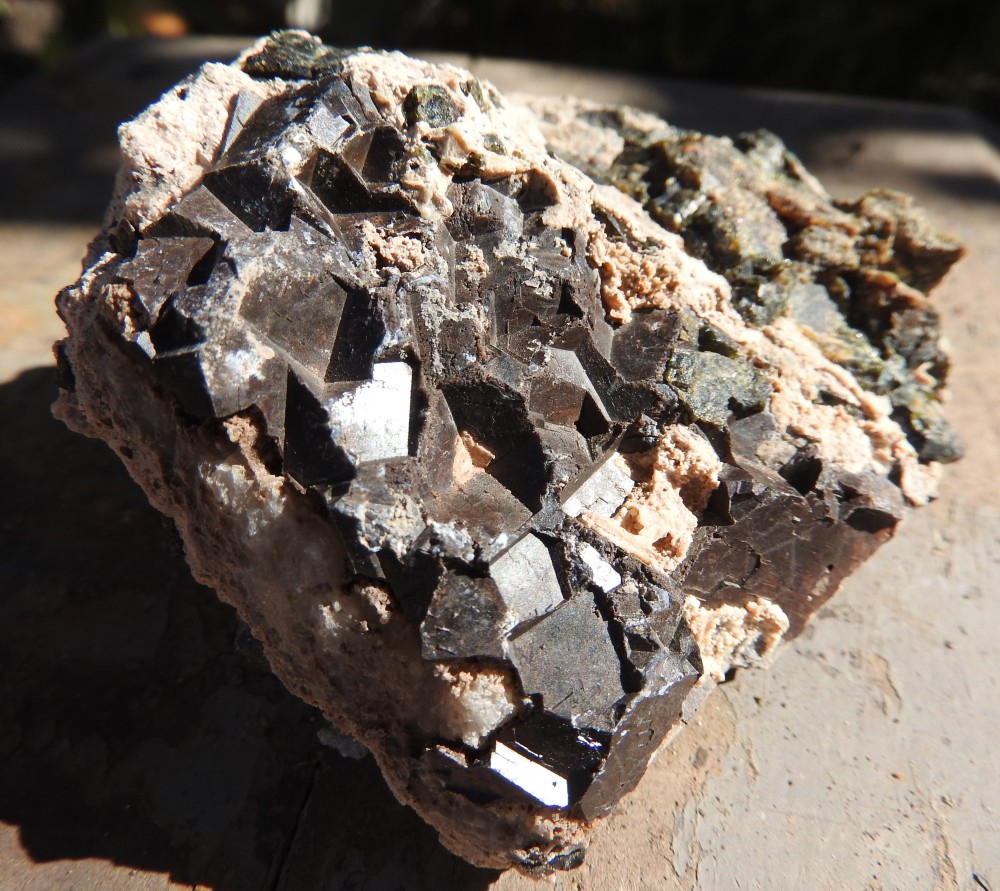 1- une piece de 11 x 9 cm, la seule trouvée ainsi, avec des cristaux bien séparés, arête du + gros 0.7 cm