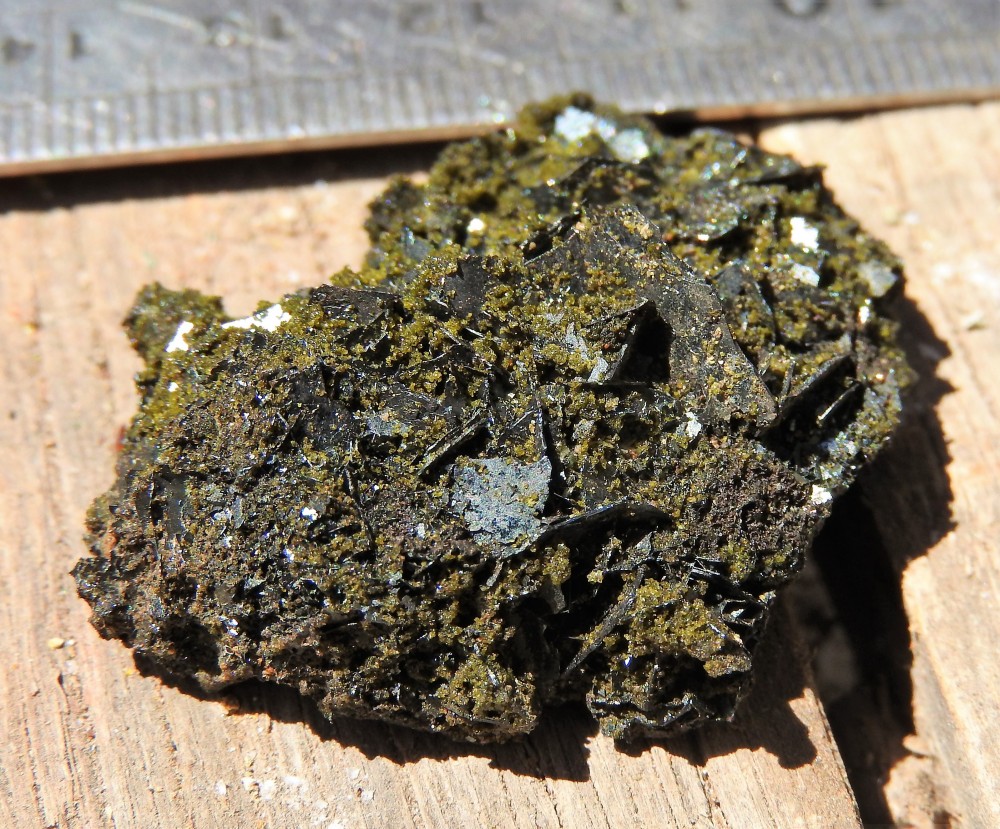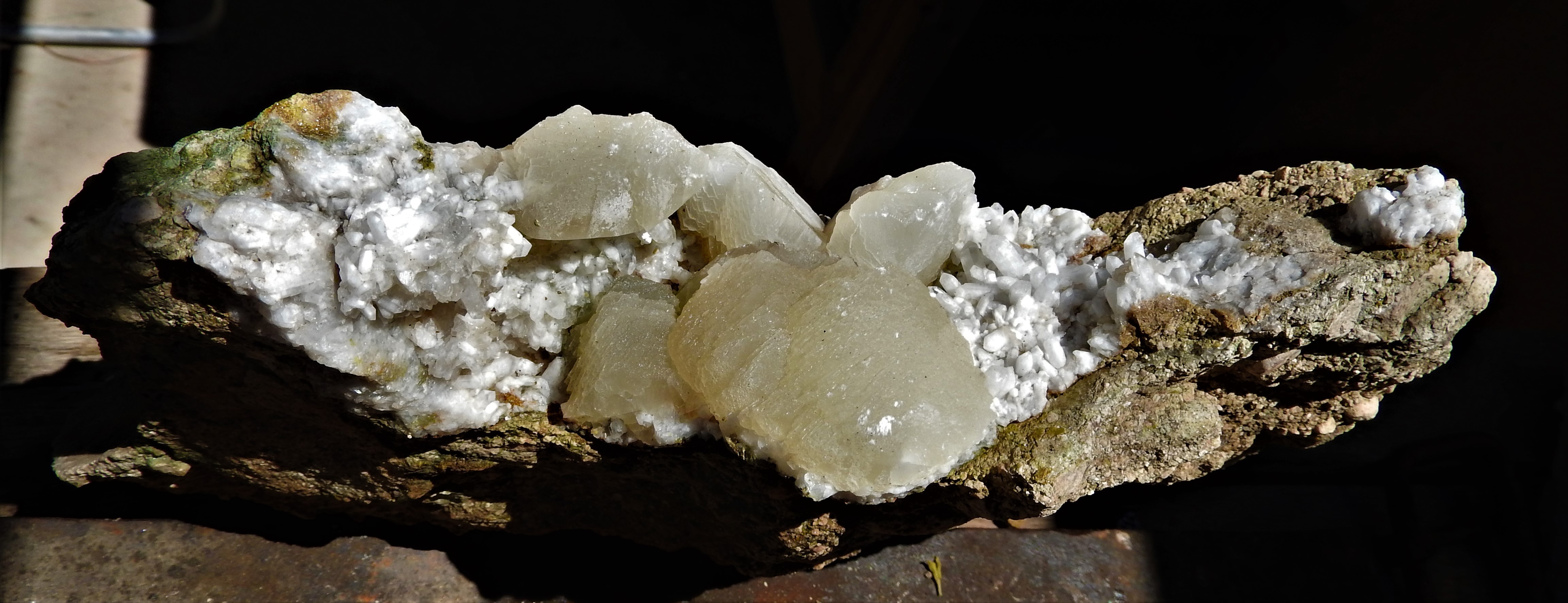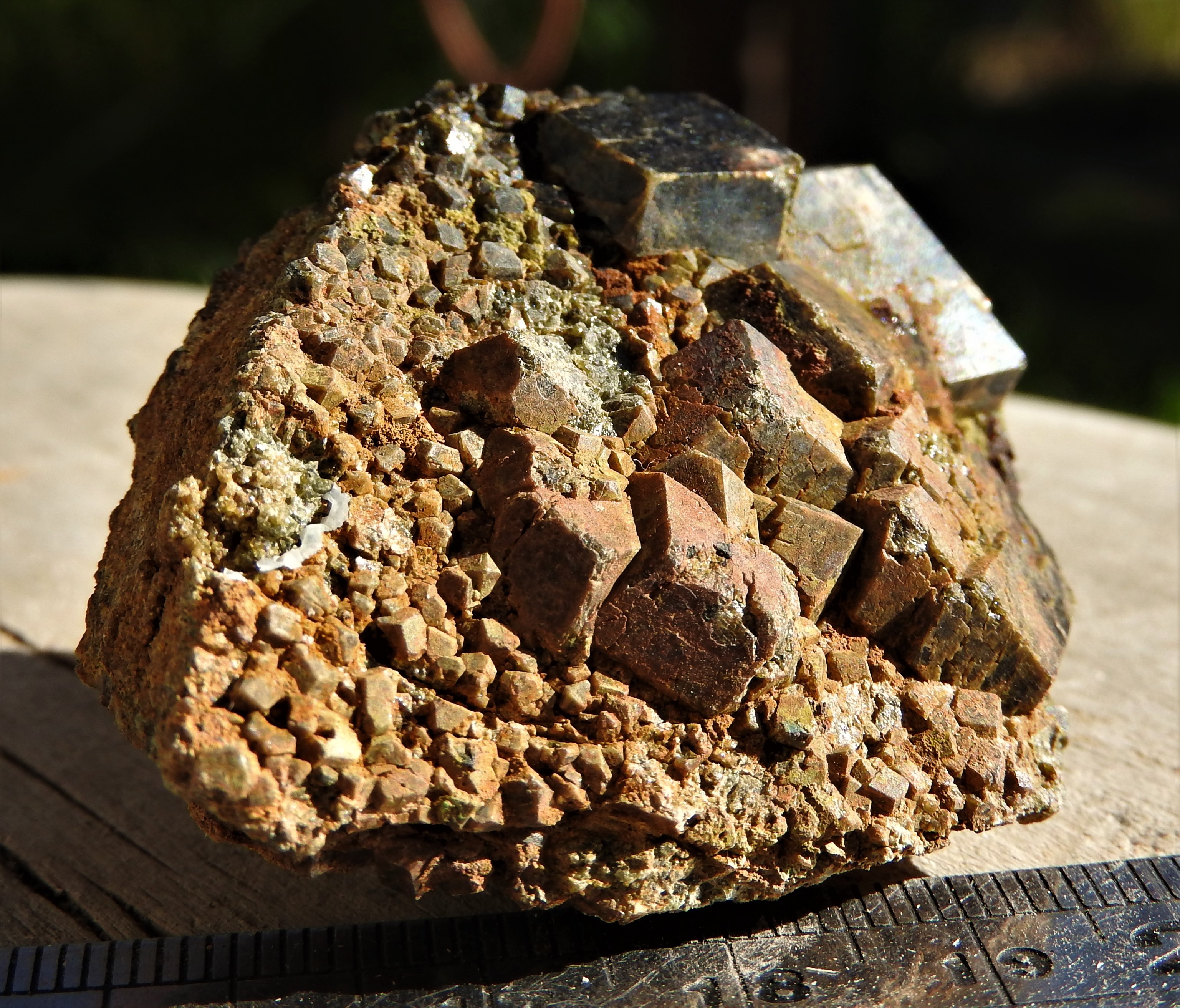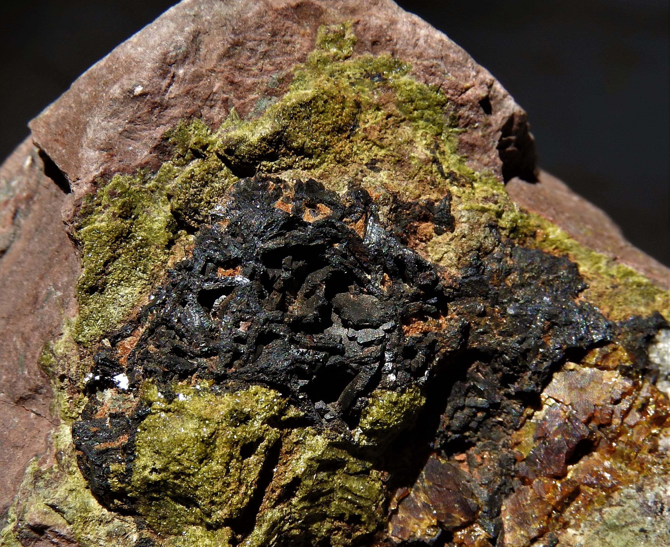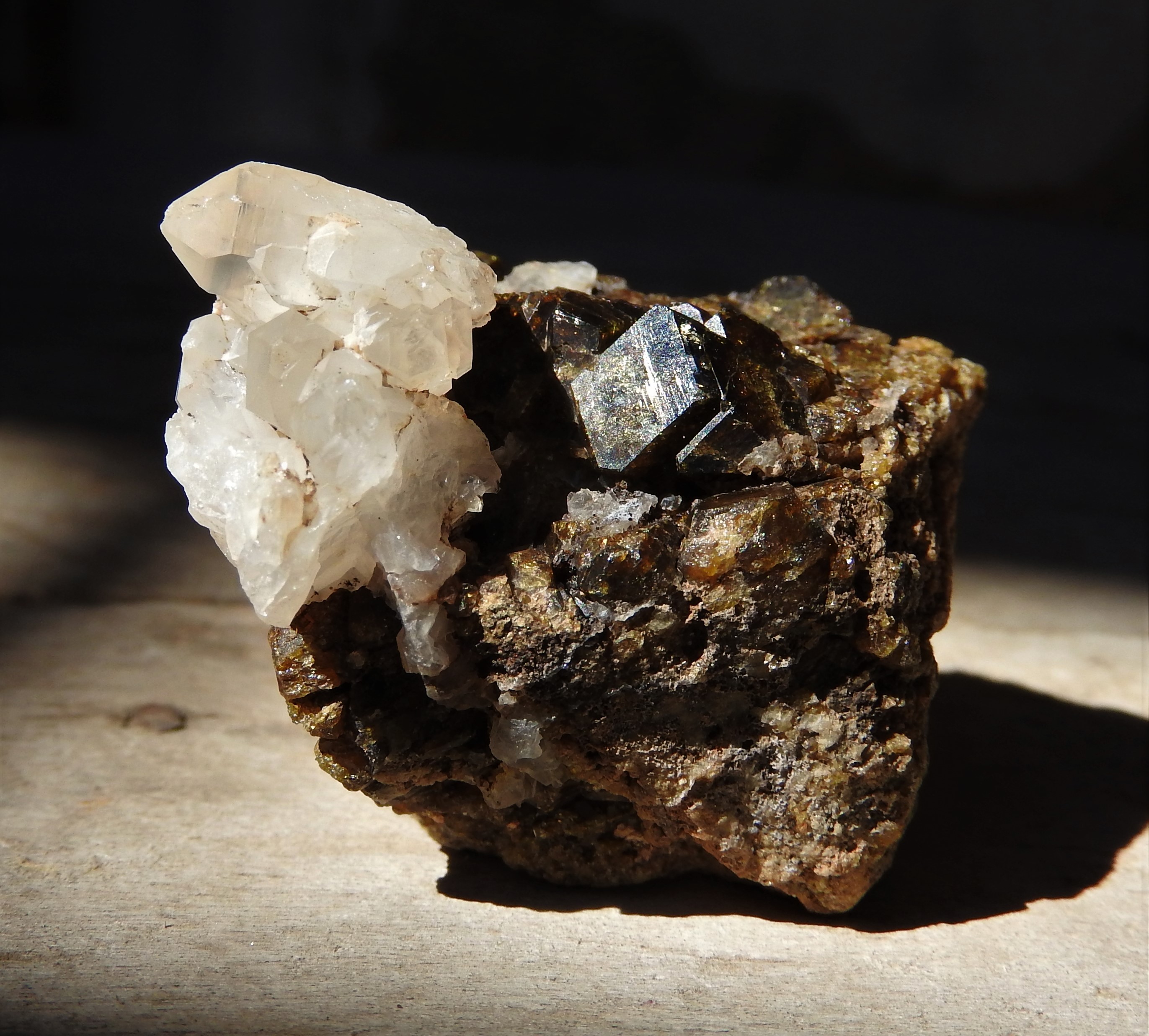 une autre suprise, une association , je tente , épidote, grenat et feuilles d'hématite ou sidérite?  en tout cas ,ça apporte de l'eau a mon moulin sur mes  interrogations d'hier, j'ai vraiment l'impression que c'est la meme chose, mais en "neuf", :rigoler: