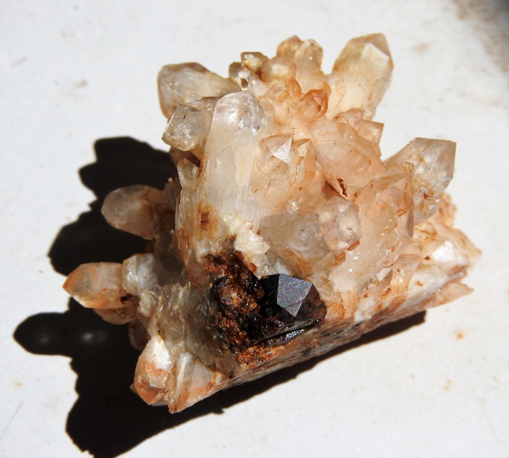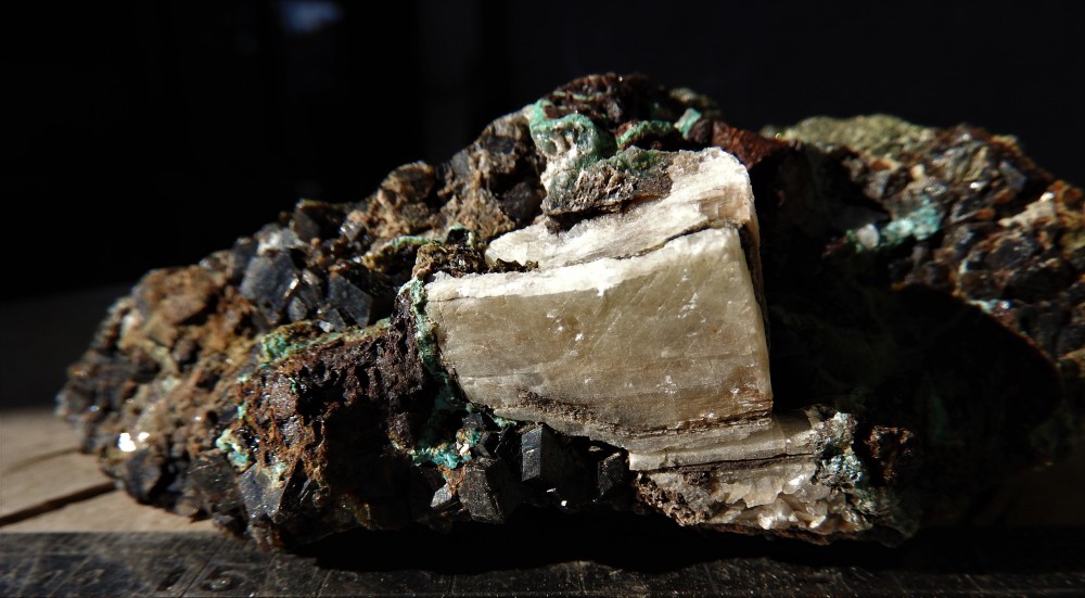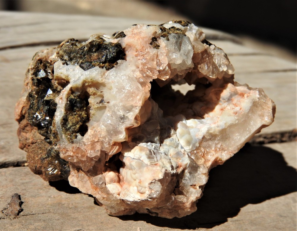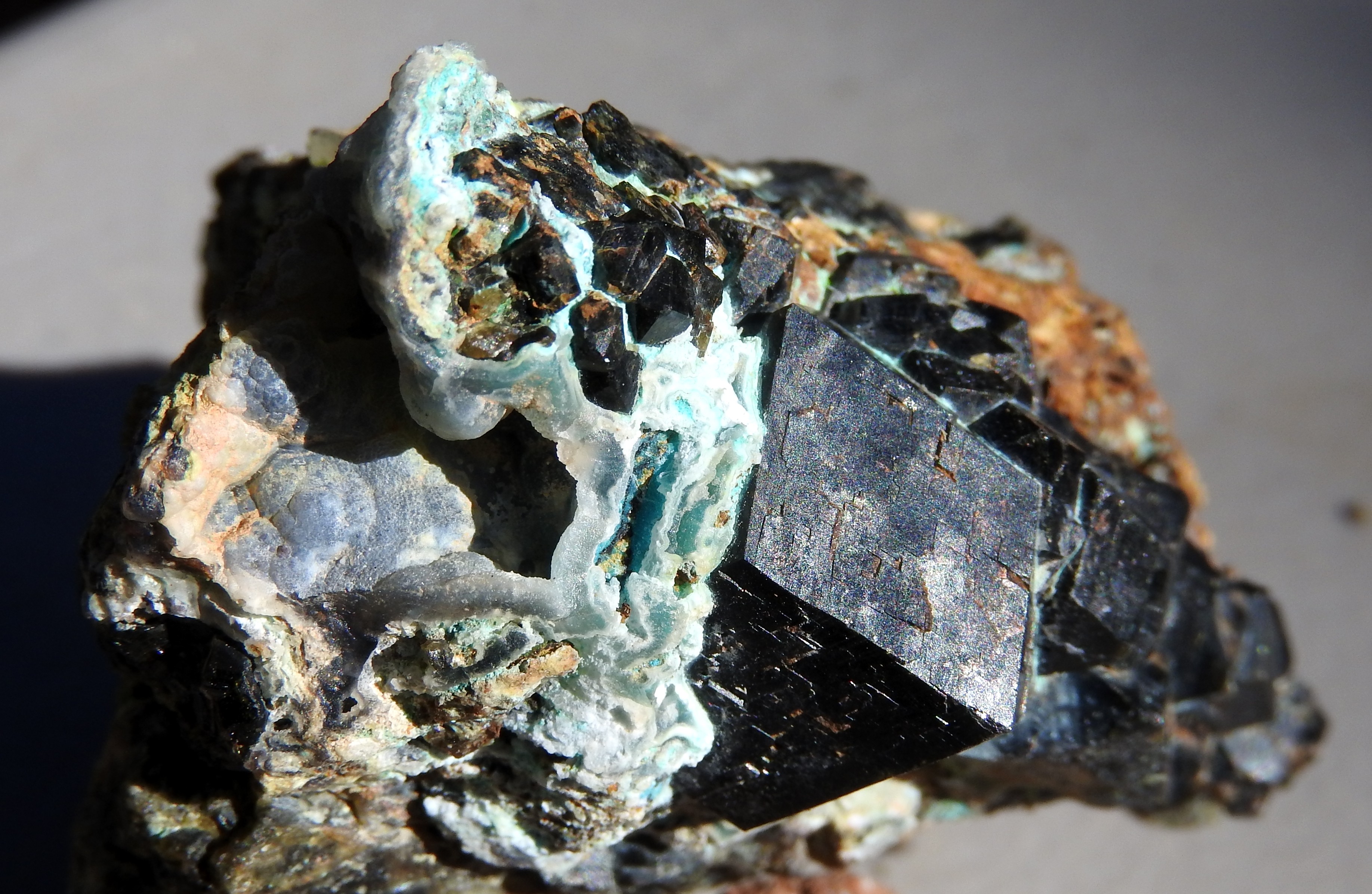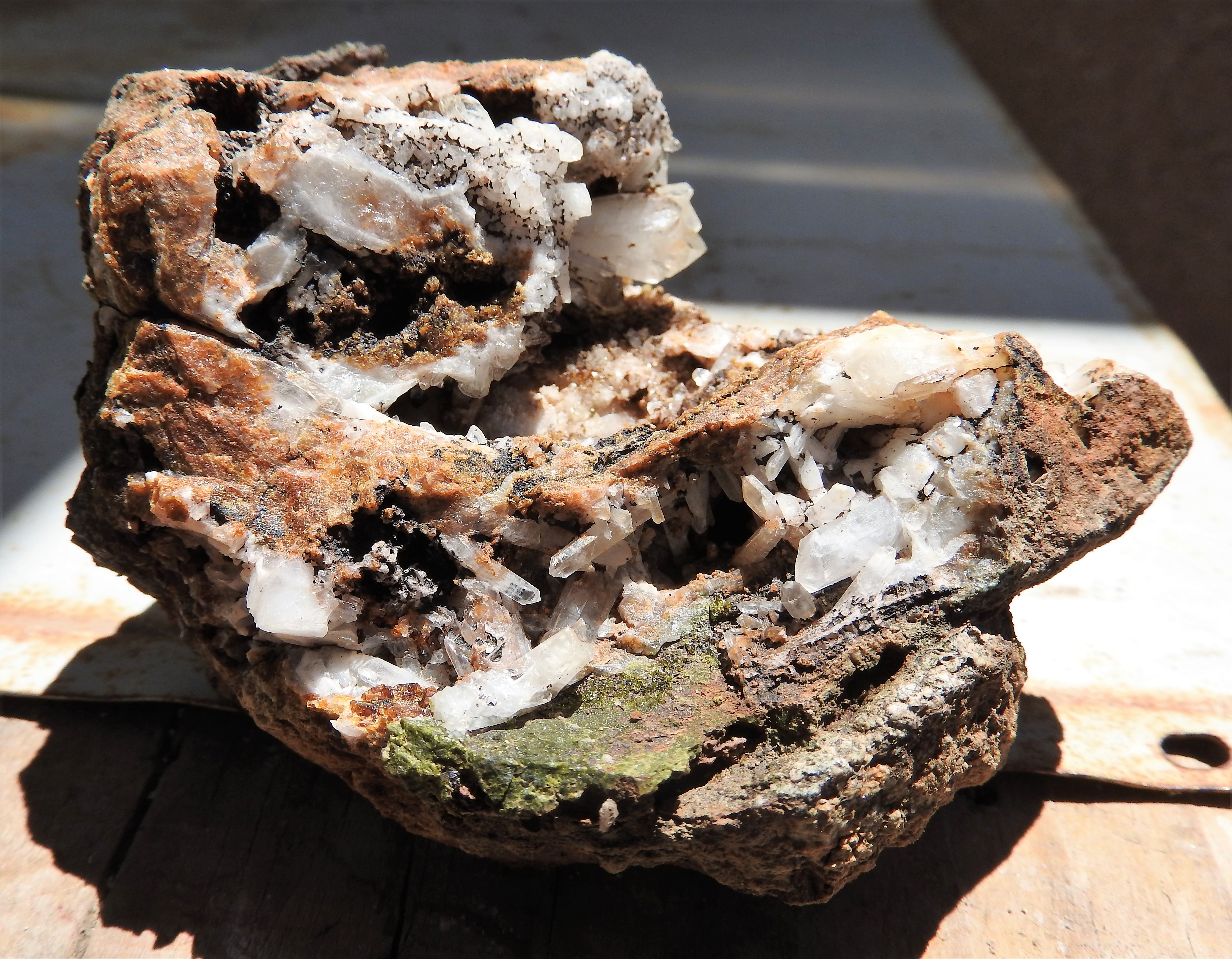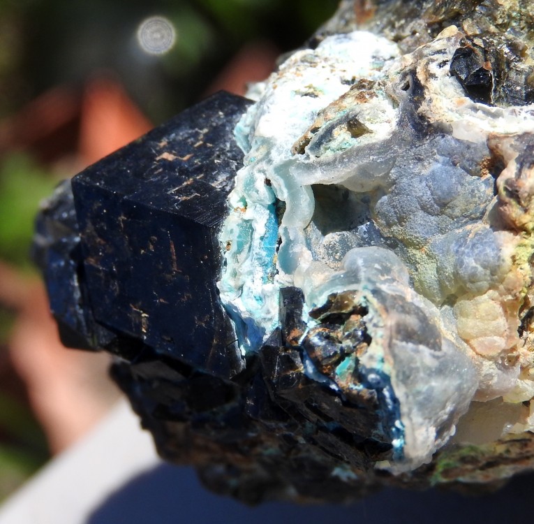 une autre suprise, une association , je tente , épidote, grenat et feuilles d'hématite ou sidérite?  en tout cas ,ça apporte de l'eau a mon moulin sur mes  interrogations d'hier, j'ai vraiment l'impression que c'est la meme chose, mais en "neuf", :rigoler: