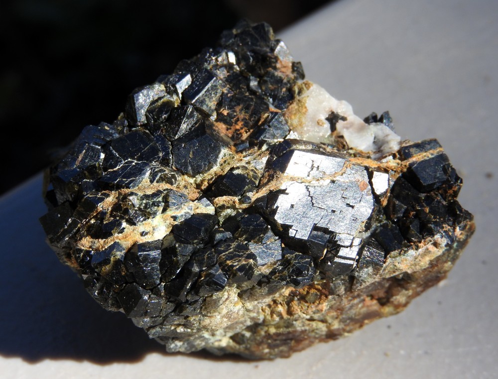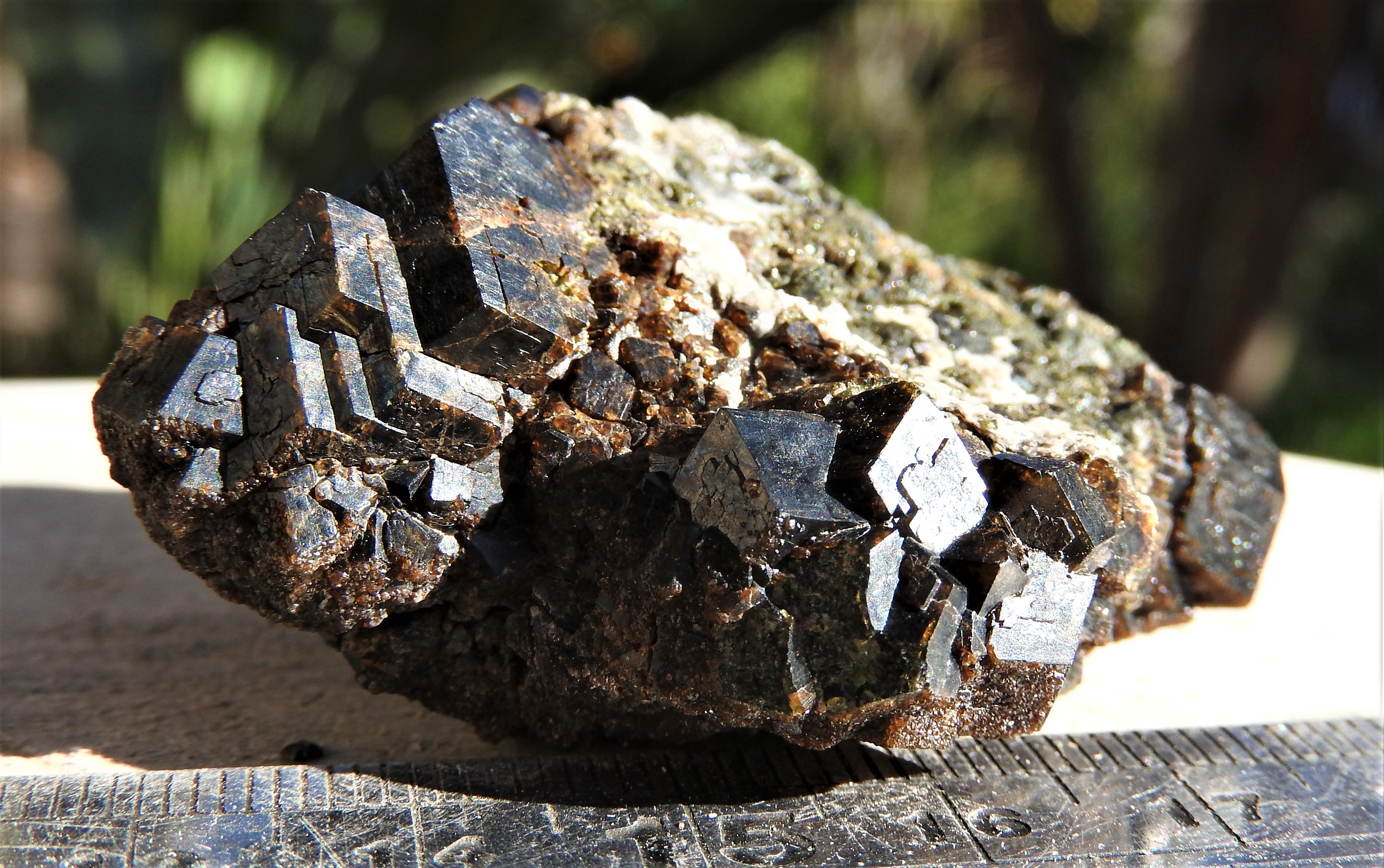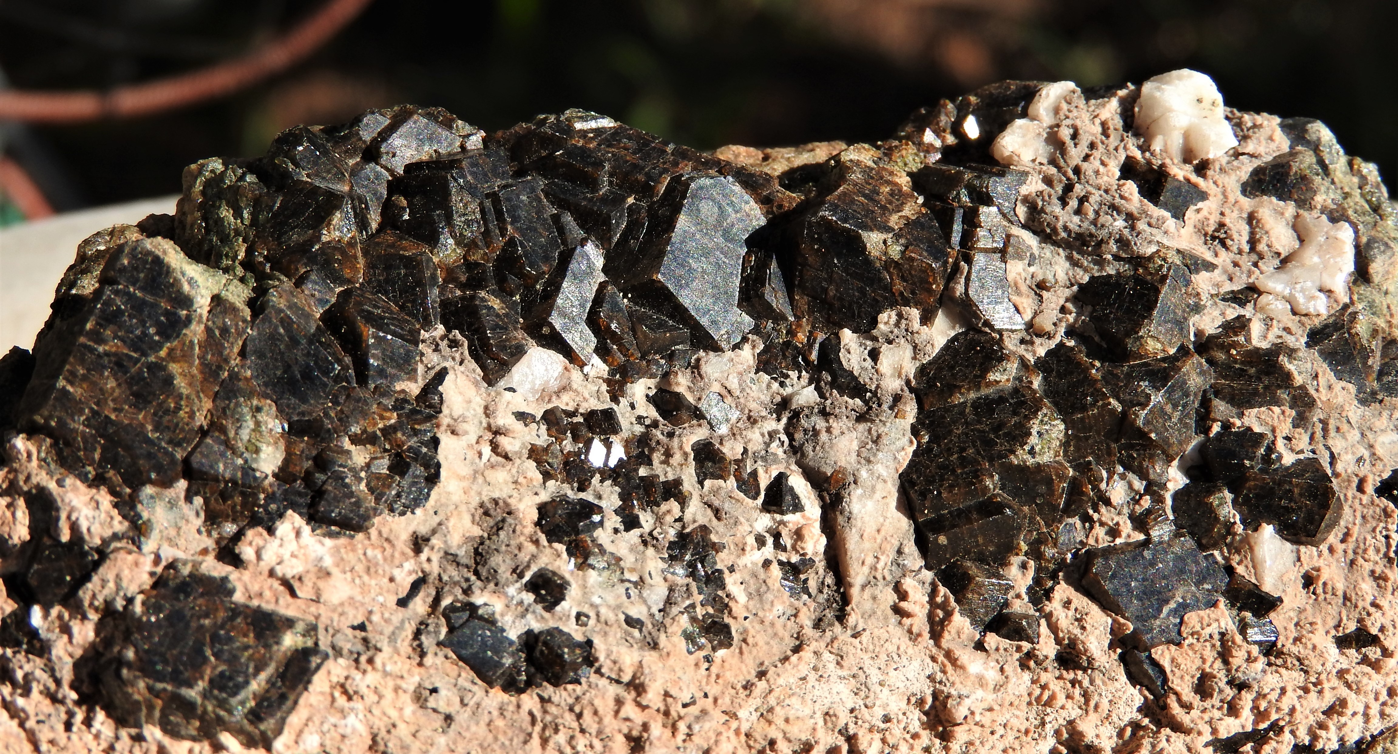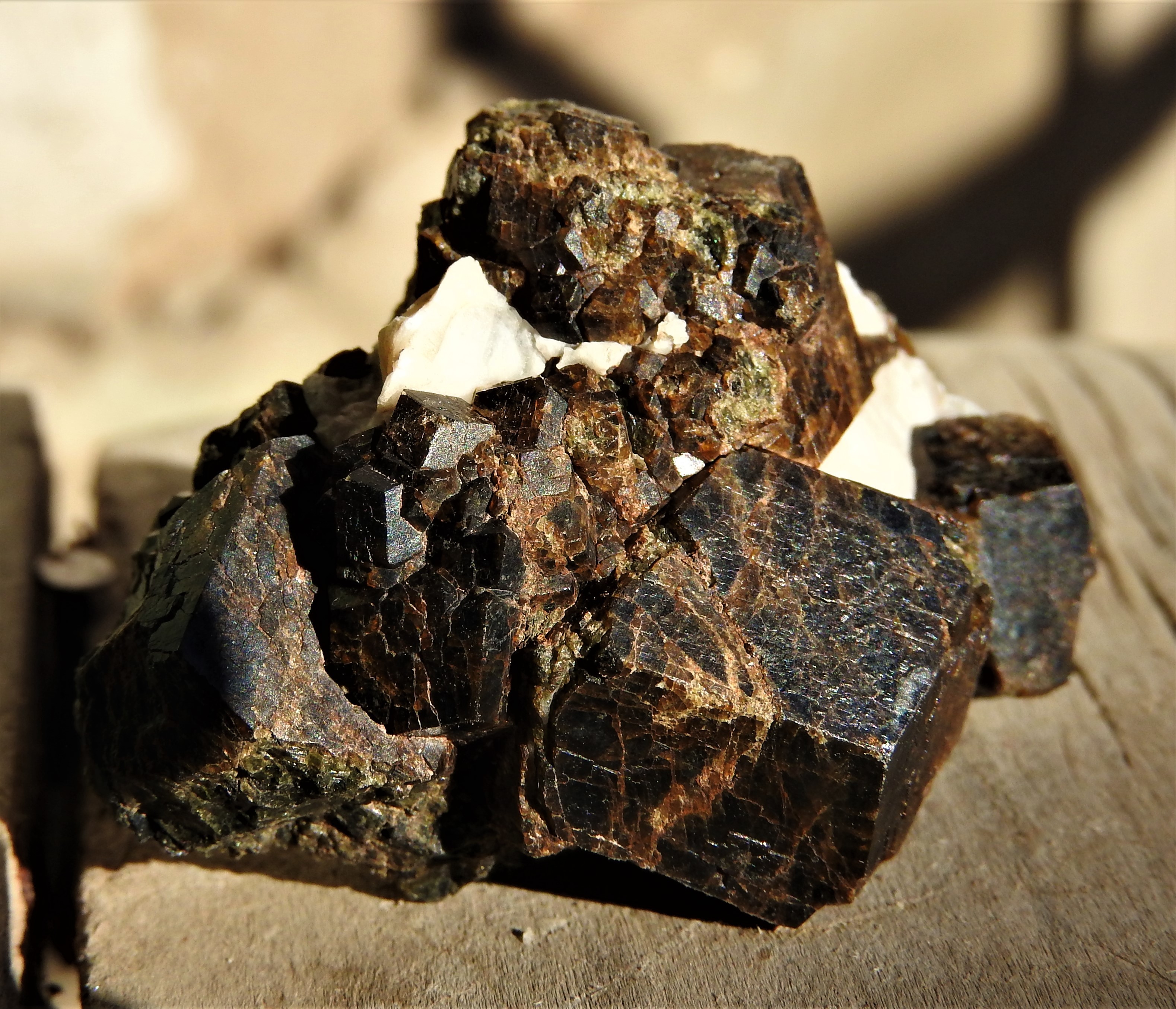 Sur ces photos : accompagnant le grenat et l'épidote, ne serait-ce pas du côté du diopside qu'il faille chercher pour les cristaux aplatis verts-noirs en haut de l'image ?