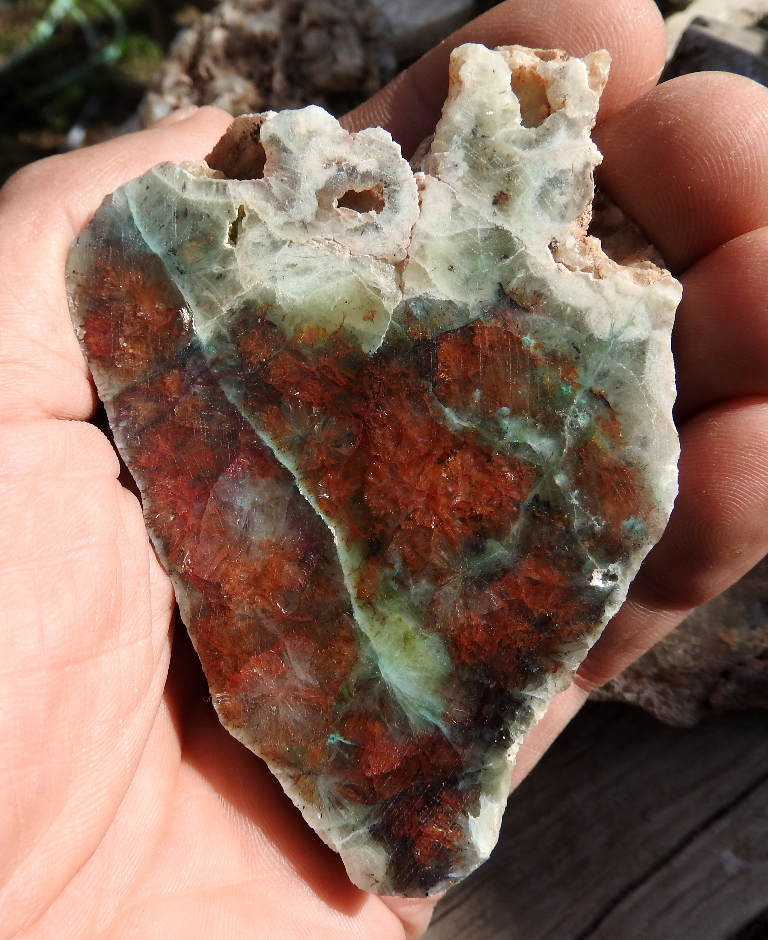 5-  grenats ,calcédoine , chrysocolle,    7 x 3.5 x 5 cm   arête 1.3 cm