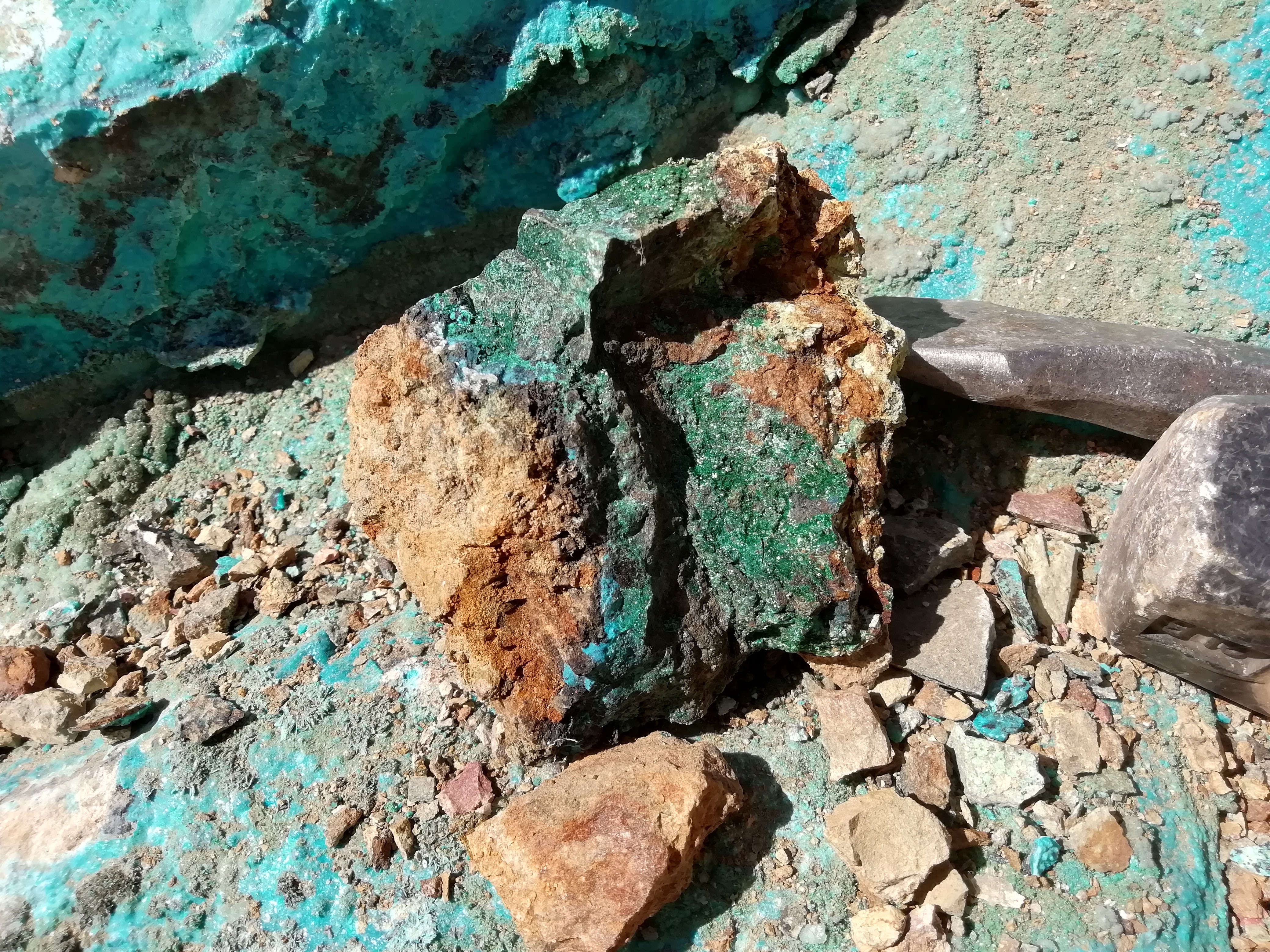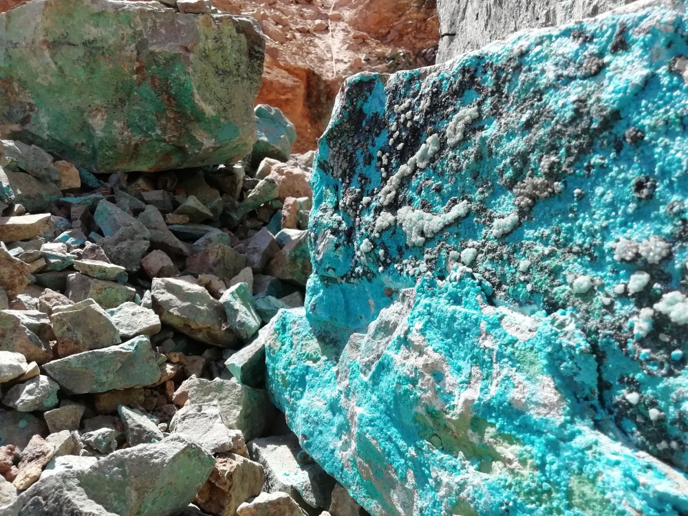 @Yvan35, je demande toujours l'autorisation au proprietaire, et jusqu'a present je n'ai pas essuye de refus, on discute un moment, parfois je reste, barbecue au programe, Bon, aussi il y a des mineurs bourrus et surtout mefiants, des fois que le gringo viendrait prospecter pour une grosse boite mais une fois qu'il savent que ce qui m'interesse et pour eux sans valeur, il n'y a generalmente pas de probleme. Evidement les mines plus importantes, pour des question de securite, casque, chaussures, paperasse.. . C'est souvent un refus d'emble. Les temps changent et de plus en plus de mineurs savent que les cailloux auxquels ils ne prettaient aucune attention valent aujourd'hui un billet. Je discutais avant hier avec don Esteban Torres, proprietaire de la mytique Farola et sés atacamita depuis 45 ans, la premiere des choses qu'il m'a demande est si je voulais acheter, il ne donne plus d'echantillon d'atacamite et les vend a la piece ou au kg, selon la qualite et la quantite.
