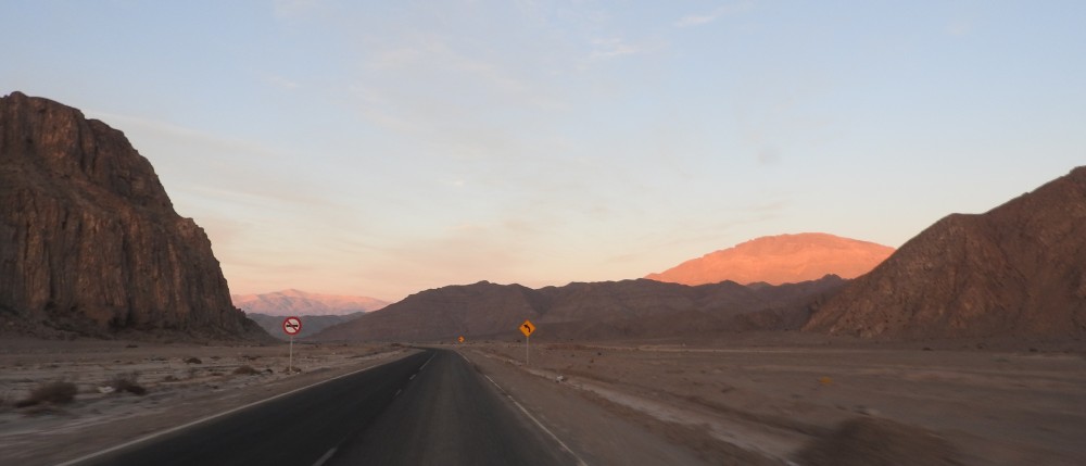salut, on retourne dans la 3eme région, on est parti un peu tard, après avoir passé  Tierra Amarilla et fait le plein, on a laissé la route qui mène à la frontière et vue l'heure , on arrivera à la nuit aux "azules"