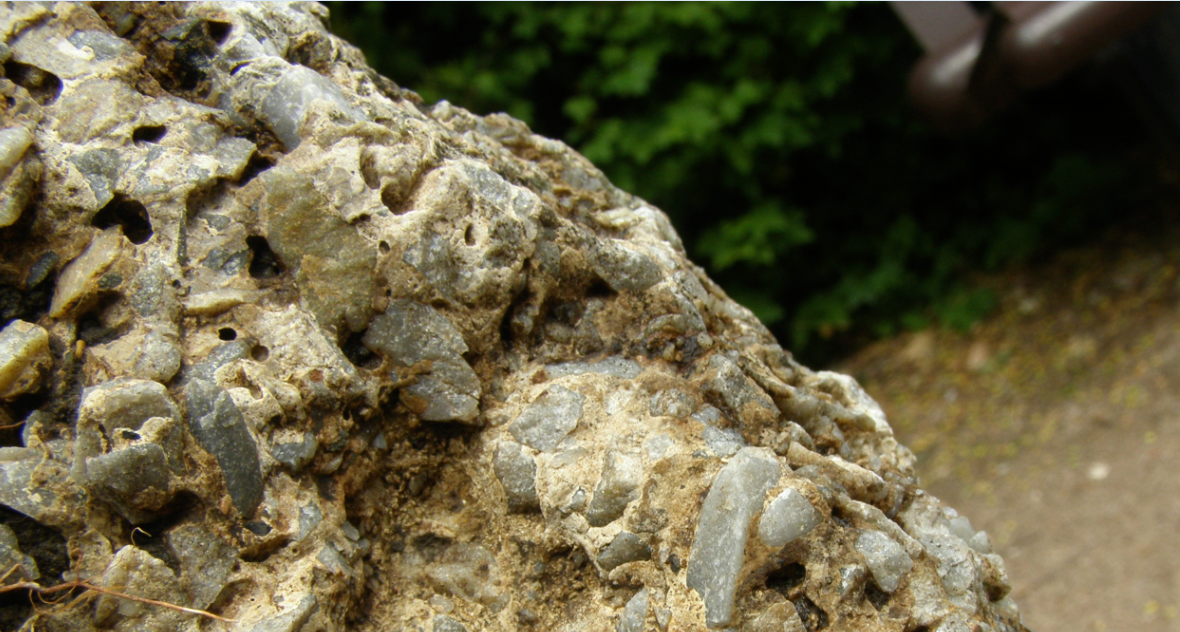 réagit au teste HCI et rien avoir avec du ciment de maçonnerie, il y as aussi du quartz incruster et même un fossile .