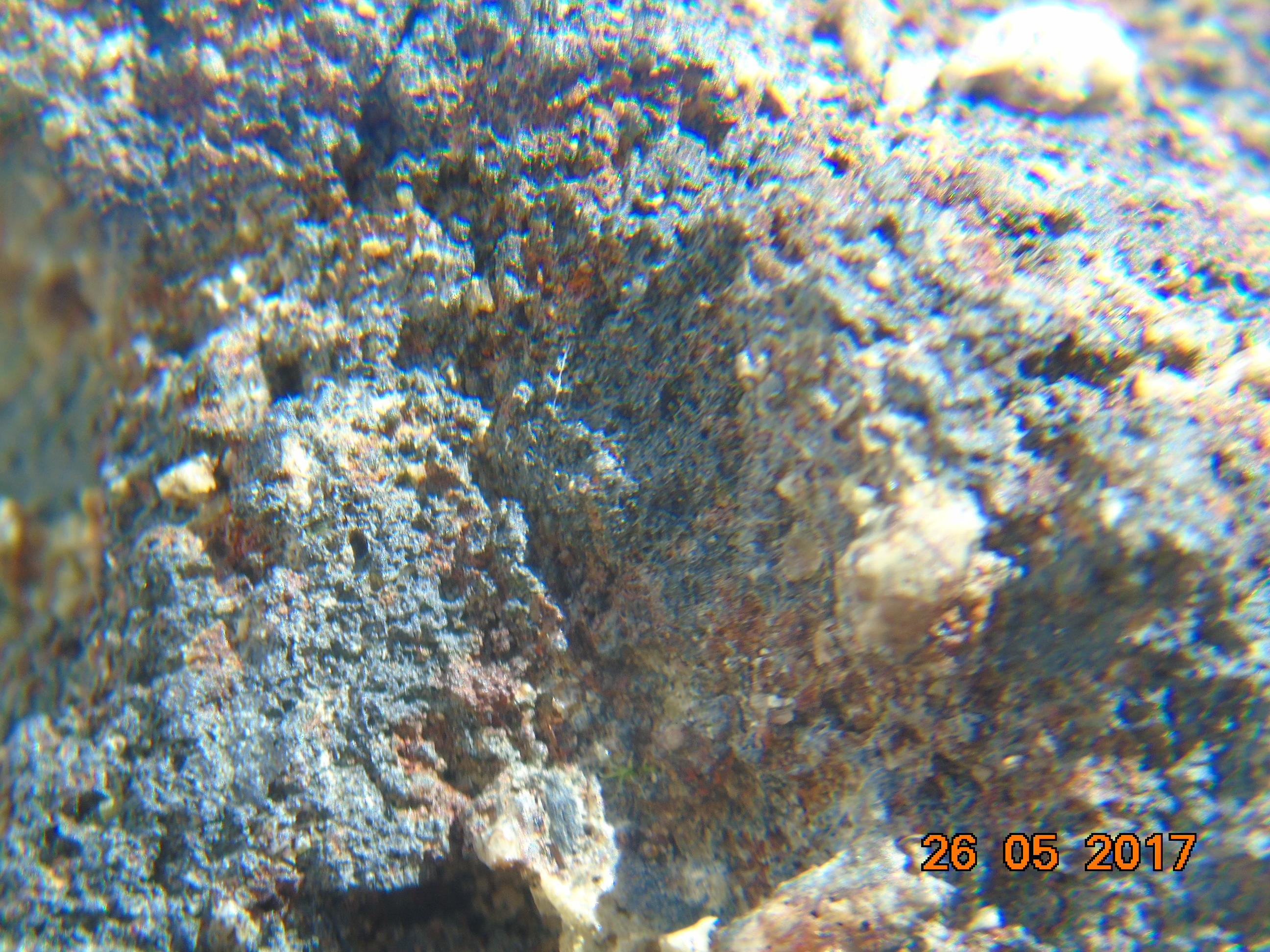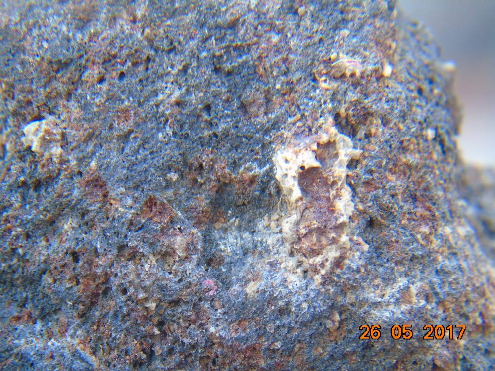 Il y a des parties qui font penser à des oxydes de fer, d’autres à des grains de sable mais ce n’est peut-être qu’un peu de terre... Est-ce superficiel ?