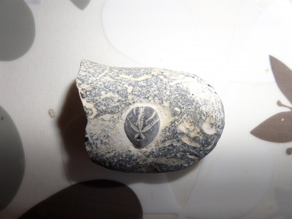 18+19 : oursin avec coquille je crois, ce qui est apparemment rare, dont on voit les traces de l'oursin en dessous...