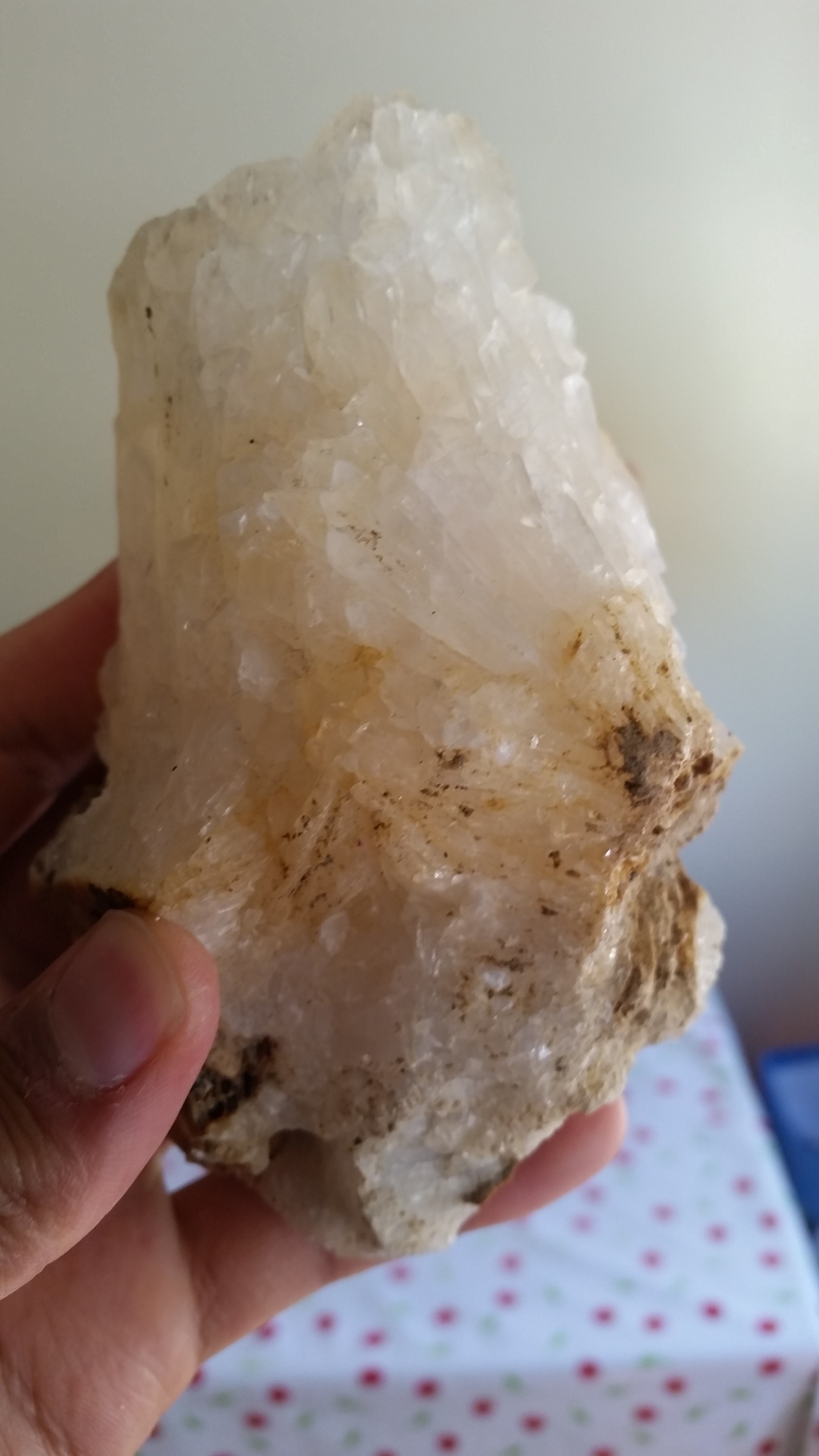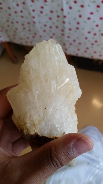 Sans grande certitude je dirais également calcite, sinon le quartz laiteux peut avoir cet aspect aussi.