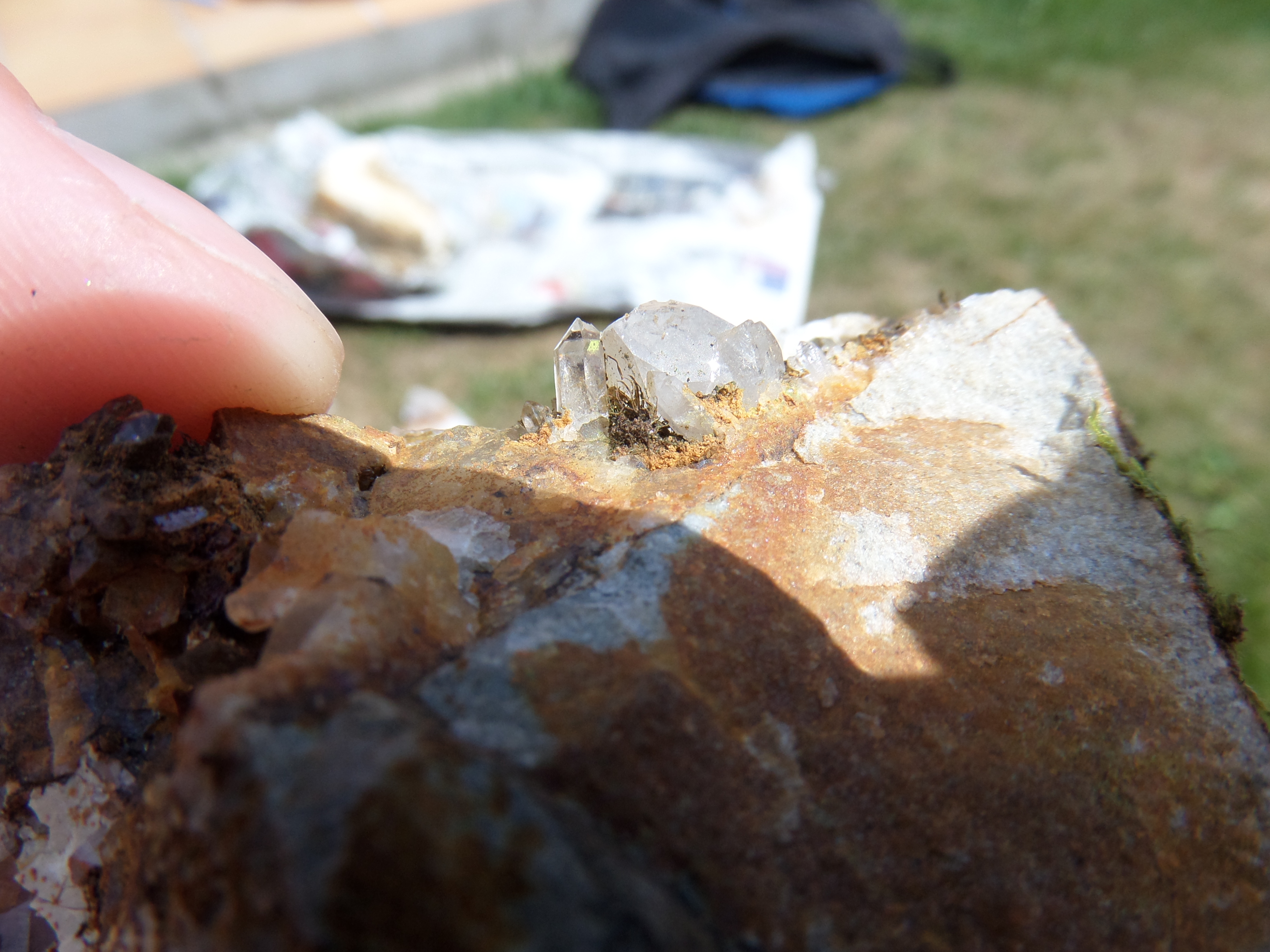 Ensuite (mais après un très bon rinçage pour éviter toute réaction bizarre entre produits différents) les pièces avec des dépôts ou encroûtements les passer au vinaigre le quartz ne craint rien (pas essayer sur la calcite) et vous verrez si ce sont rien que des encroûtements ou s'il y a aussi une coloration dans la masse.