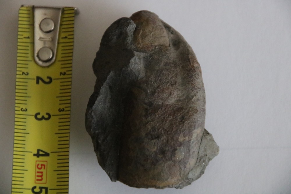 ou un gravier intra-formationel (déjà lithifié) encore appelé intraclaste car du même contexte sédimentaire. Si c'est ferrugineux c'est qu'il y a eu épigénisation du contenu en raison d'une émersion ou d'une exposition suffisante à du fer en solutionnen milieu aquatique.