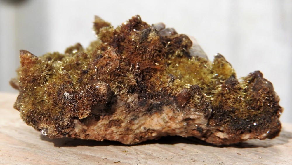 "quartz ,epidote et un cristal inconnu brun, choc  in situ "