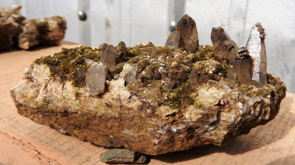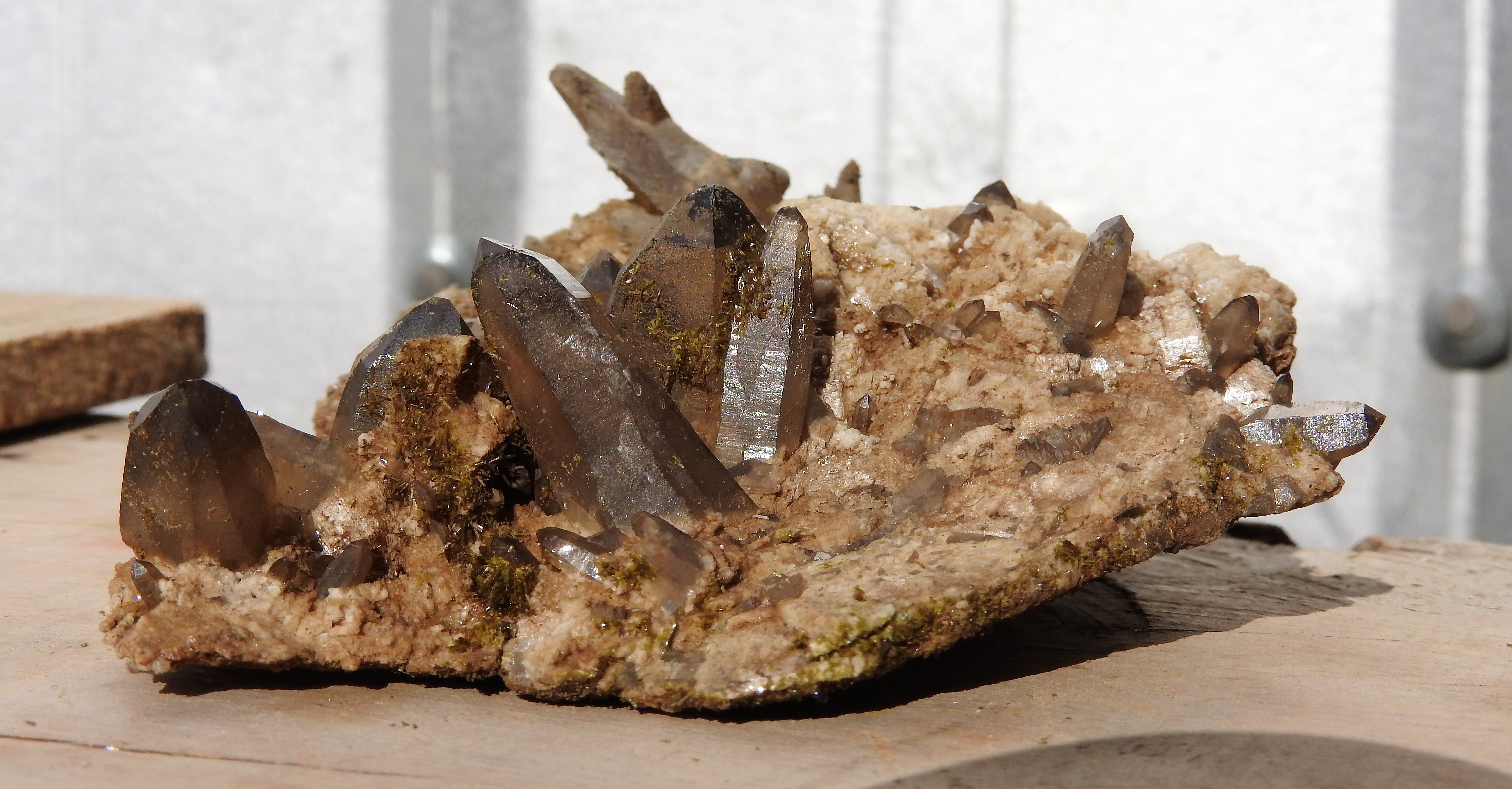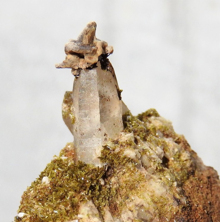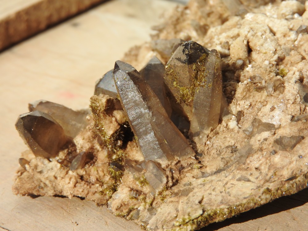 la première poche est à mon avis la plus jolie, petite mais mignonne,  quarztfumé, épidote, massif San Lorenzo, Patagonie, Chili