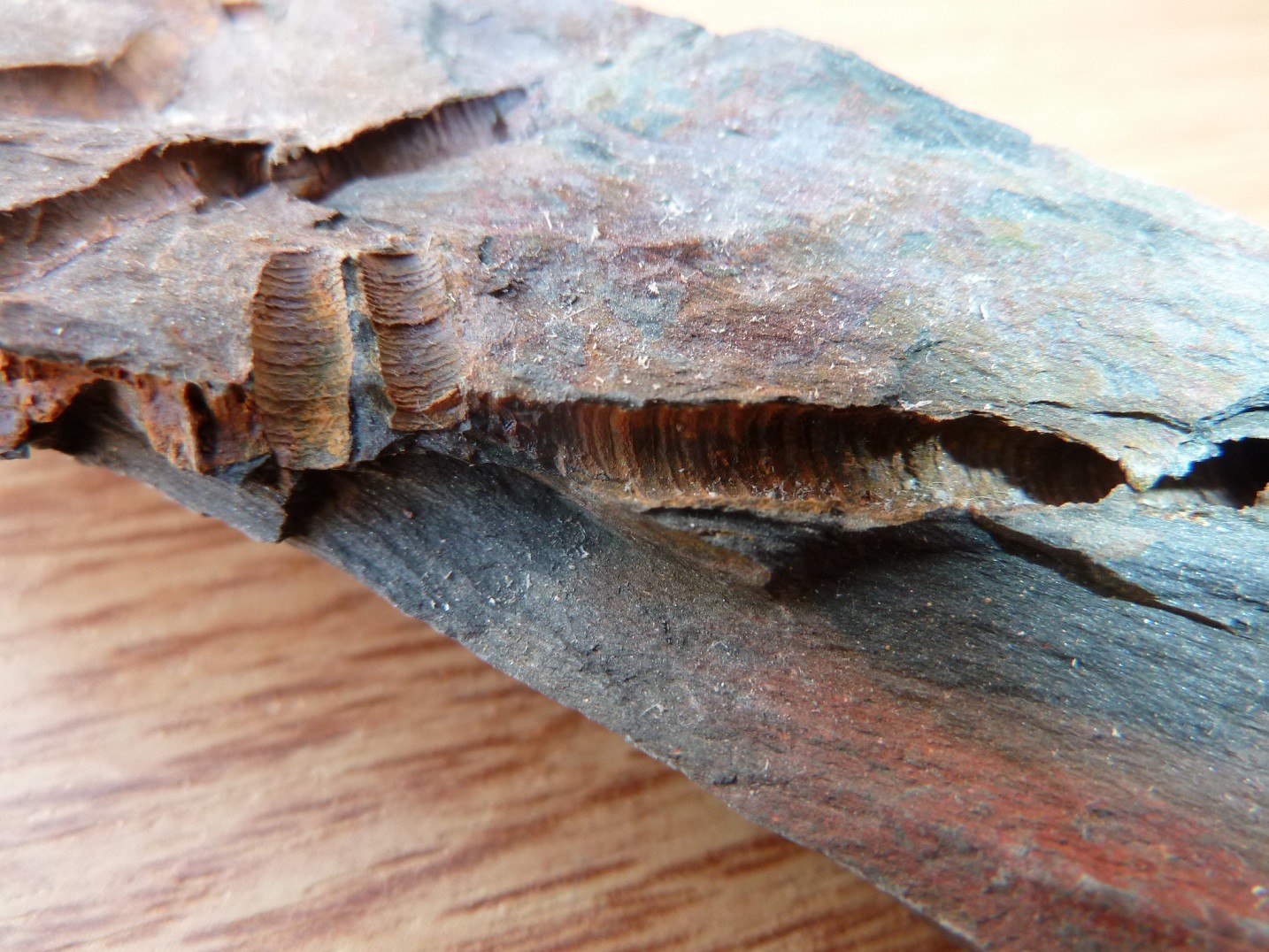 Diamètre au plus large plus de 2 mm, s'affinant régulièrement jusqu'à la pointe, épaisseur de la pointe, moins de  1 mm.
