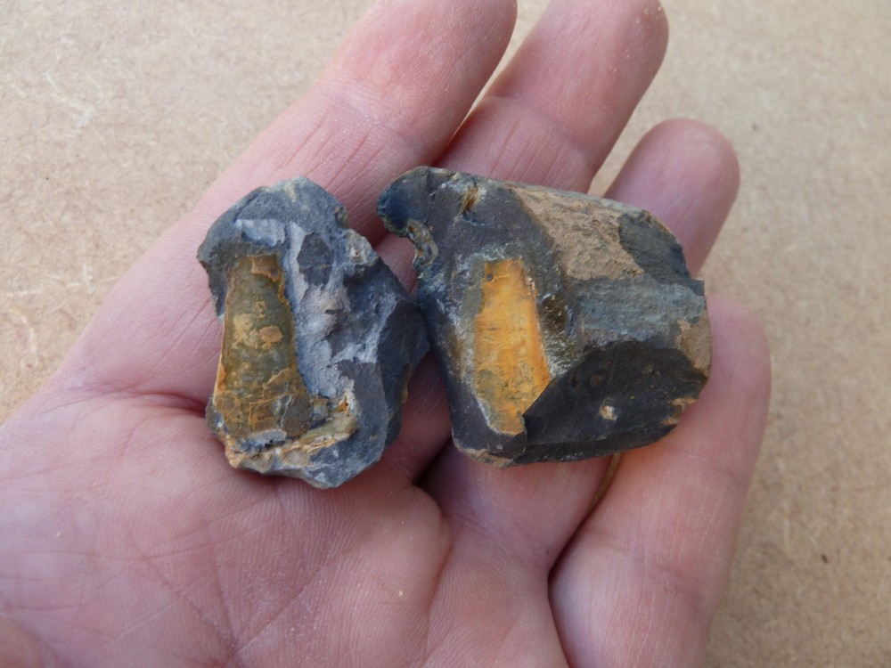 Il s'agit a priori d'une pointe génale de trilobite.(empreinte et contre empreinte)