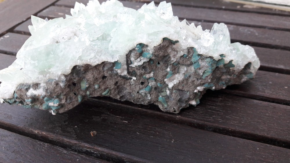 bonjour j ai achete ces 2  pierres dans une boutique de mineraux fossile et autre en espagne  et je n ai pas l identfication exact ni l origine . il n yavait qu une jeune vendeuse,le proprio n etait pas la. la seule que j ai compris aragonite bleue mais ou ? Et l autre elle croit de l inde ?... si quelqu un peux m aider . cdlt