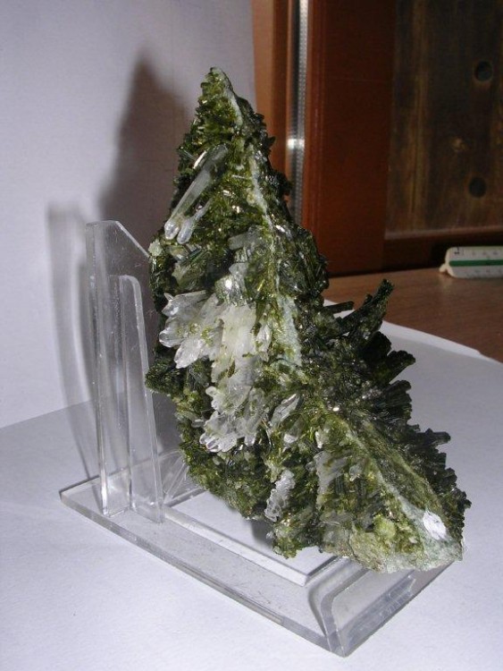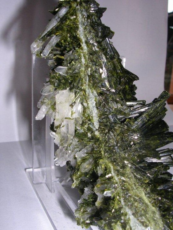 Bon en délirant un peu, imaginé des beaux cristaux verts d'Epidote embrochés sur des prismes de Quartz fumé...