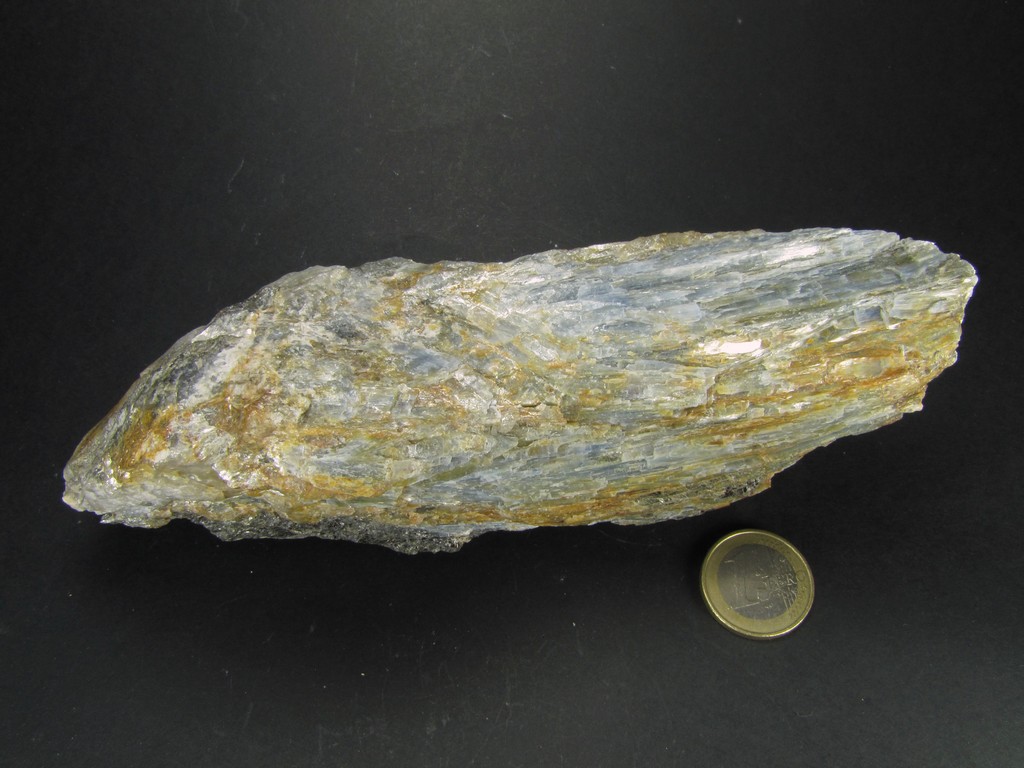 Bonjour, un bloc constitué exclusivement de disthène trouvé vers Allemont. C'est loin d'avoir la qualité des pièces de nos amis bretons, la couleur bleue est très pâle, des oxydes de fer sont venus aussi un peu altérer le tout, mais bon, ça fait des cristaux d'une longueur de 15 cm pour les plu longs et on ne voit pas souvent de photos de disthène pour les Alpes. Et puis faut bien passer le temps, aujourd'hui il fait un temps à ne pas mettre un cristallier dehors :pluie: