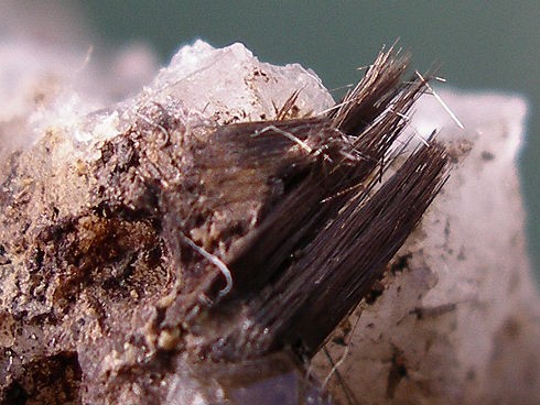 Dans le même filon, il y a plusieurs petites fentes, certaines avec chlorite et d'autres avec la glaise. Les brookite se trouvent indifféremment dans l'une ou l'autre fissure. Par contre les anatases sont essentiellement dans la chlorite. Les brookite sont malheureusement très rarement sur gangue .