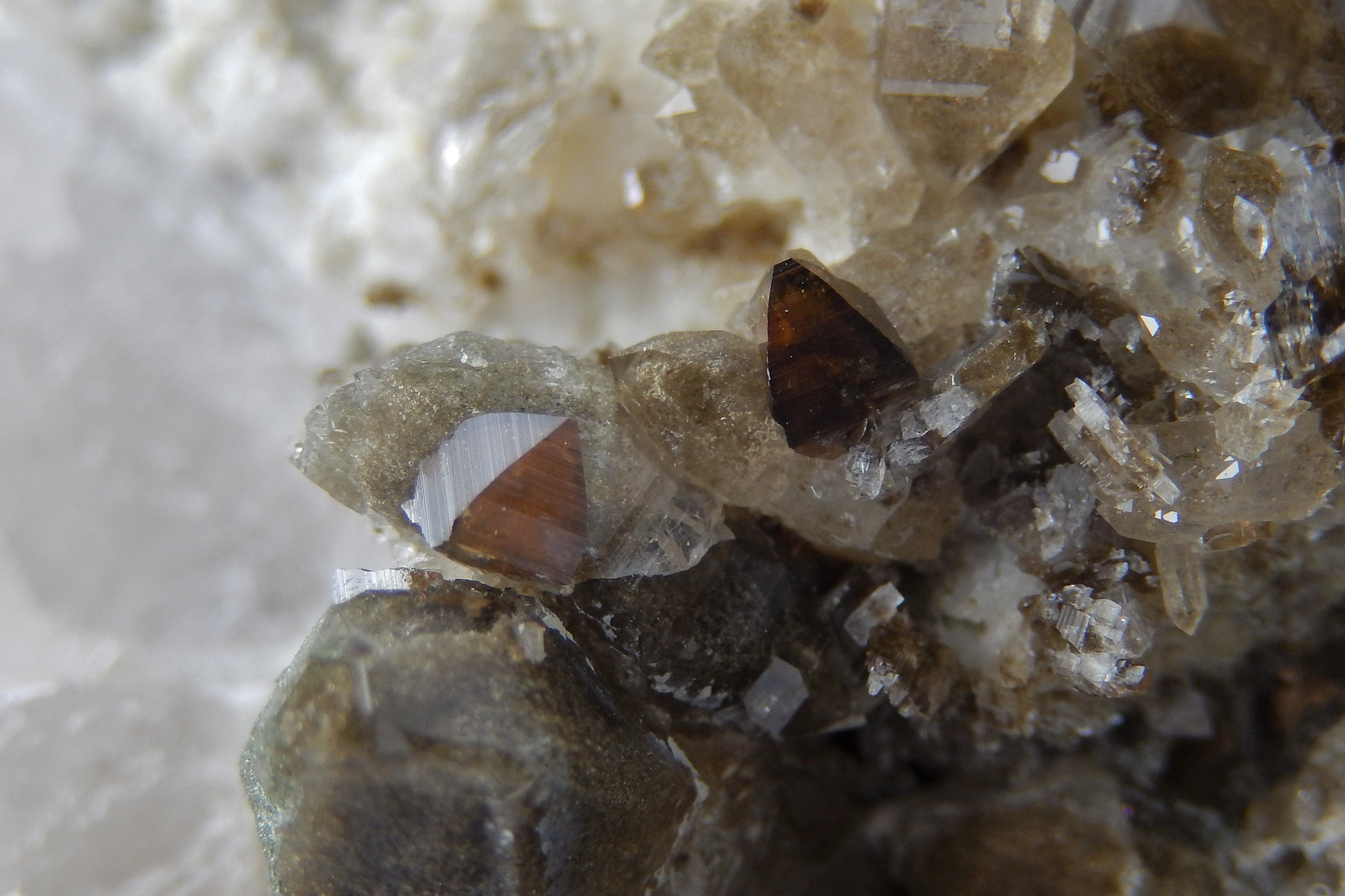 Pour affiner le sujet sur les anatases de l'été 2018 au Plan du Lac... ouverture d'une petite poche quelques pièces "non Micro" ont étaient sorties (plus grosses 6 mm couleur miel = photo).