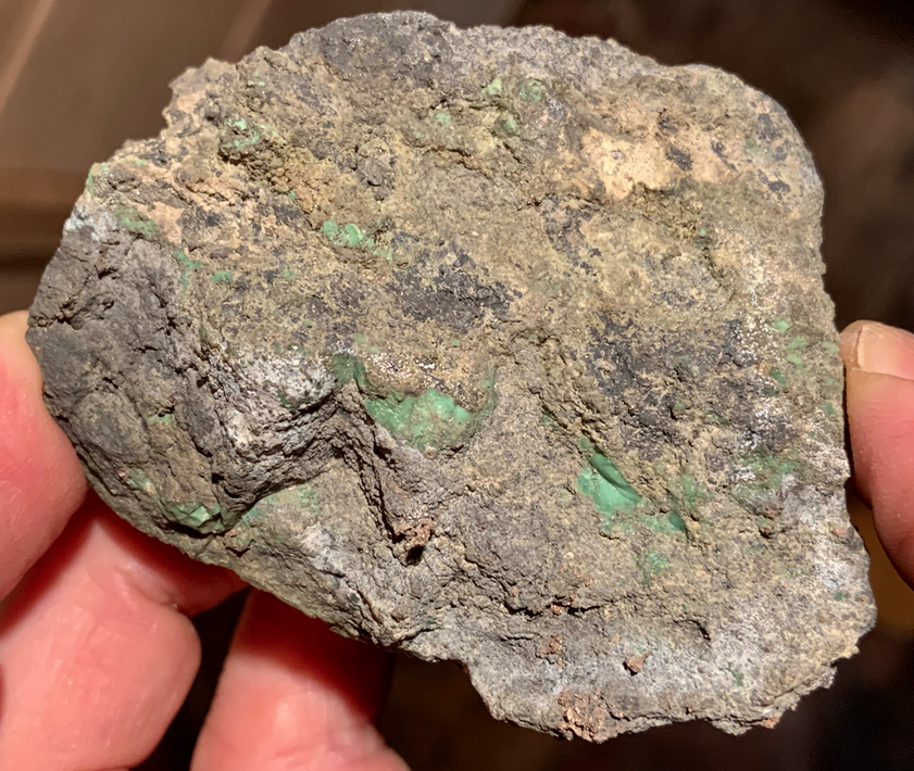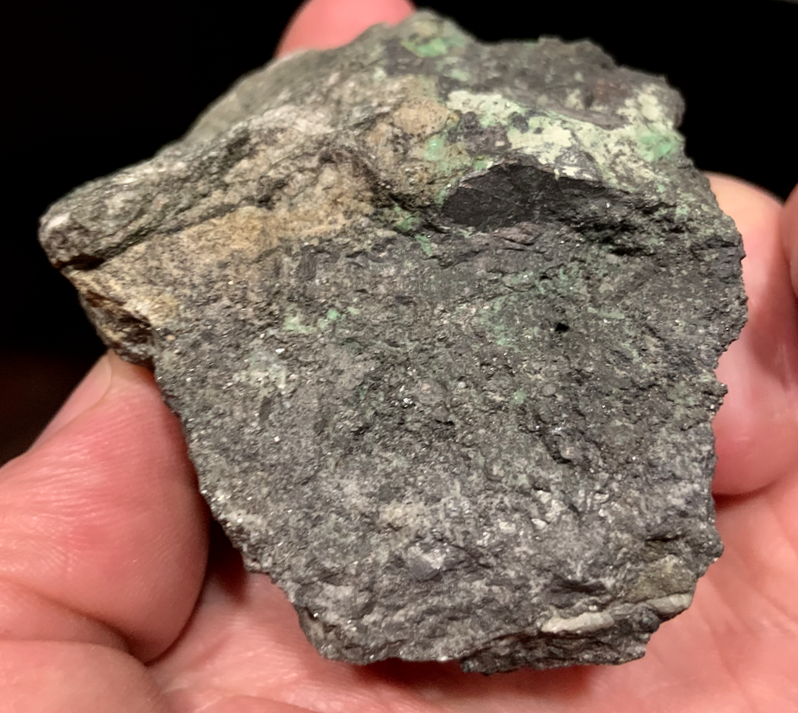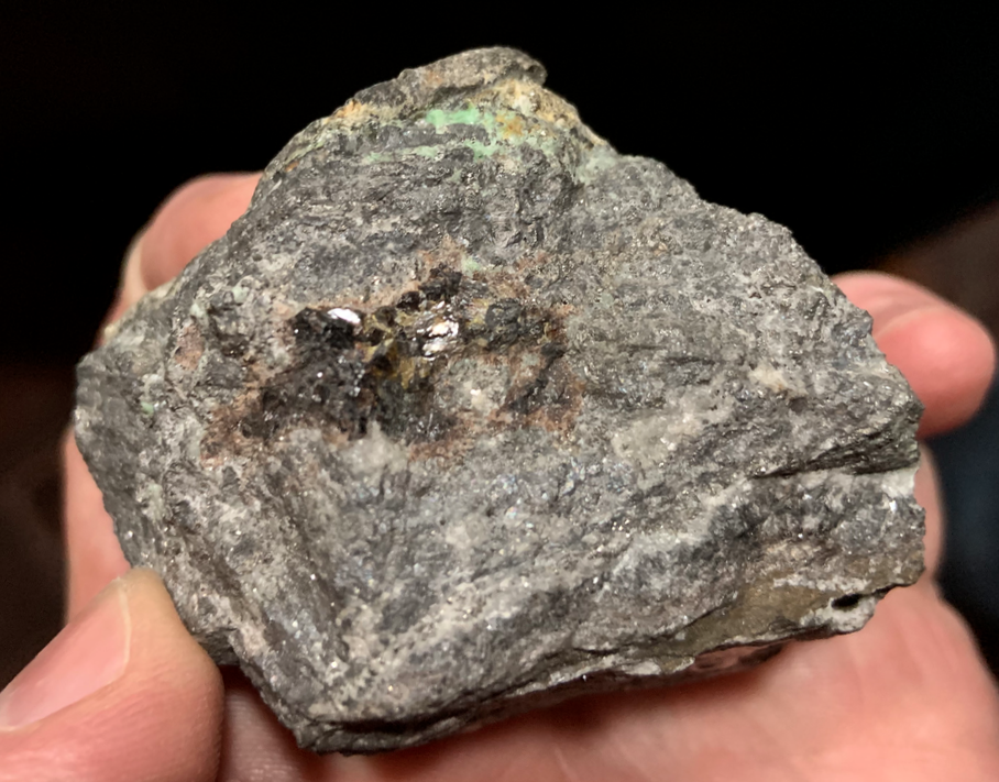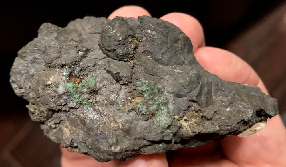 Pyrargyrite (?) massive grise dans l'Asbolane avec des traces vertes de 'Garniérite' [70mm]