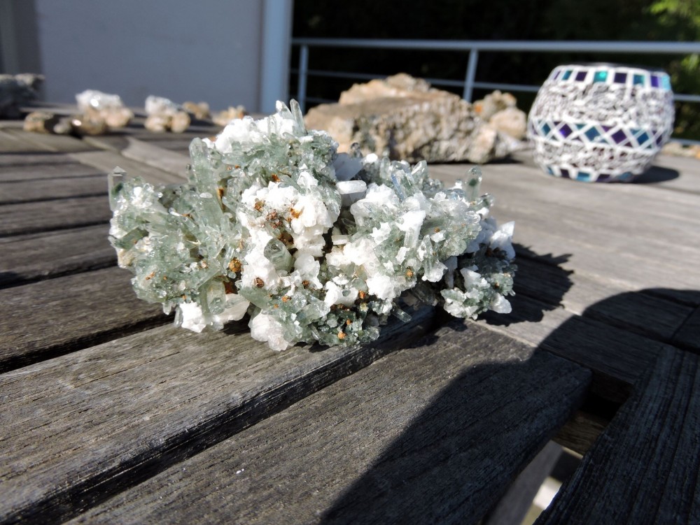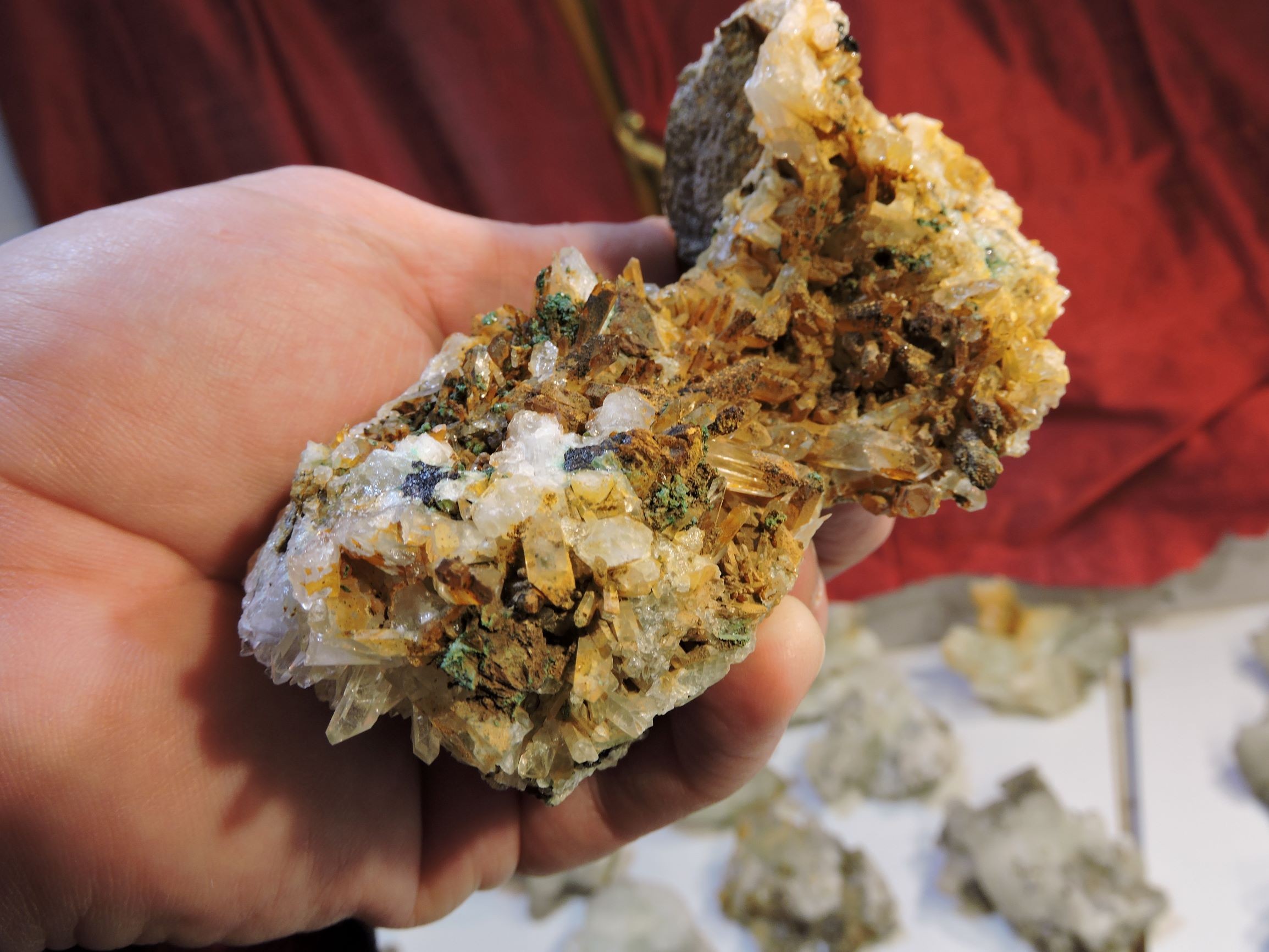 il y as quelques fentes aux Deux Alpes qui contiennent des secondaires du cuivre. Celles que je connais  du coté de 2600/ Diable sont massives ( du moins aucune vu quand j'ai tapé dedans ).  Mais bon, en trois jours par an j'ai pas le temps de tout faire...