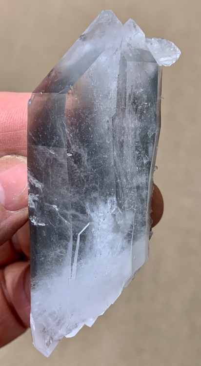Quartz hyalin à fantôme gris, habitus 'carbon quartz', spécimen biterminé flottant  [85mm]